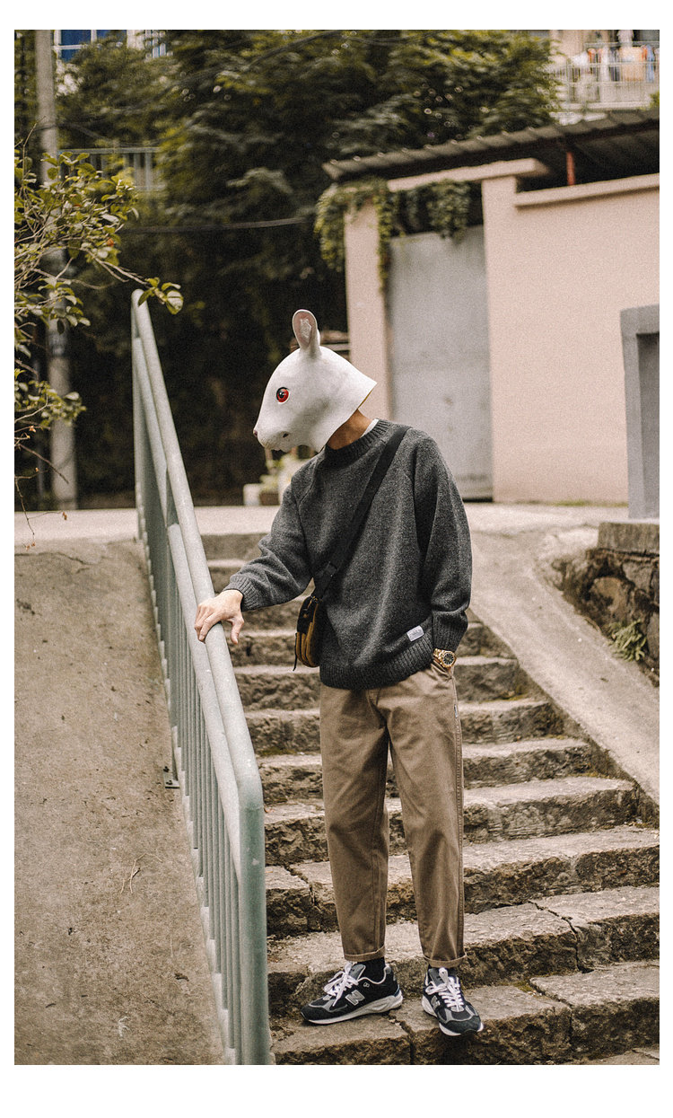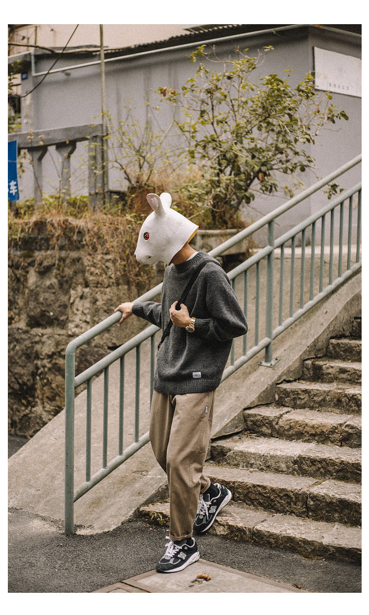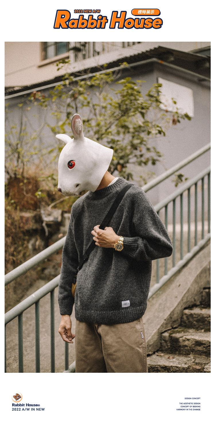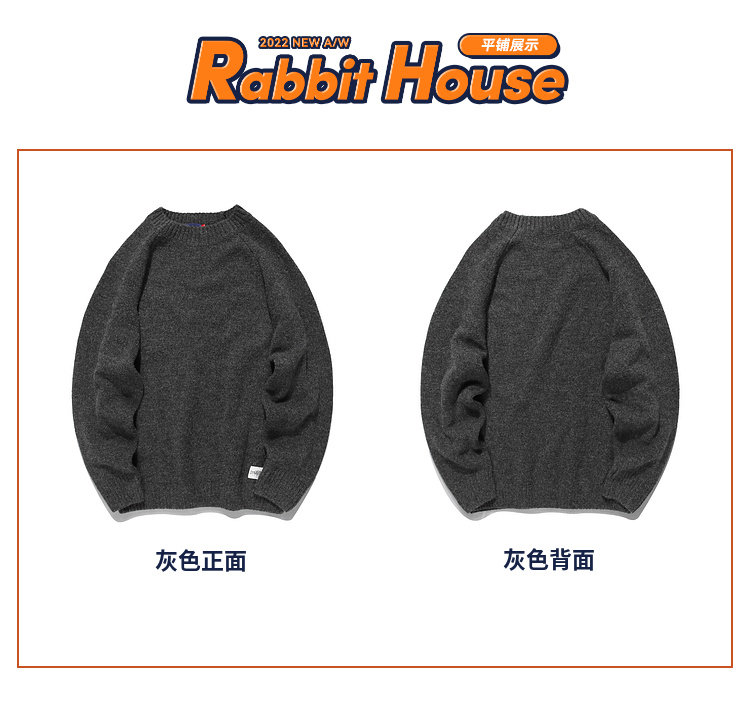兔先森春秋季日系復古純色保暖圓領毛衣男寬鬆百搭休閒長袖針織衫