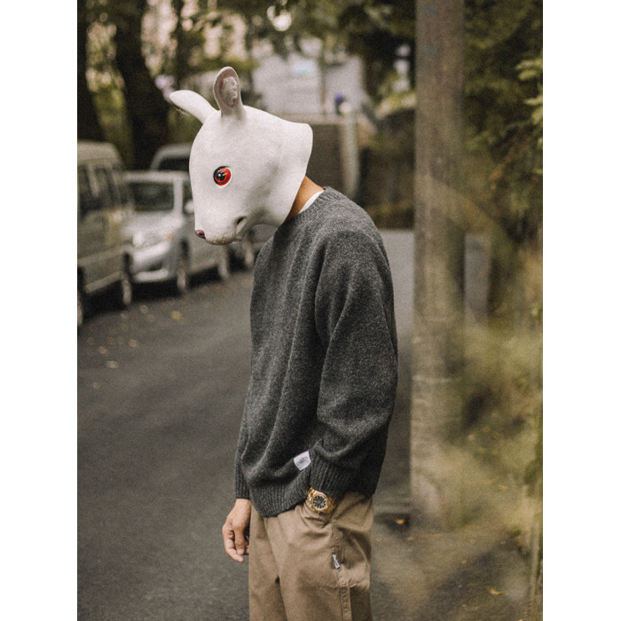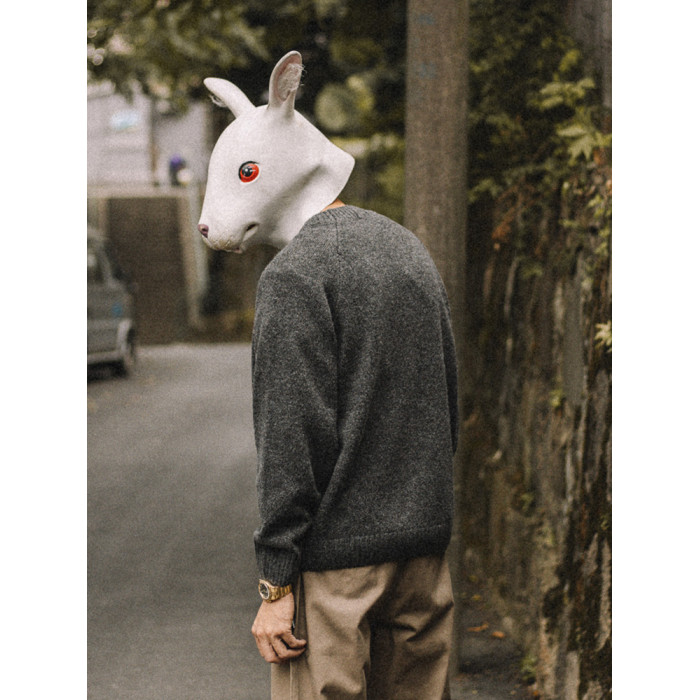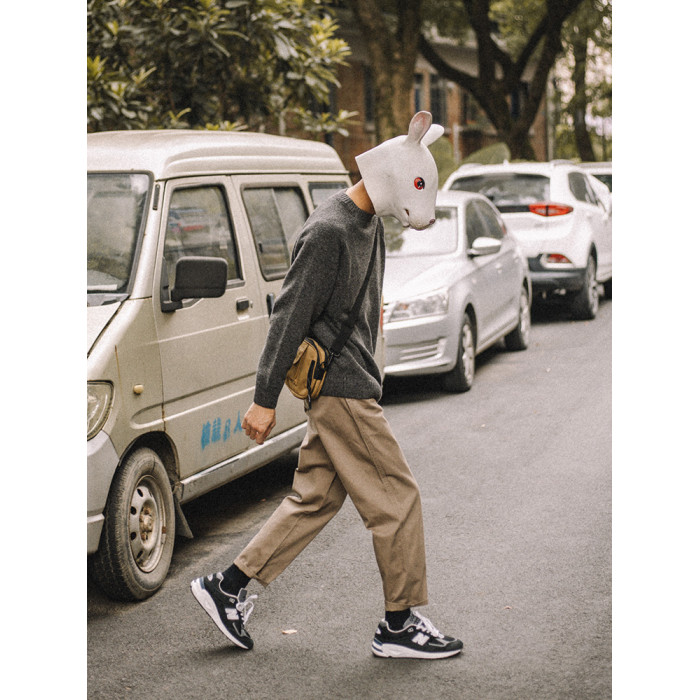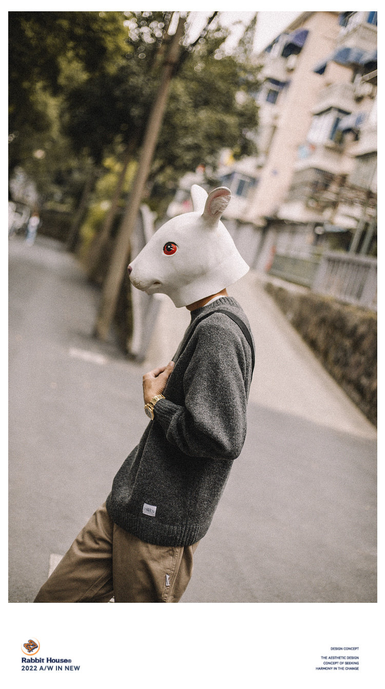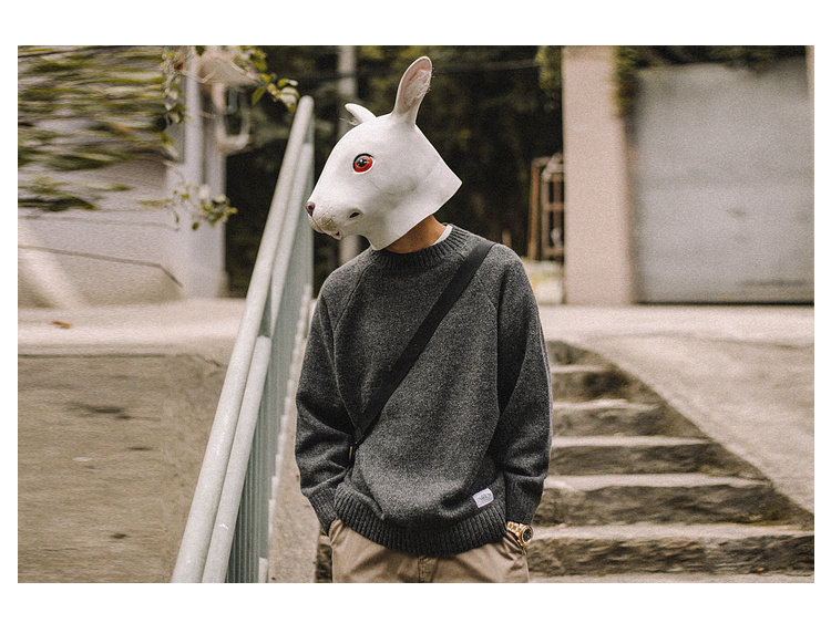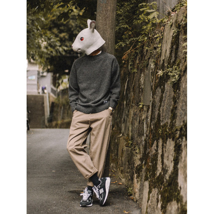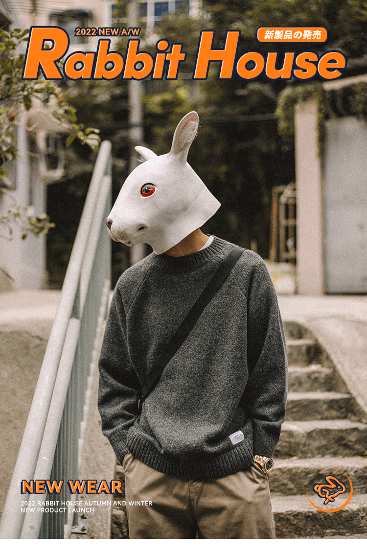 兔先森春秋季日系復古純色保暖圓領毛衣男寬鬆百搭休閒長袖針織衫