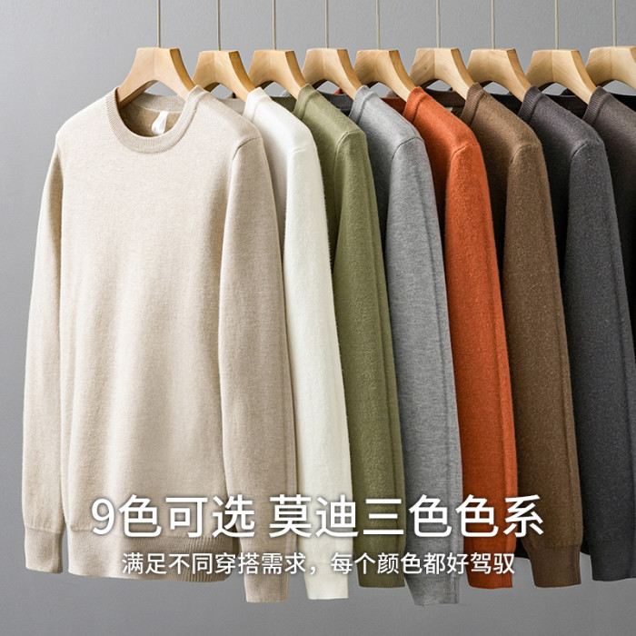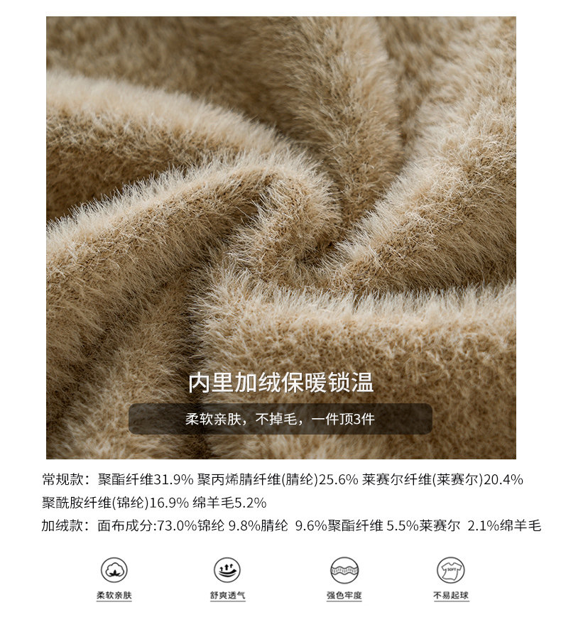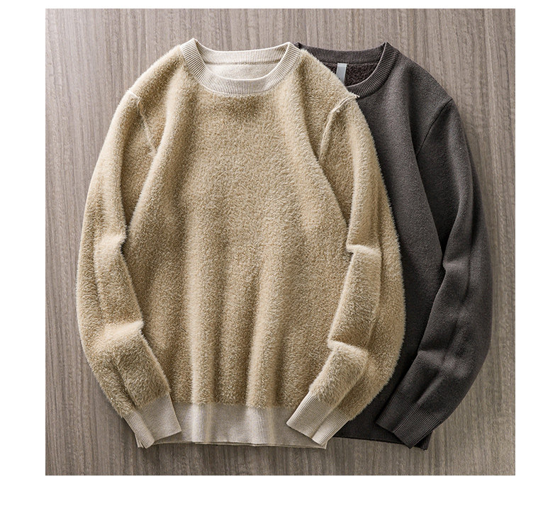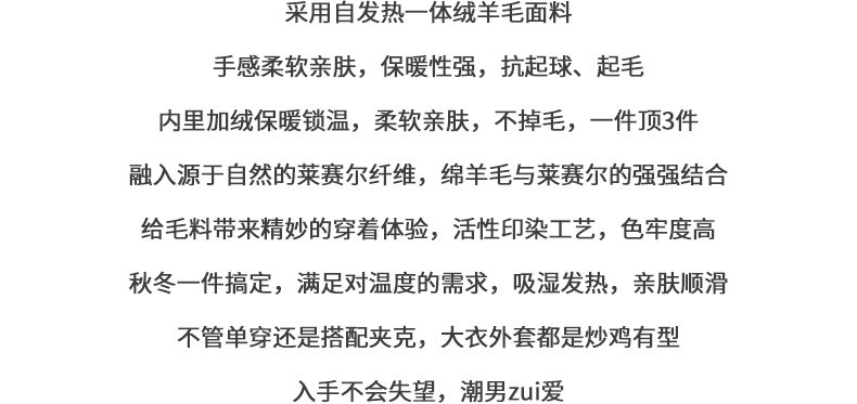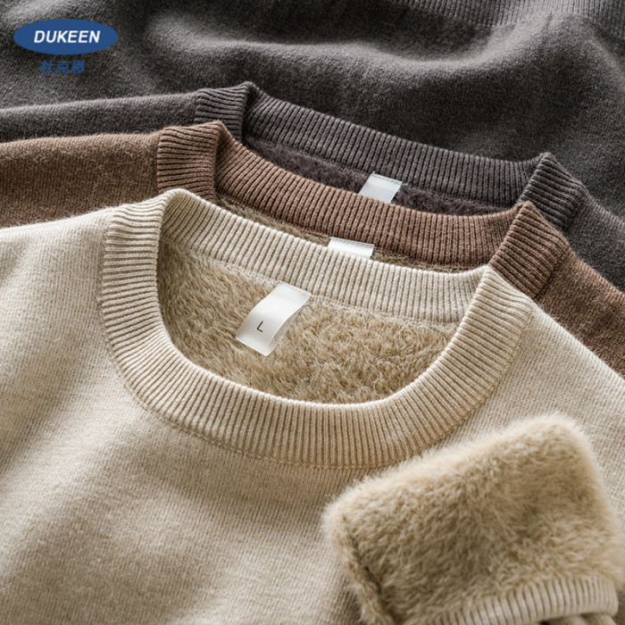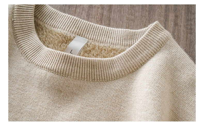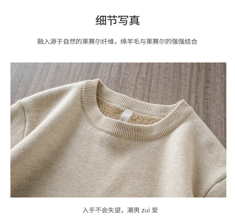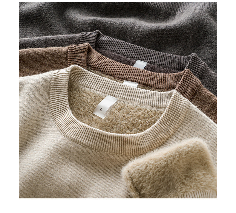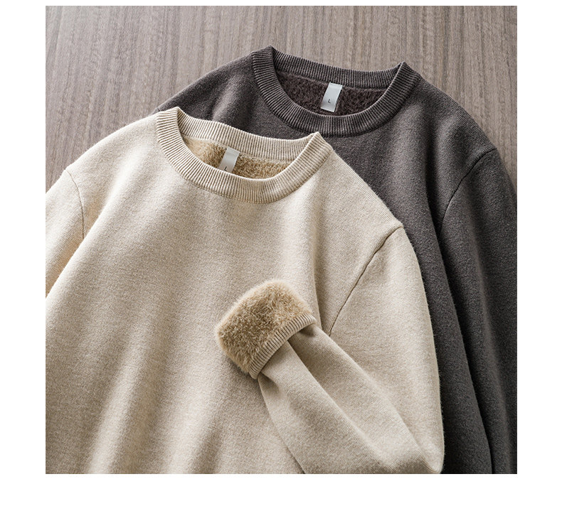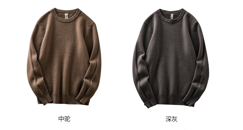 加絨羊毛毛衣男秋冬一體絨羊毛衫加厚線衣內搭德絨打底圓領針織衫
