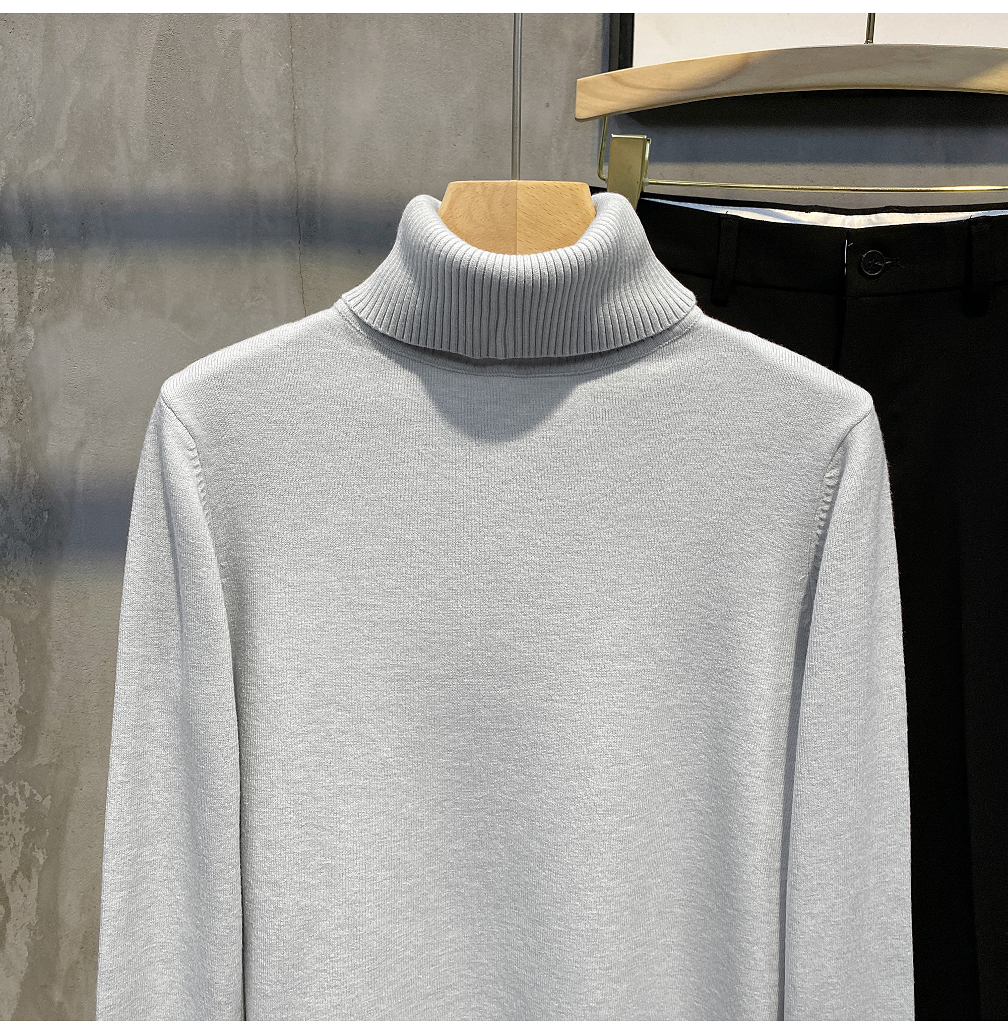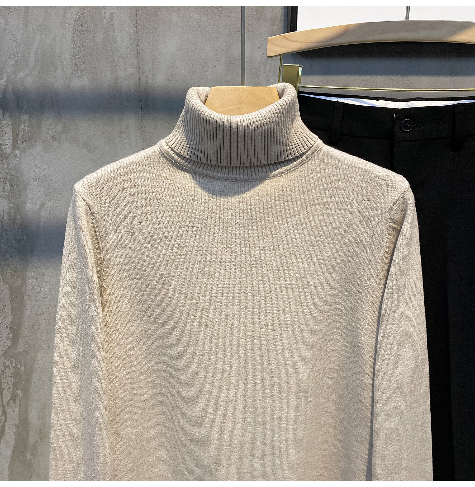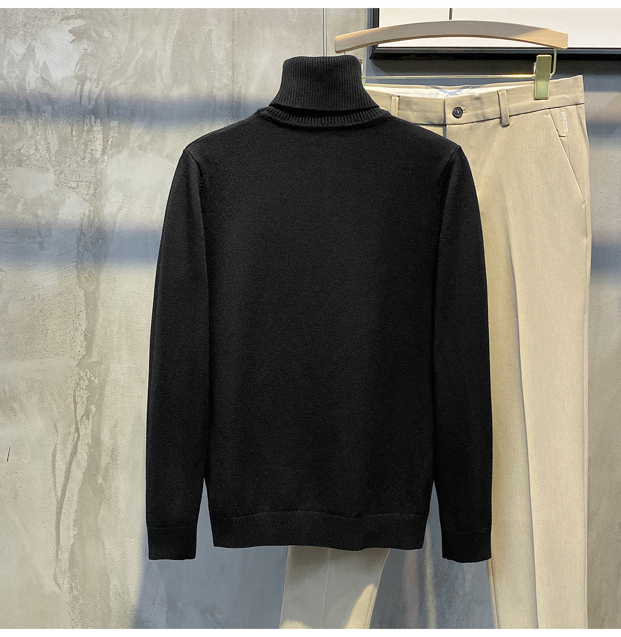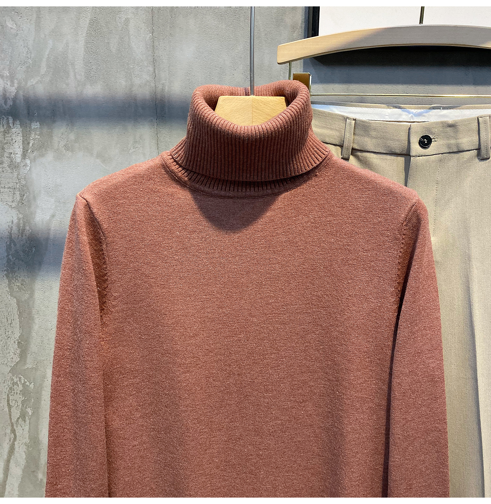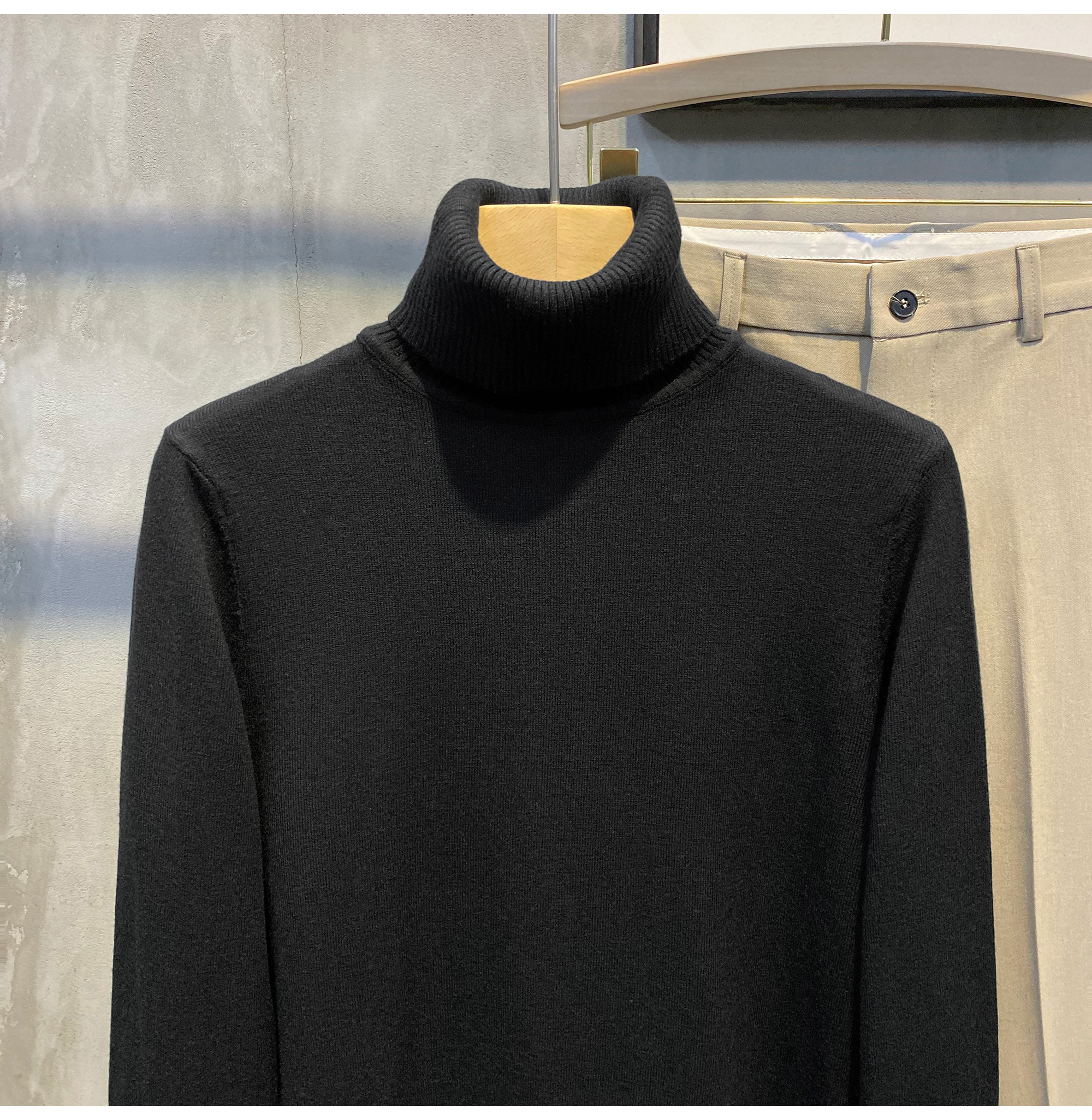 LUUD 冬季保暖可翻高領針織衫修身毛衣打底衫男韓版法拉絨毛線衣