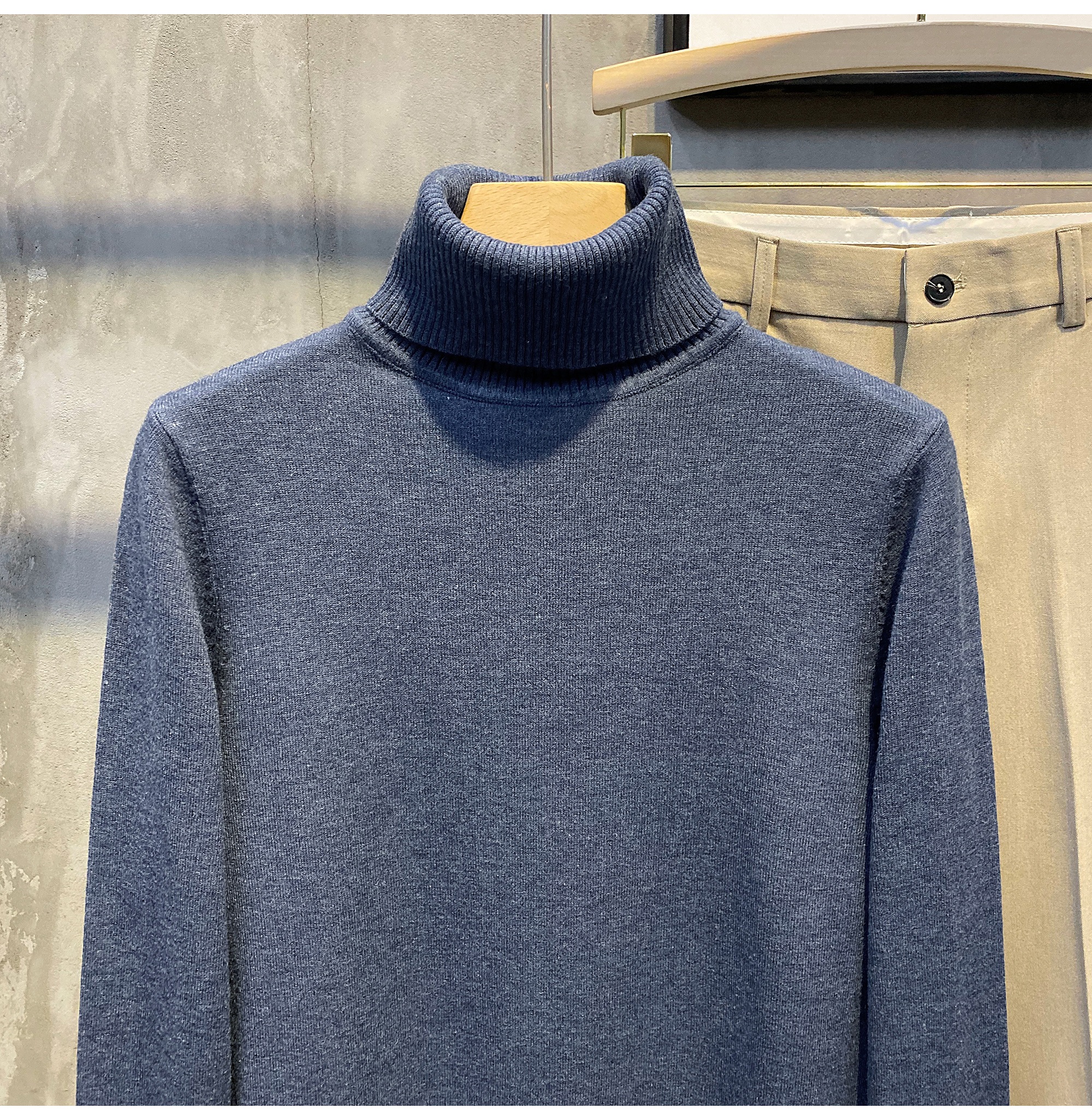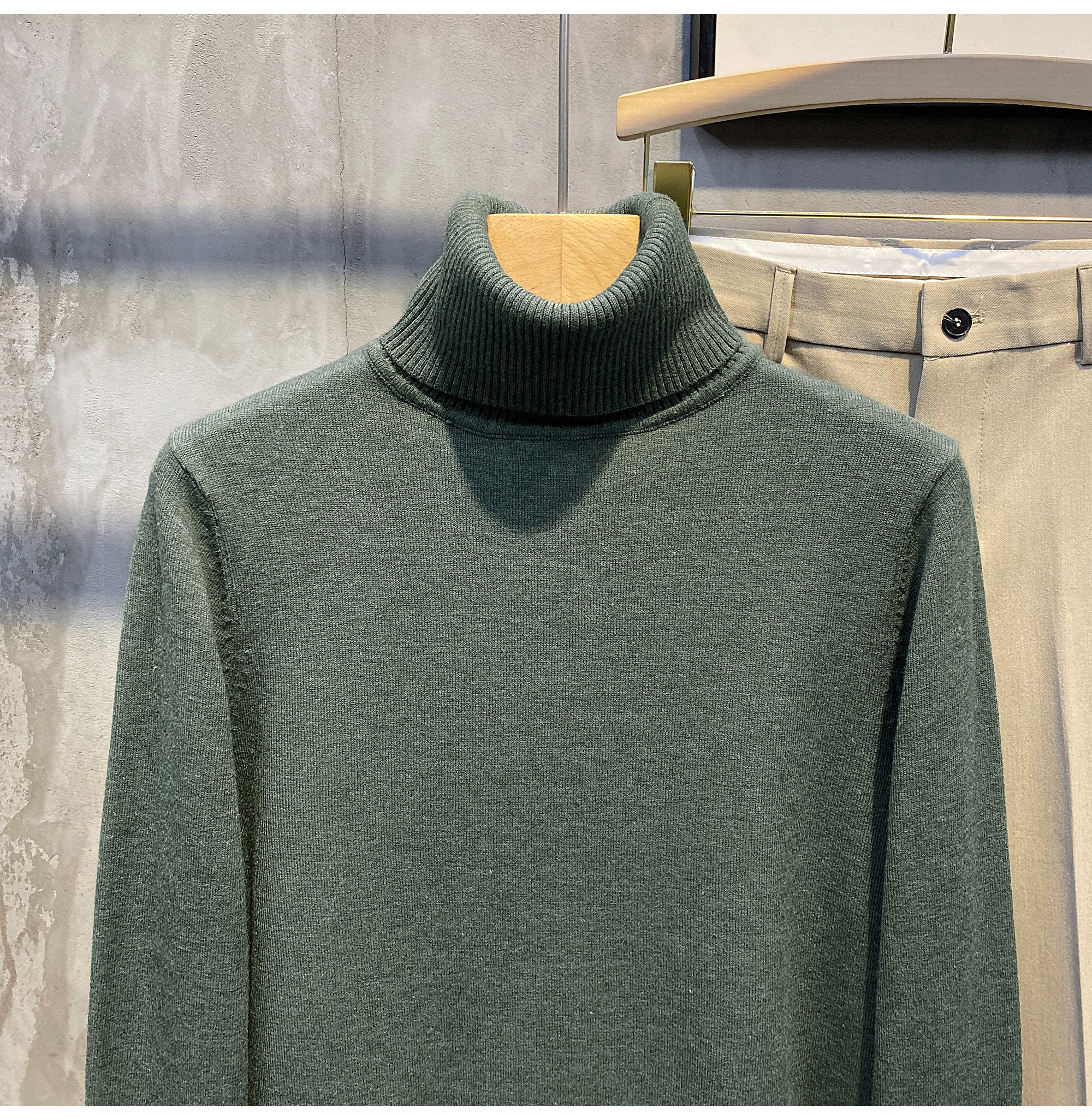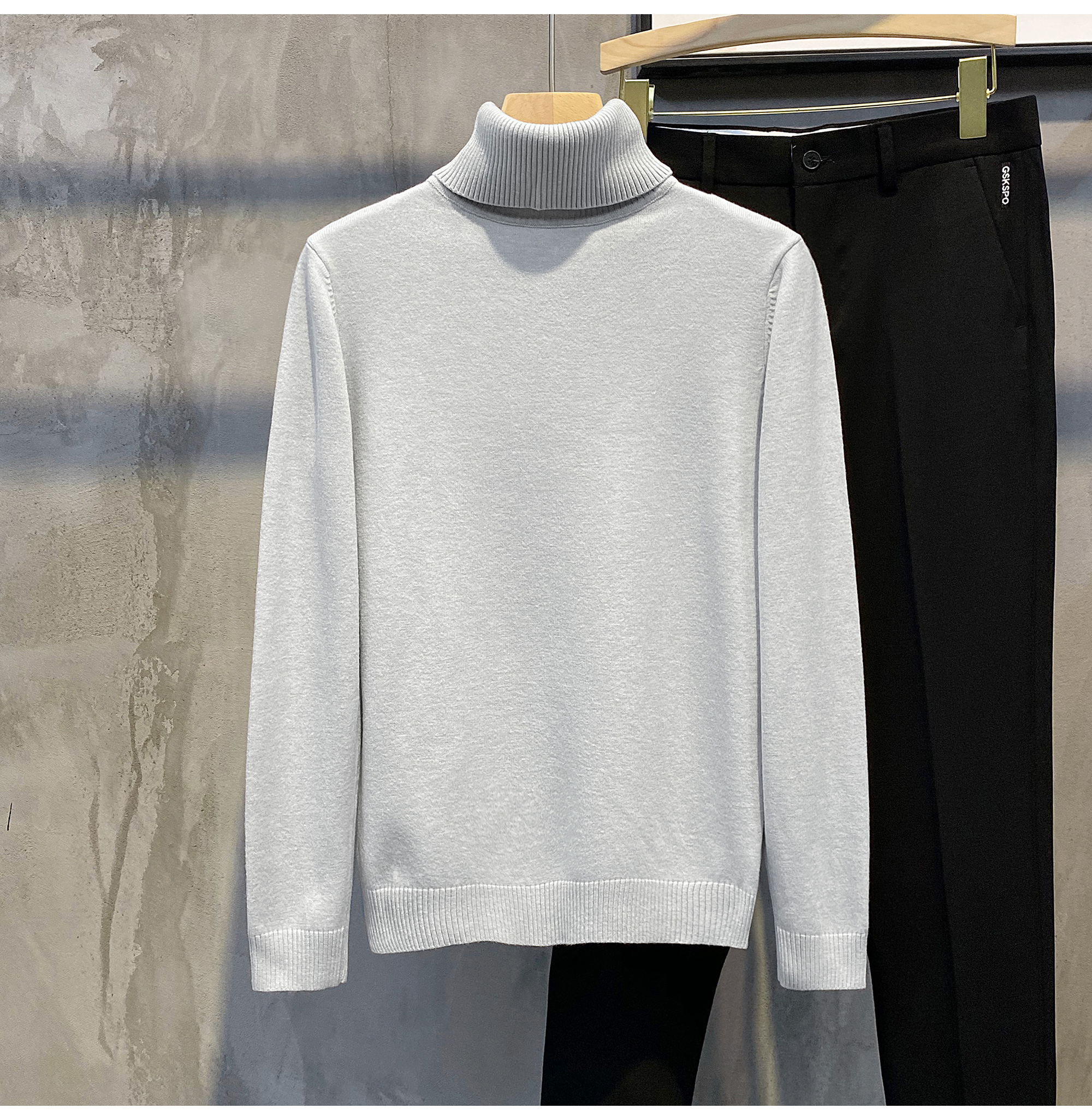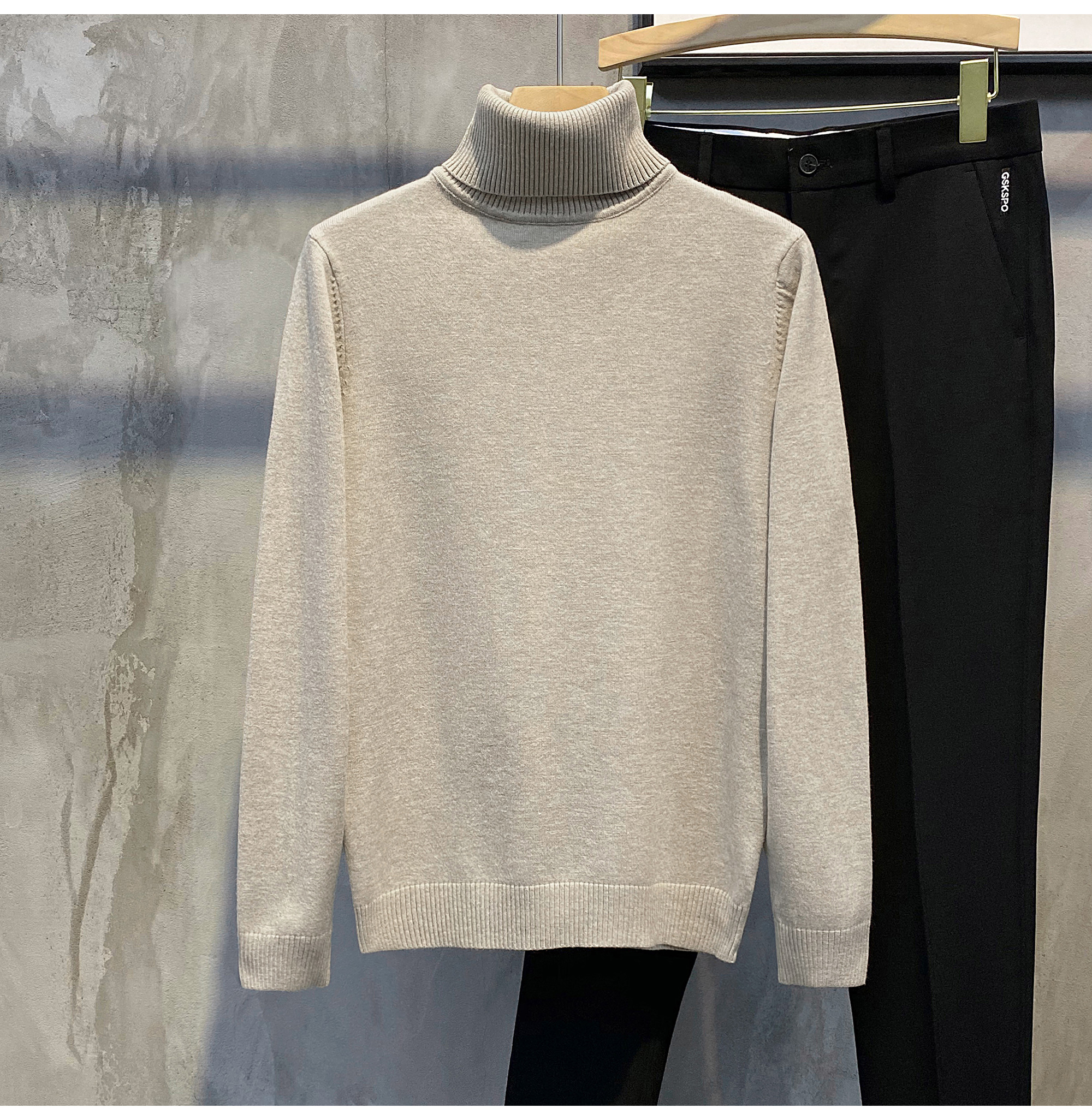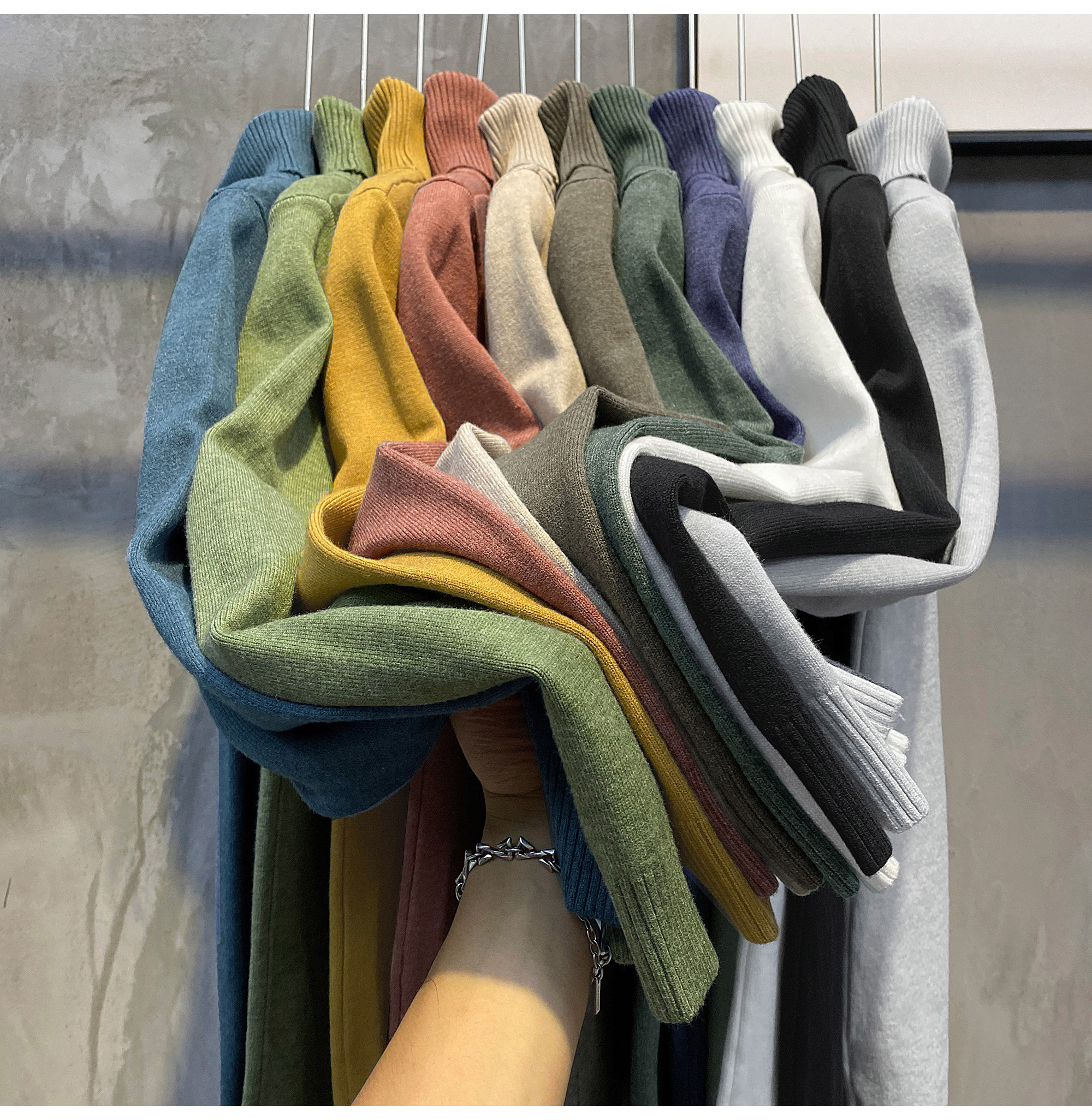 LUUD 冬季保暖可翻高領針織衫修身毛衣打底衫男韓版法拉絨毛線衣