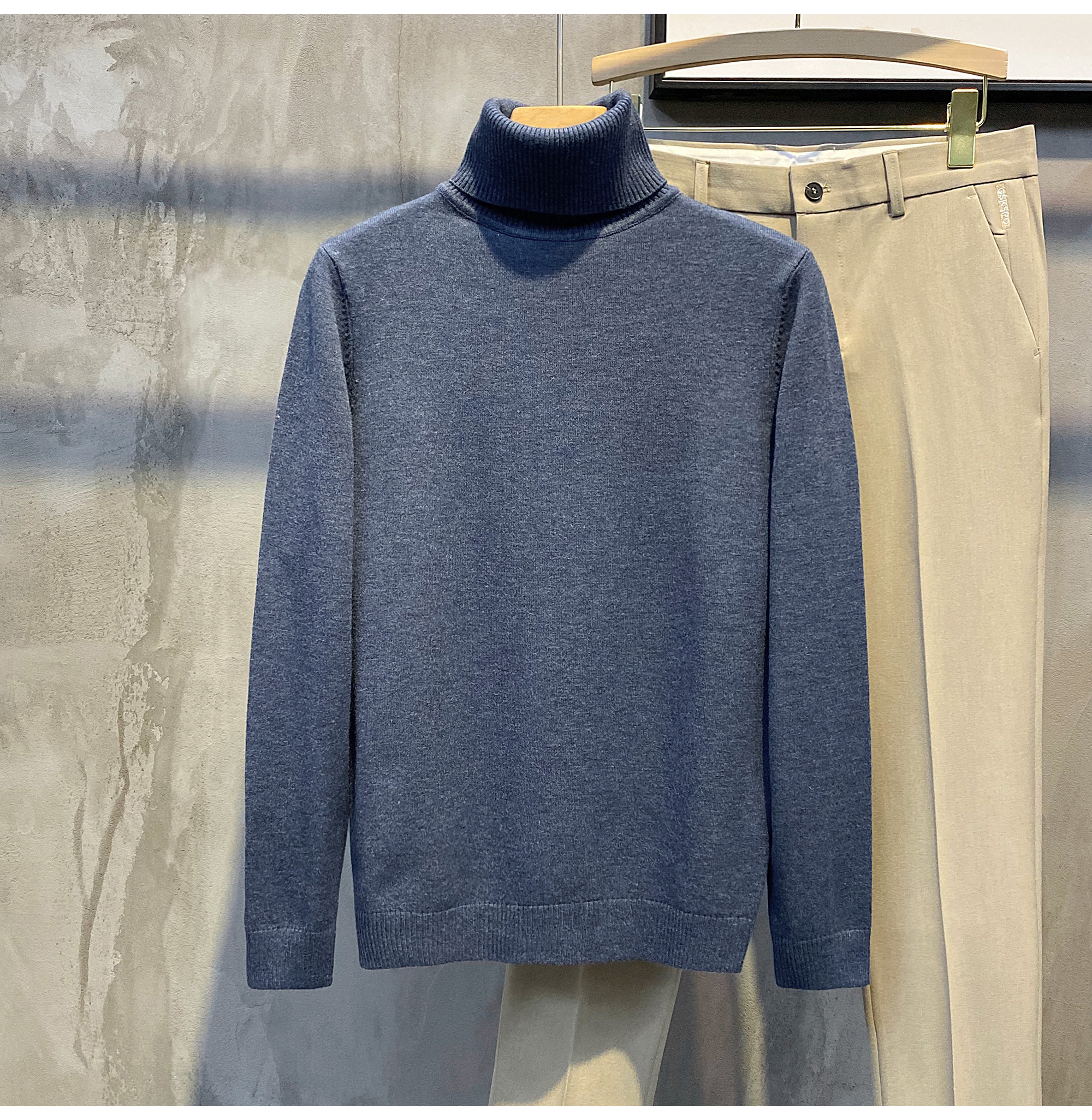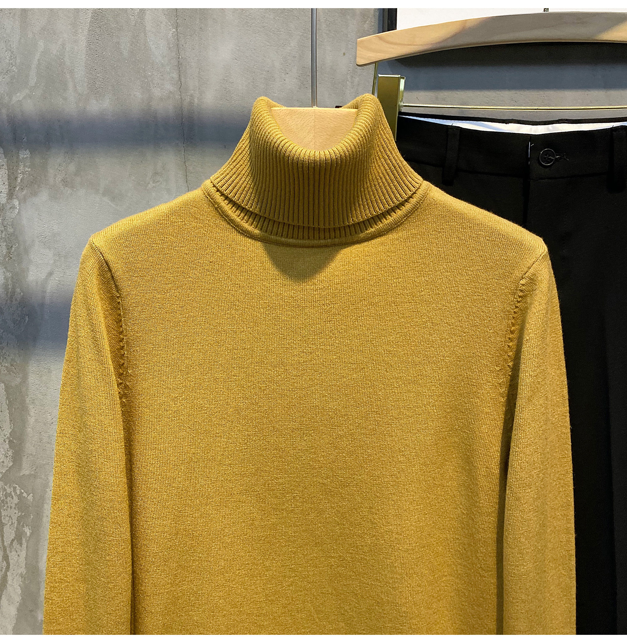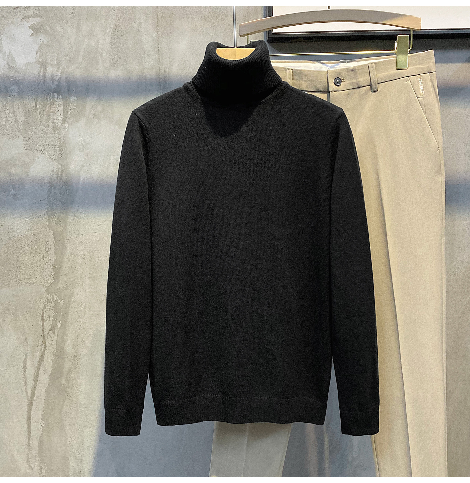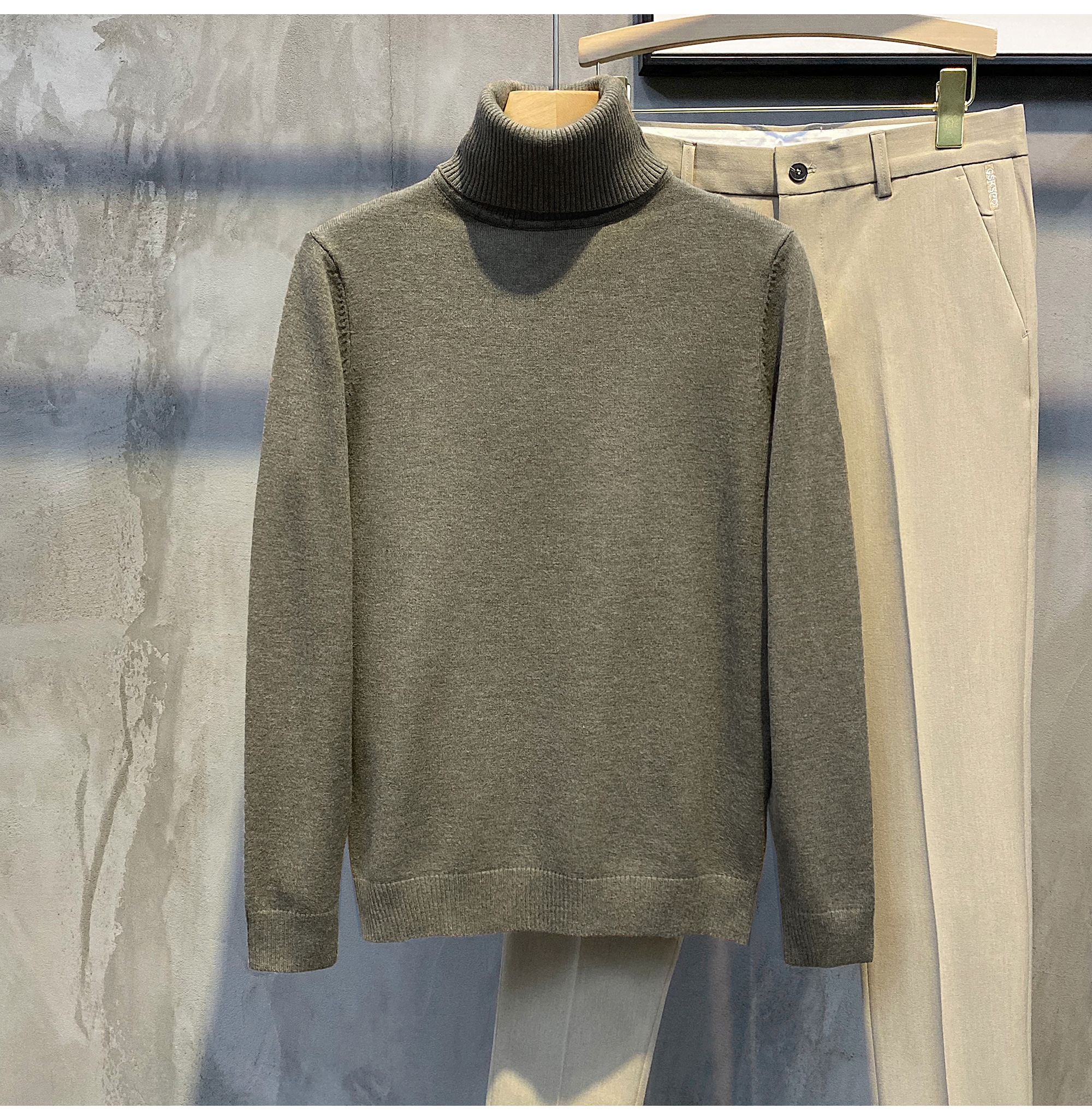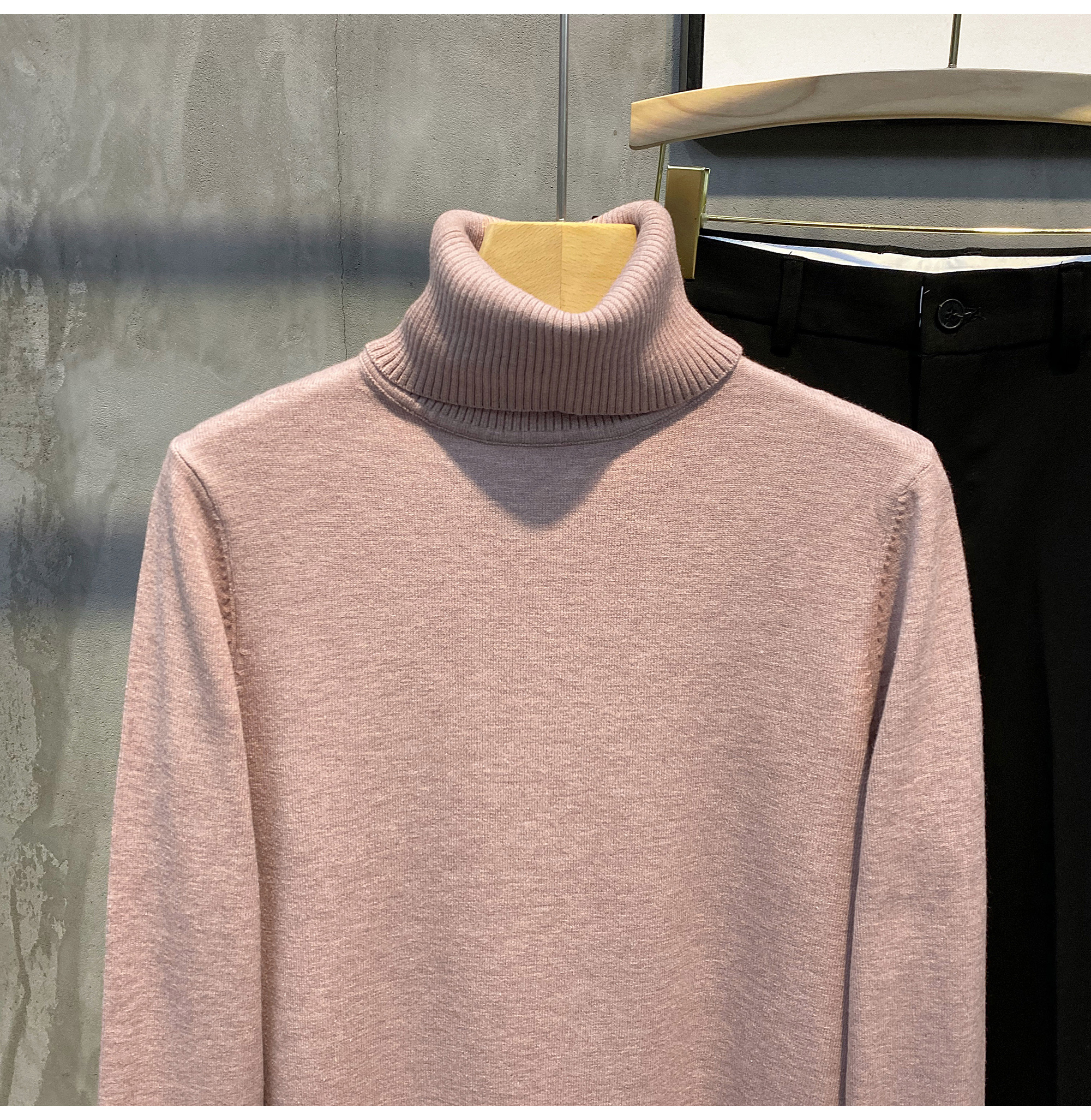 LUUD 冬季保暖可翻高領針織衫修身毛衣打底衫男韓版法拉絨毛線衣
