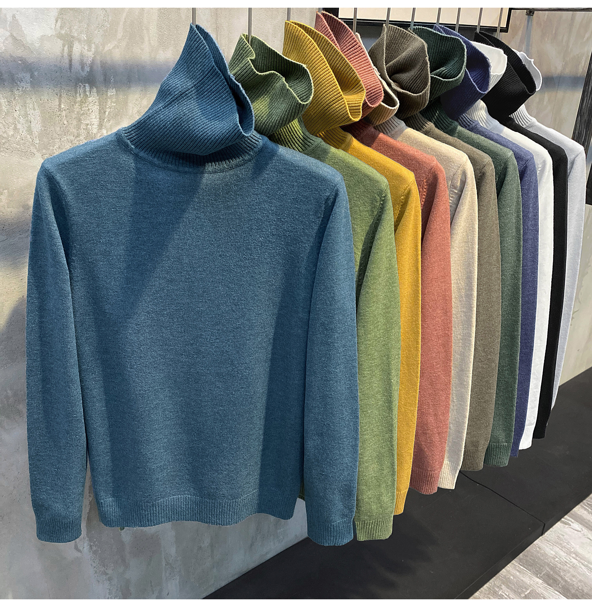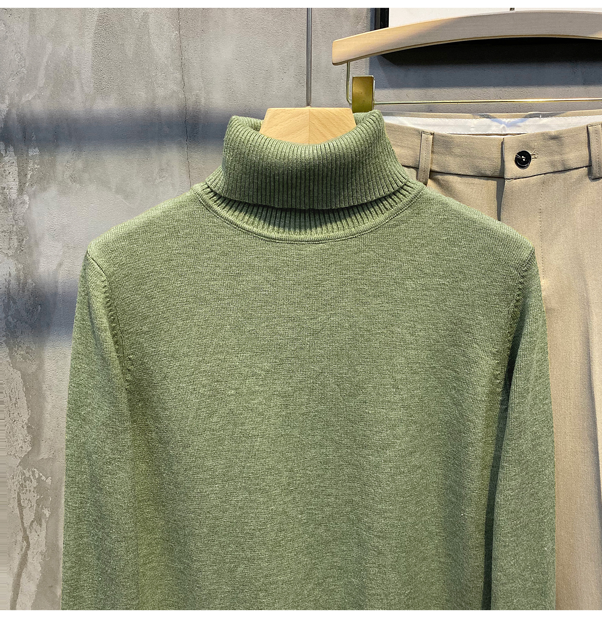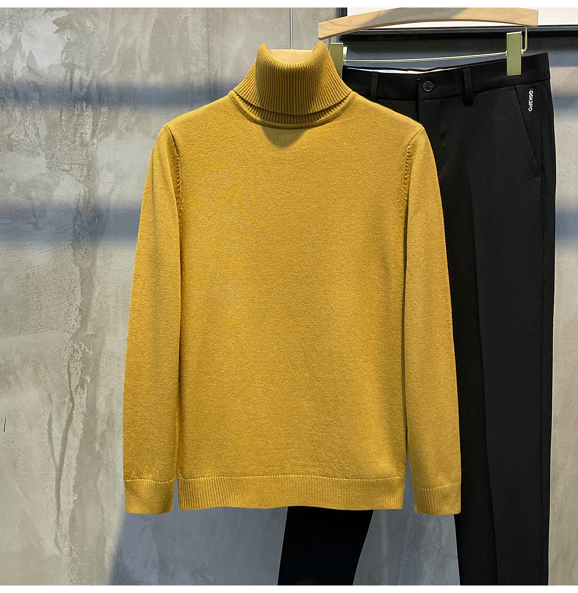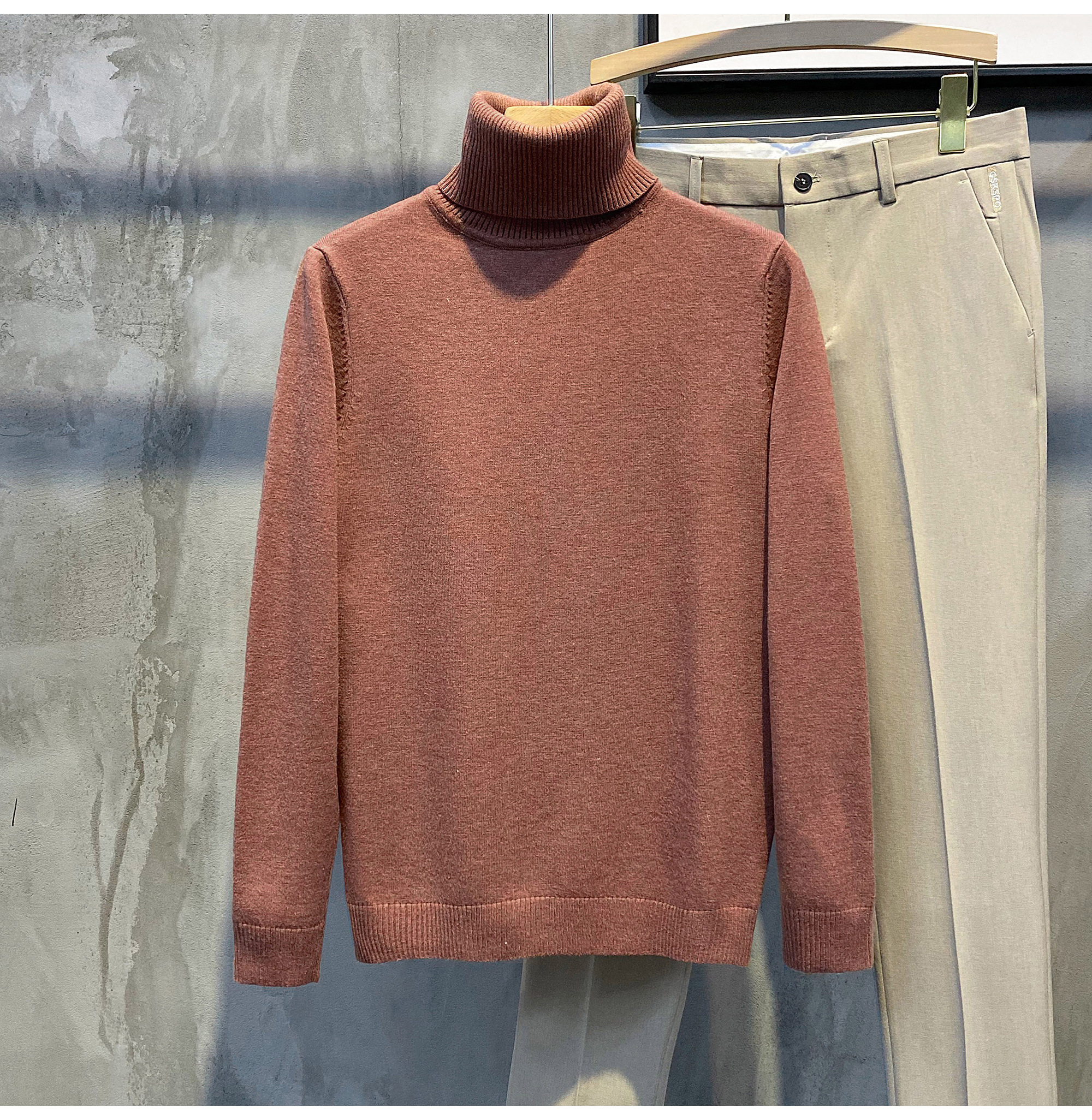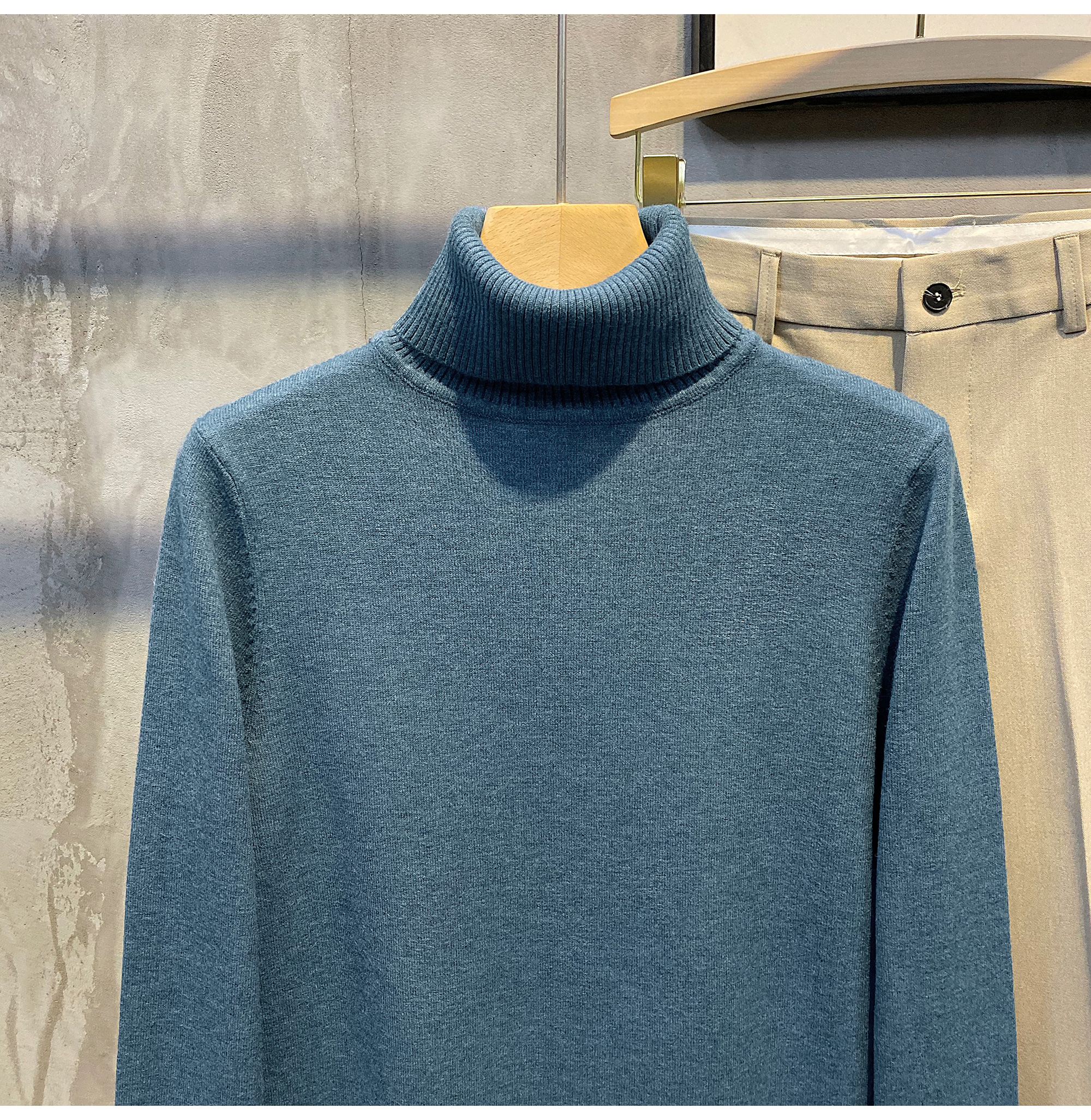 LUUD 冬季保暖可翻高領針織衫修身毛衣打底衫男韓版法拉絨毛線衣