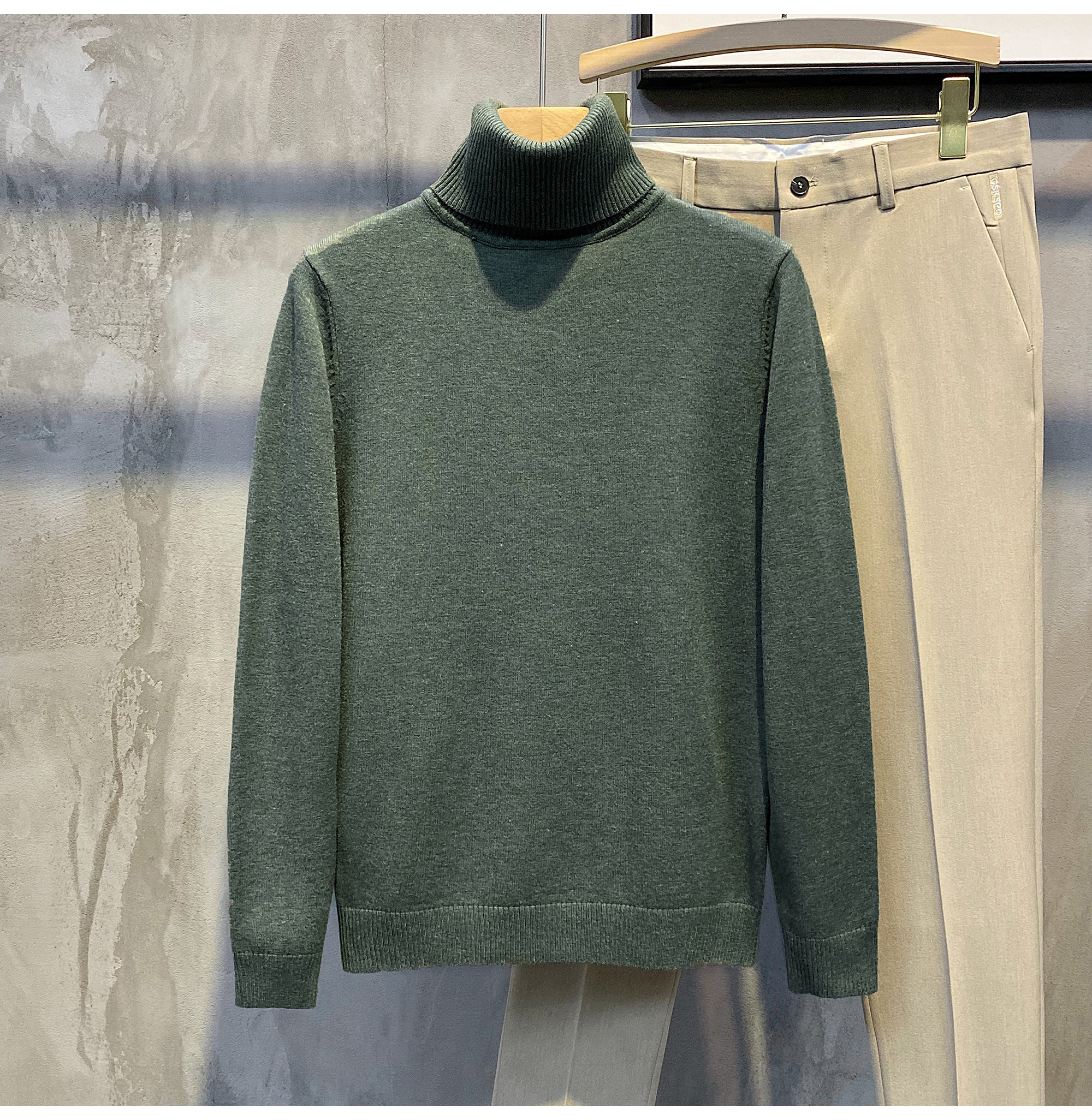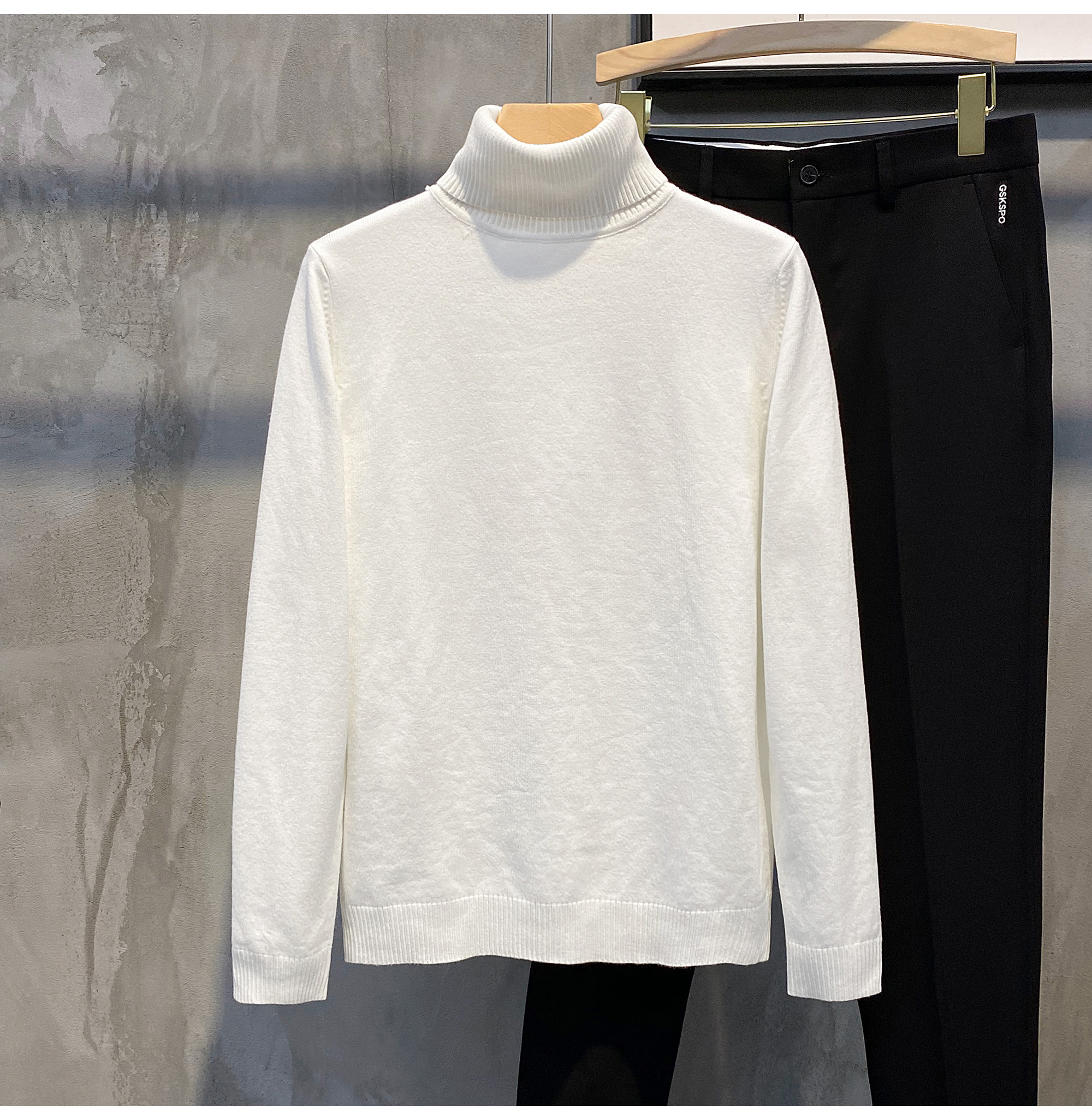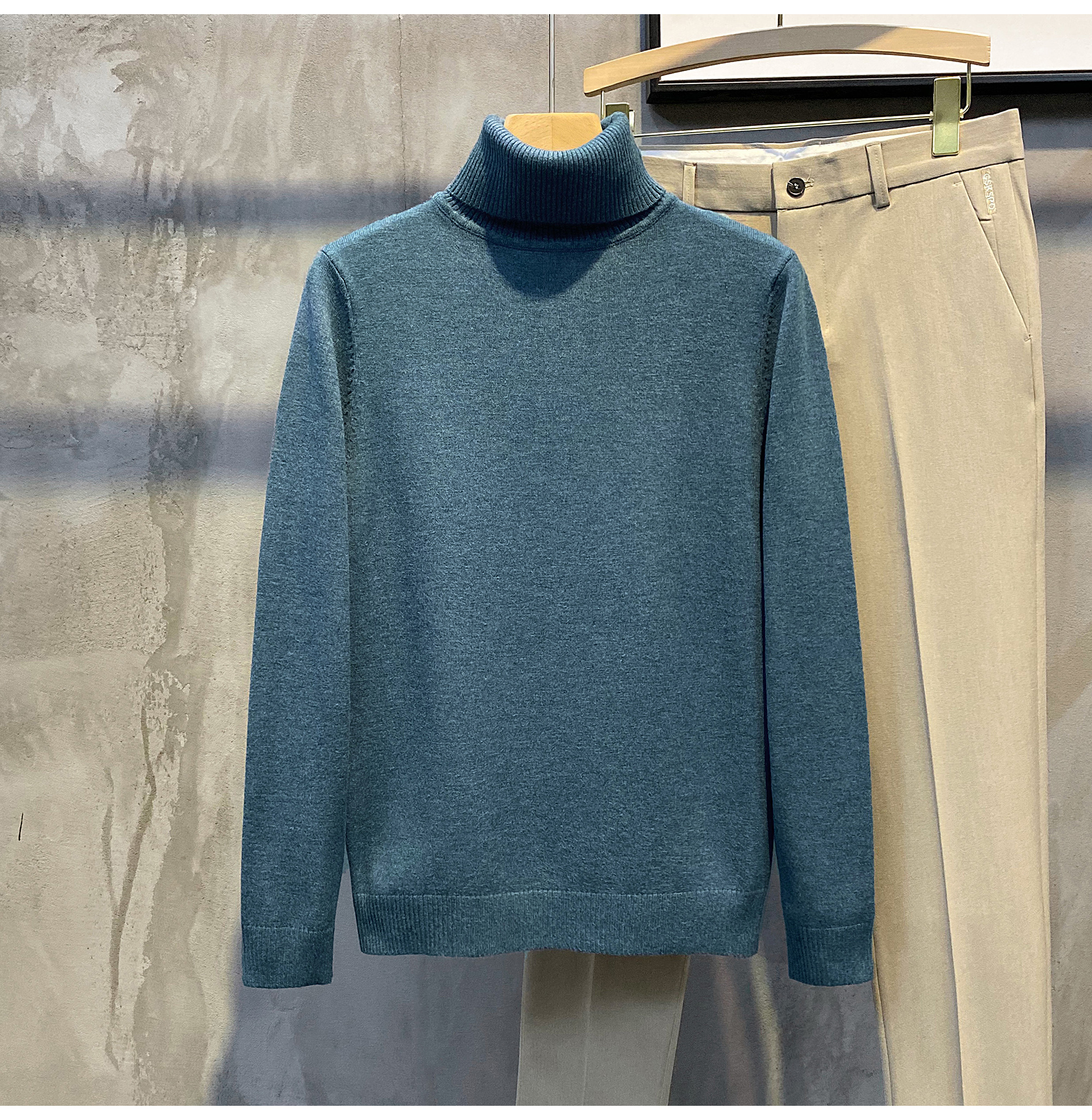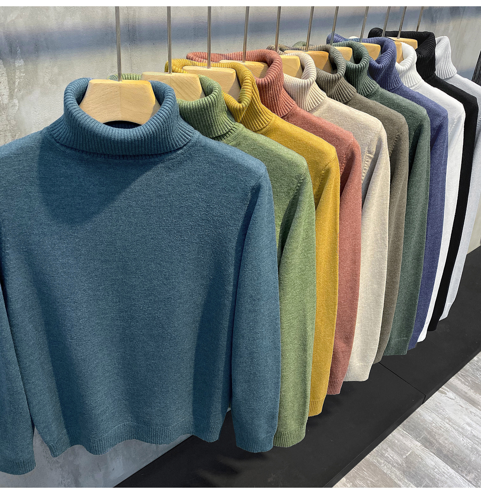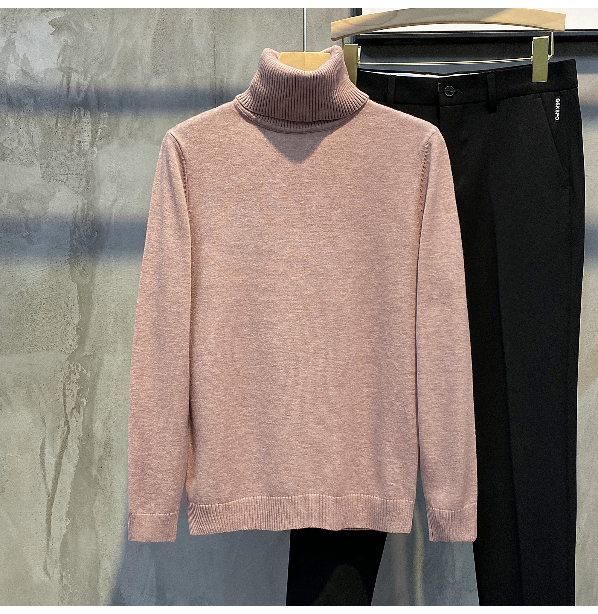 LUUD 冬季保暖可翻高領針織衫修身毛衣打底衫男韓版法拉絨毛線衣