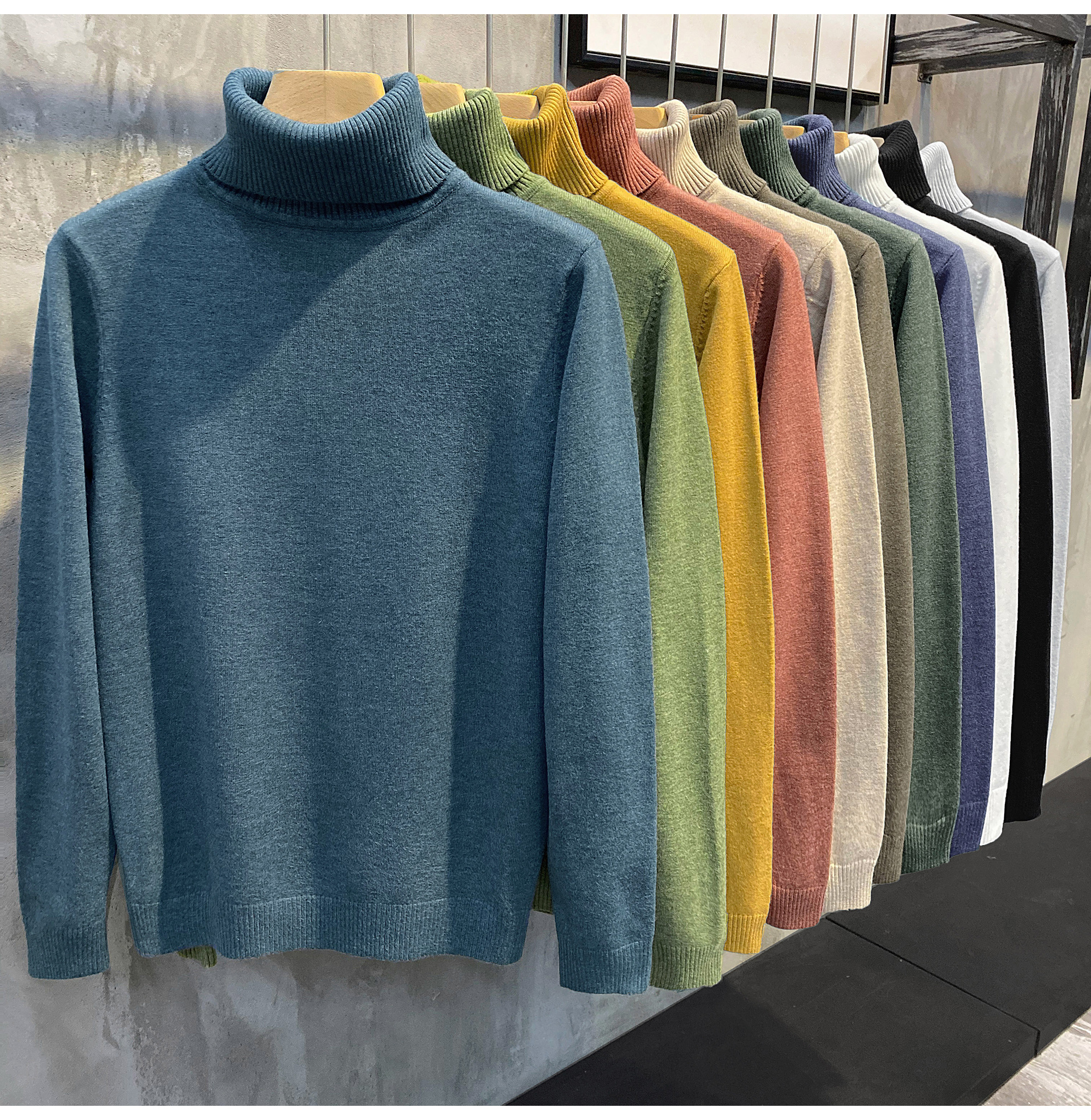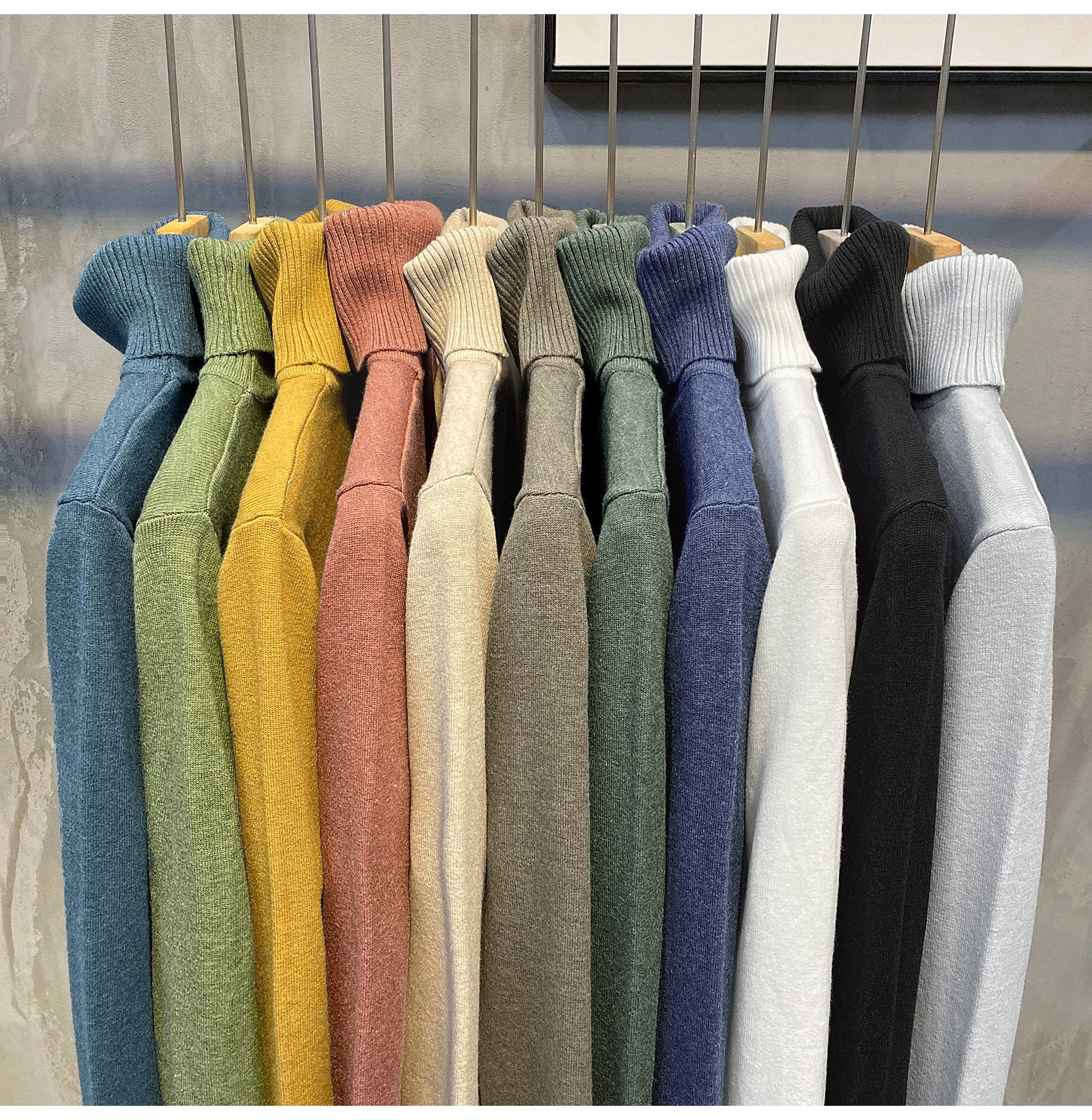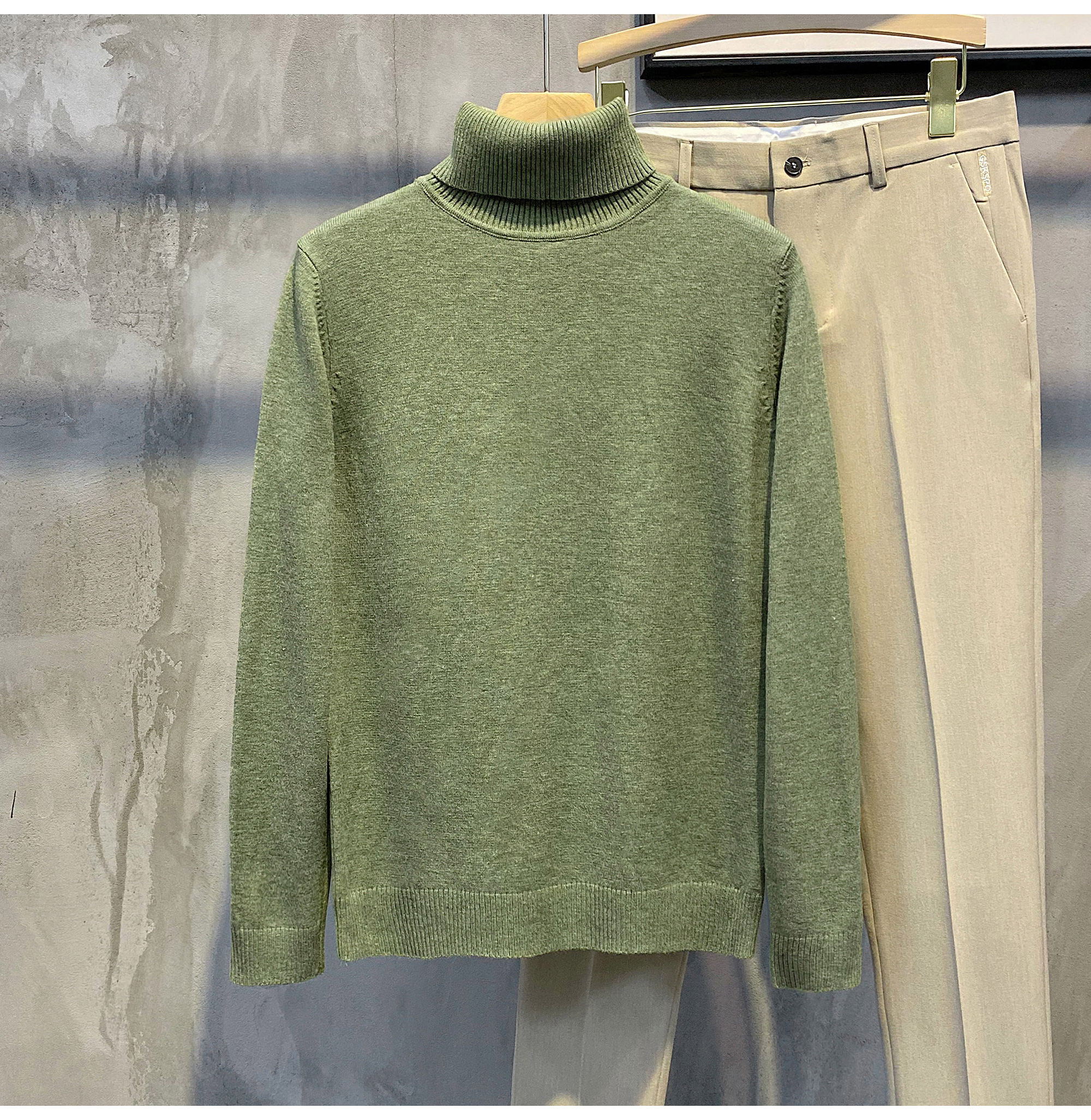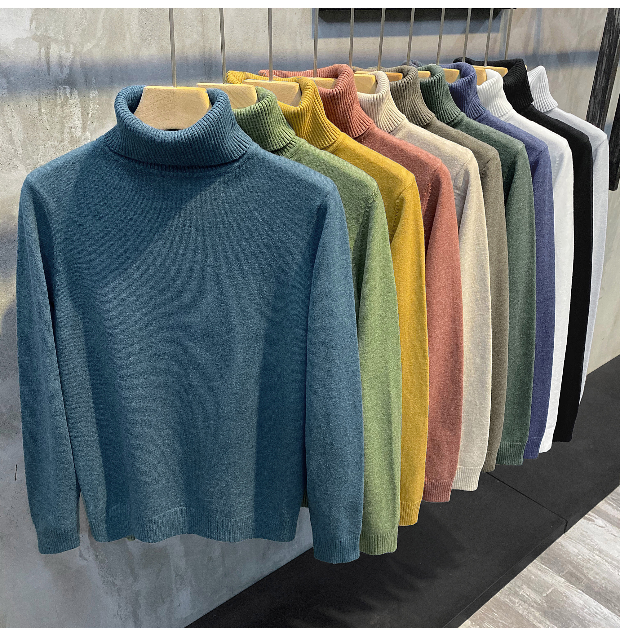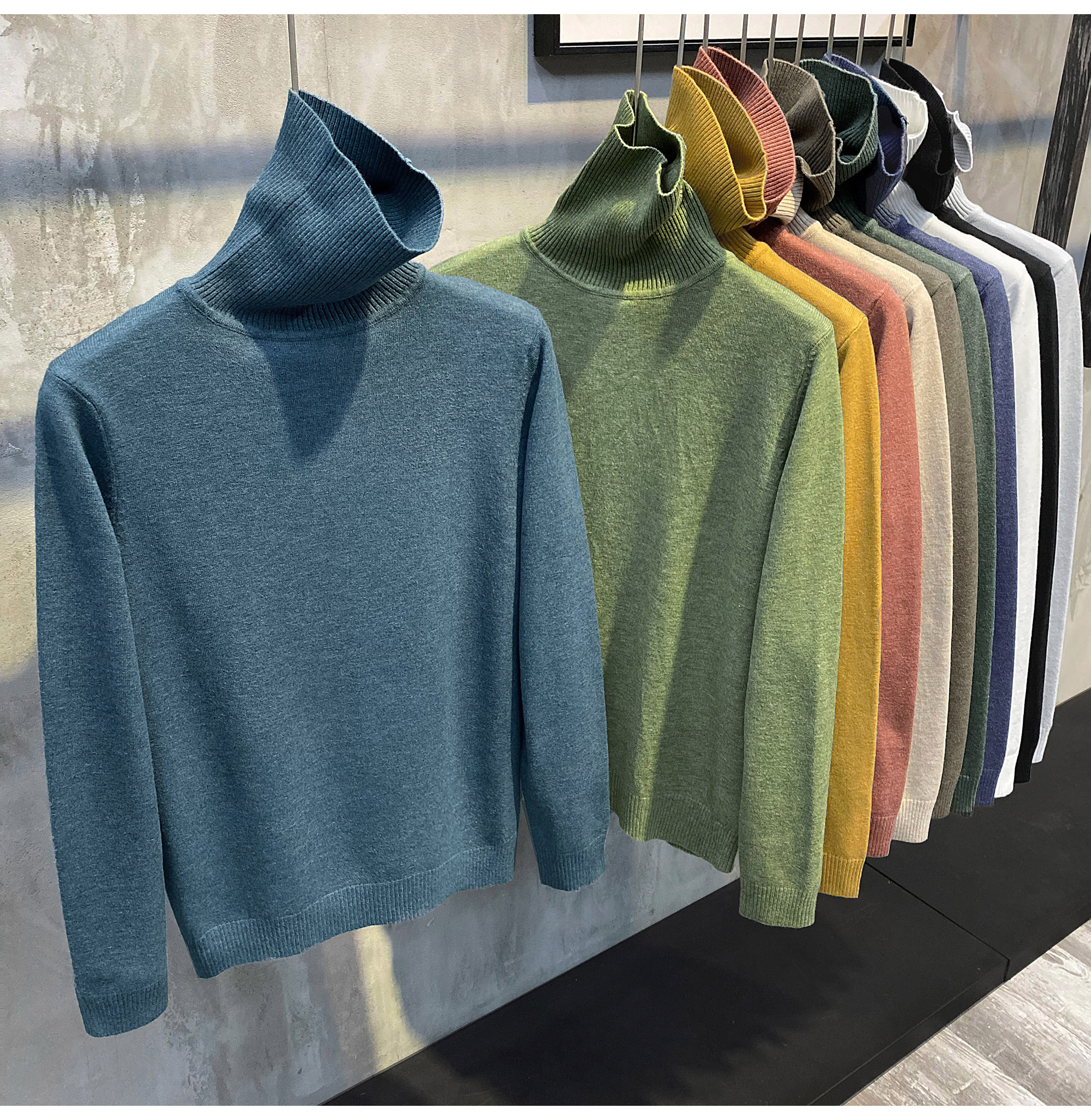 LUUD 冬季保暖可翻高領針織衫修身毛衣打底衫男韓版法拉絨毛線衣