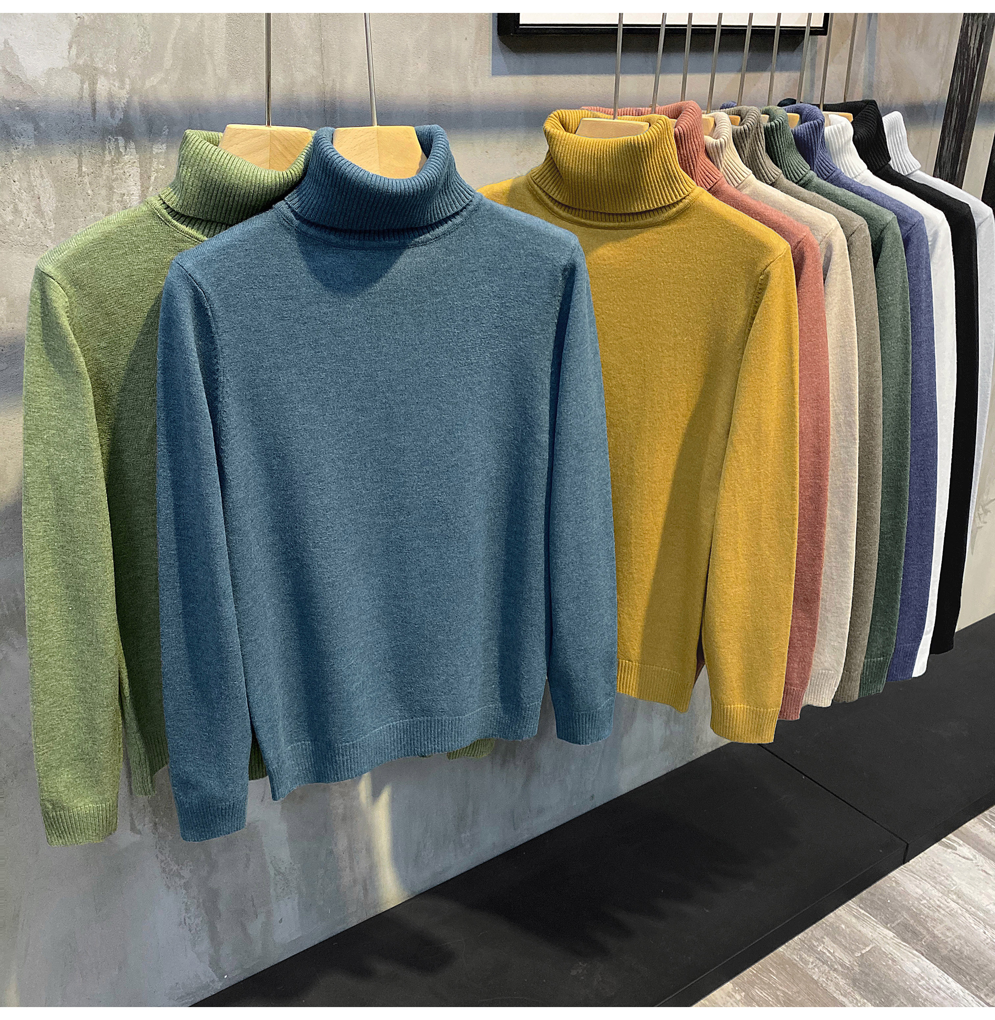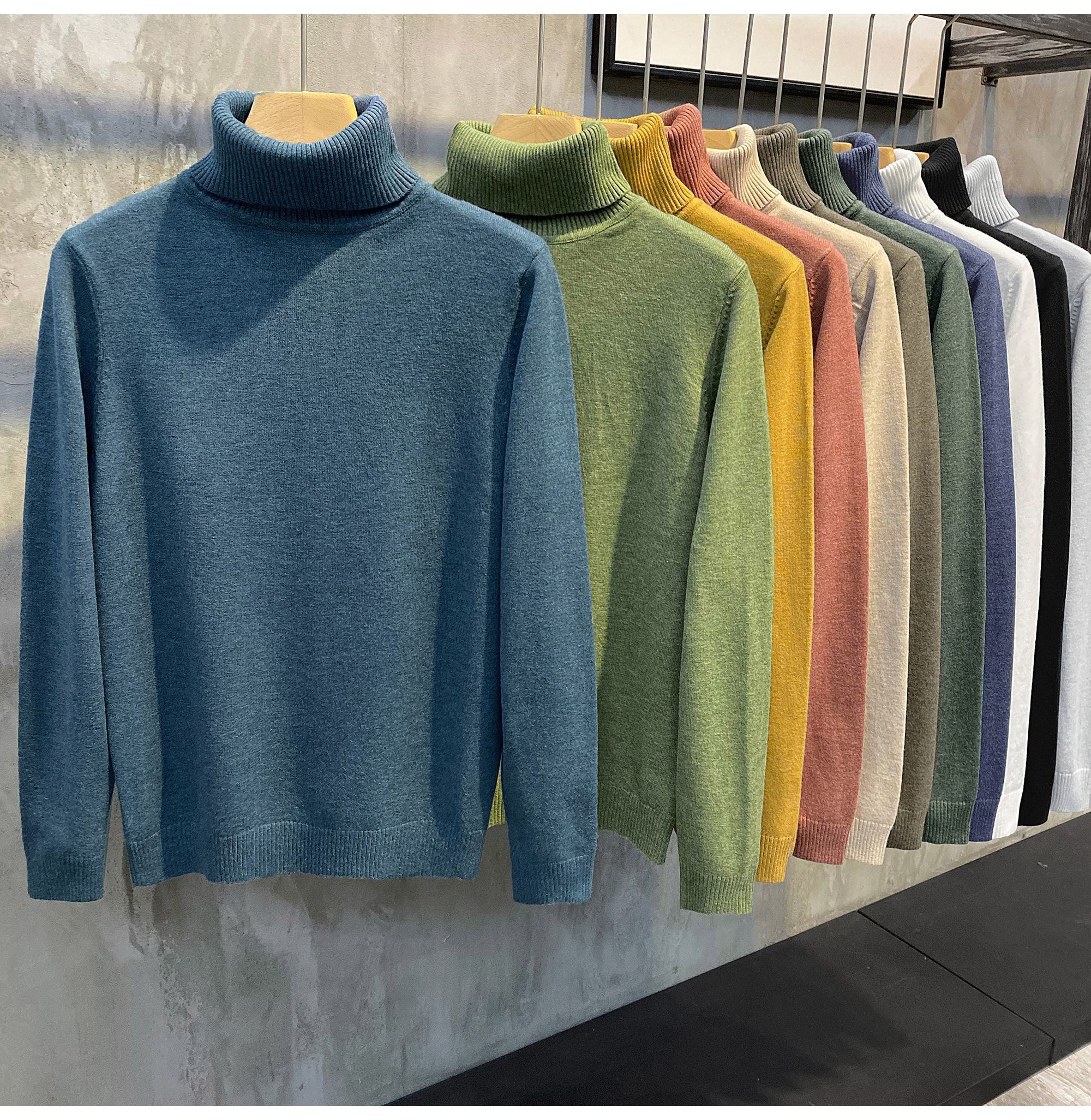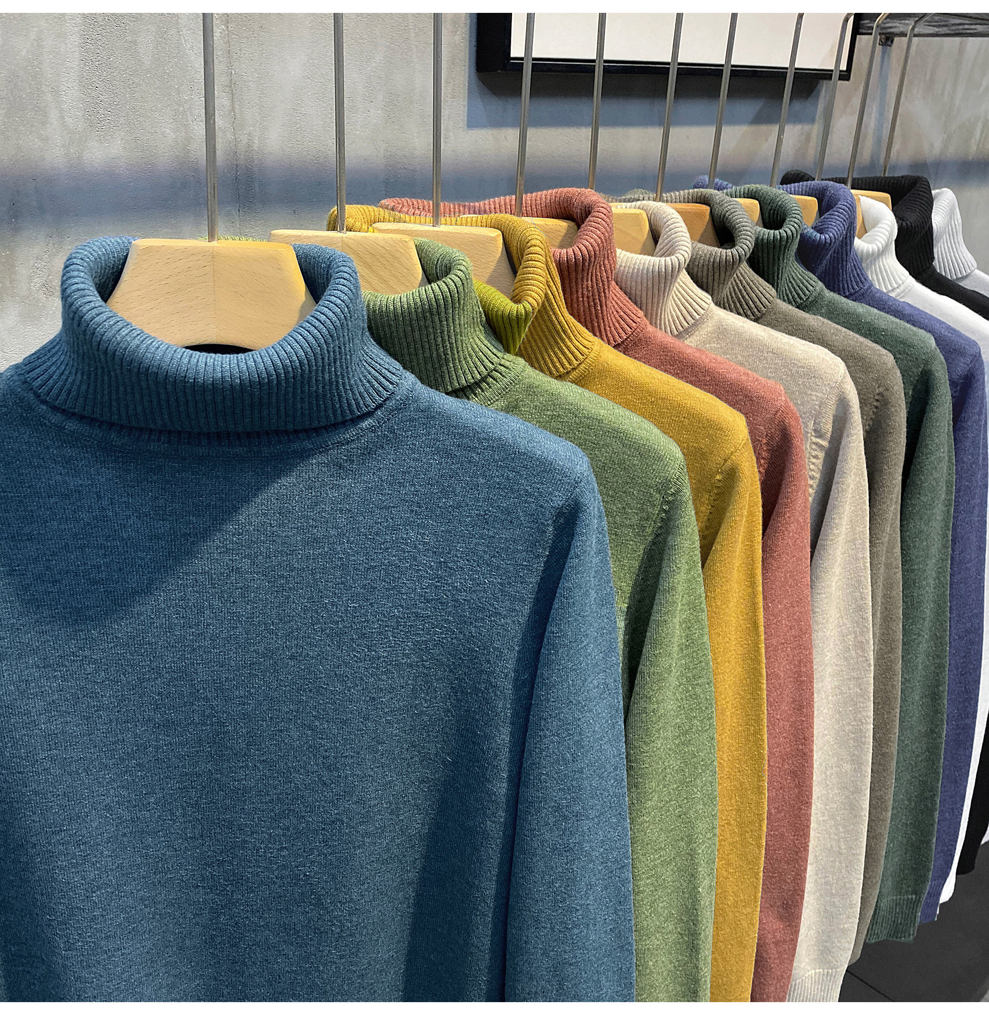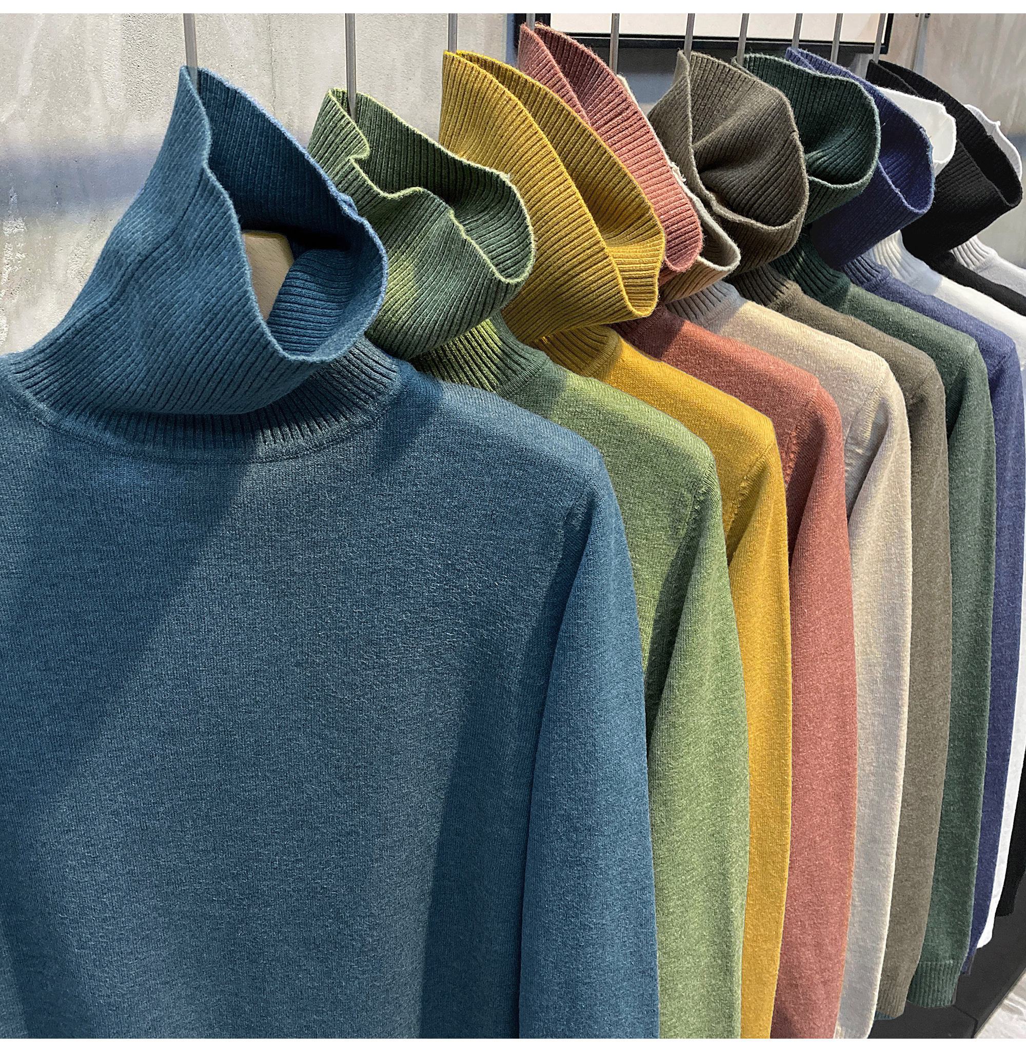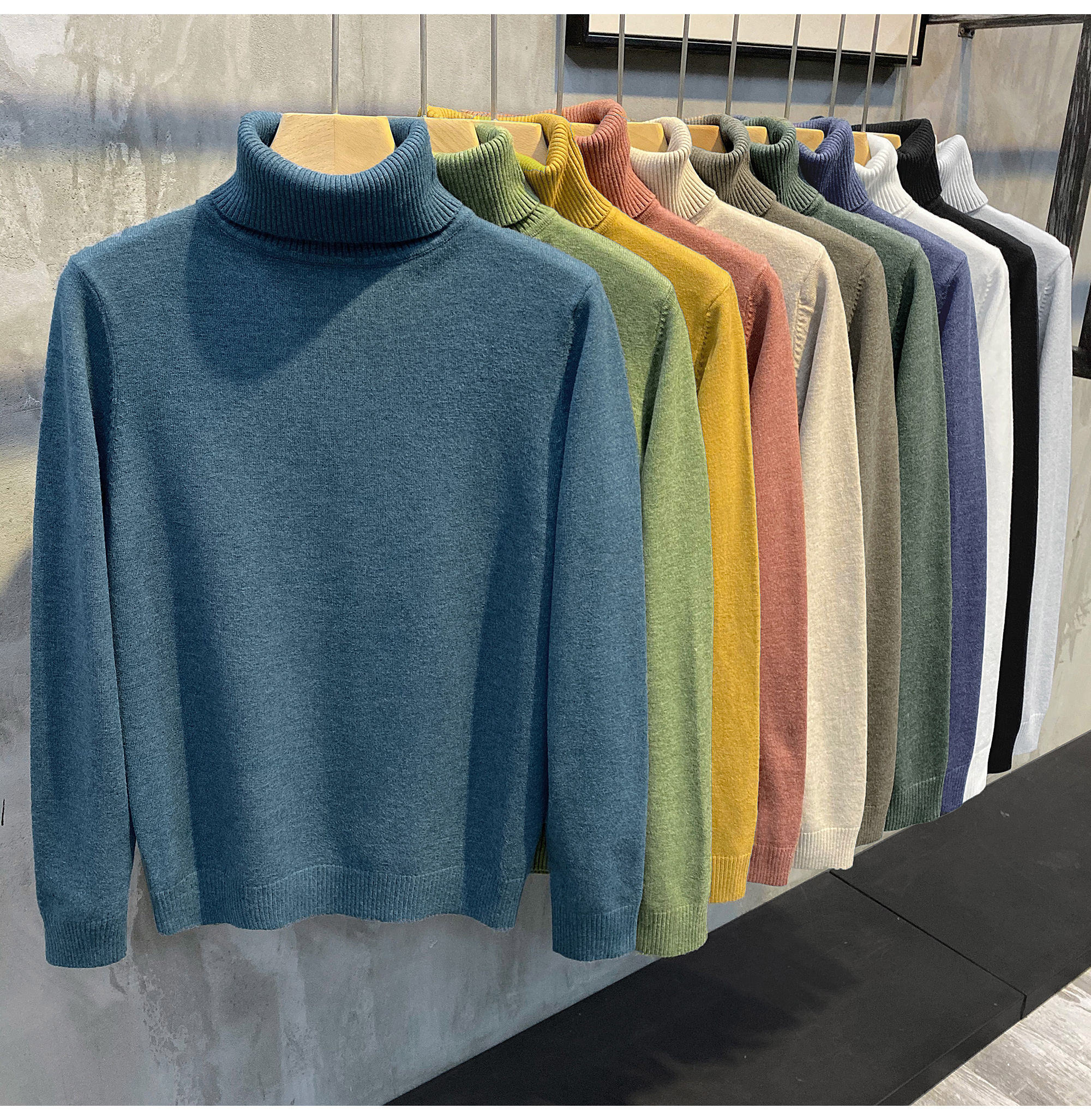 LUUD 冬季保暖可翻高領針織衫修身毛衣打底衫男韓版法拉絨毛線衣