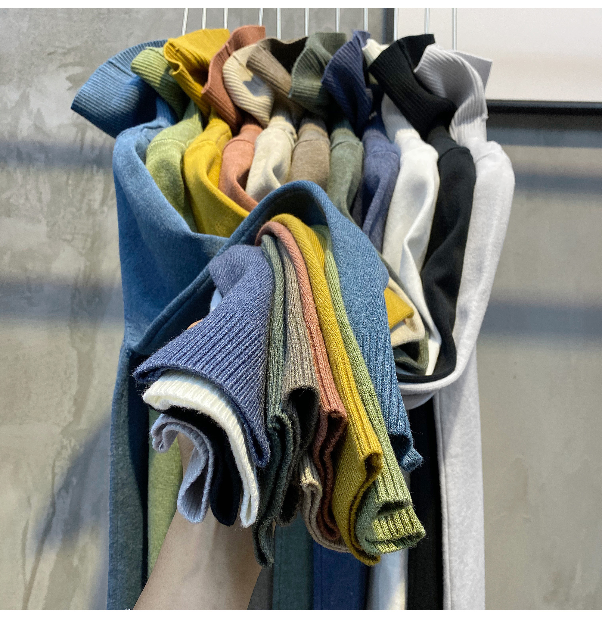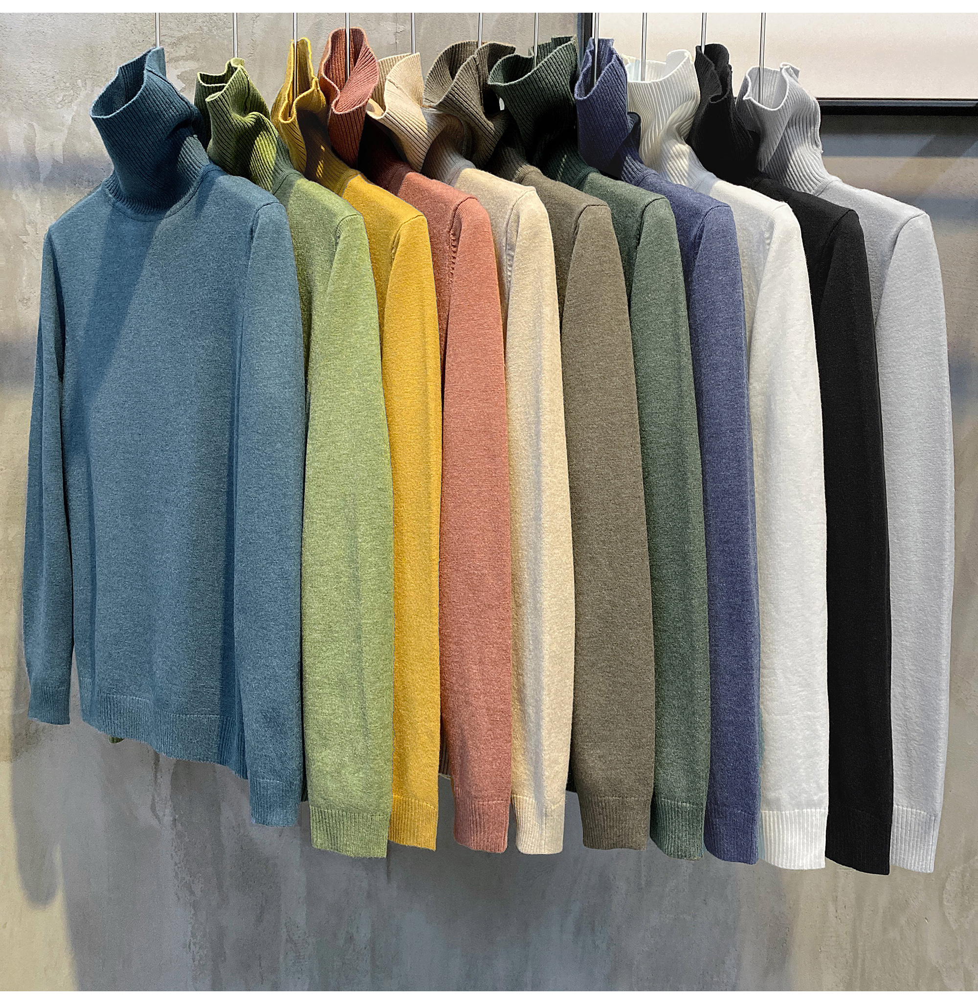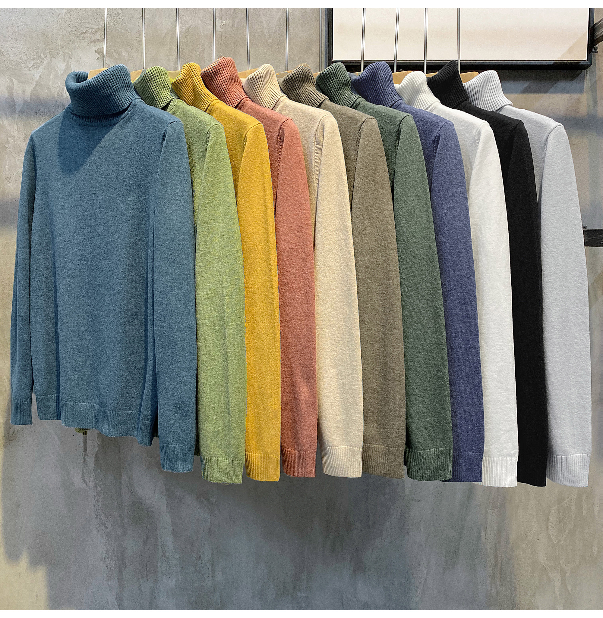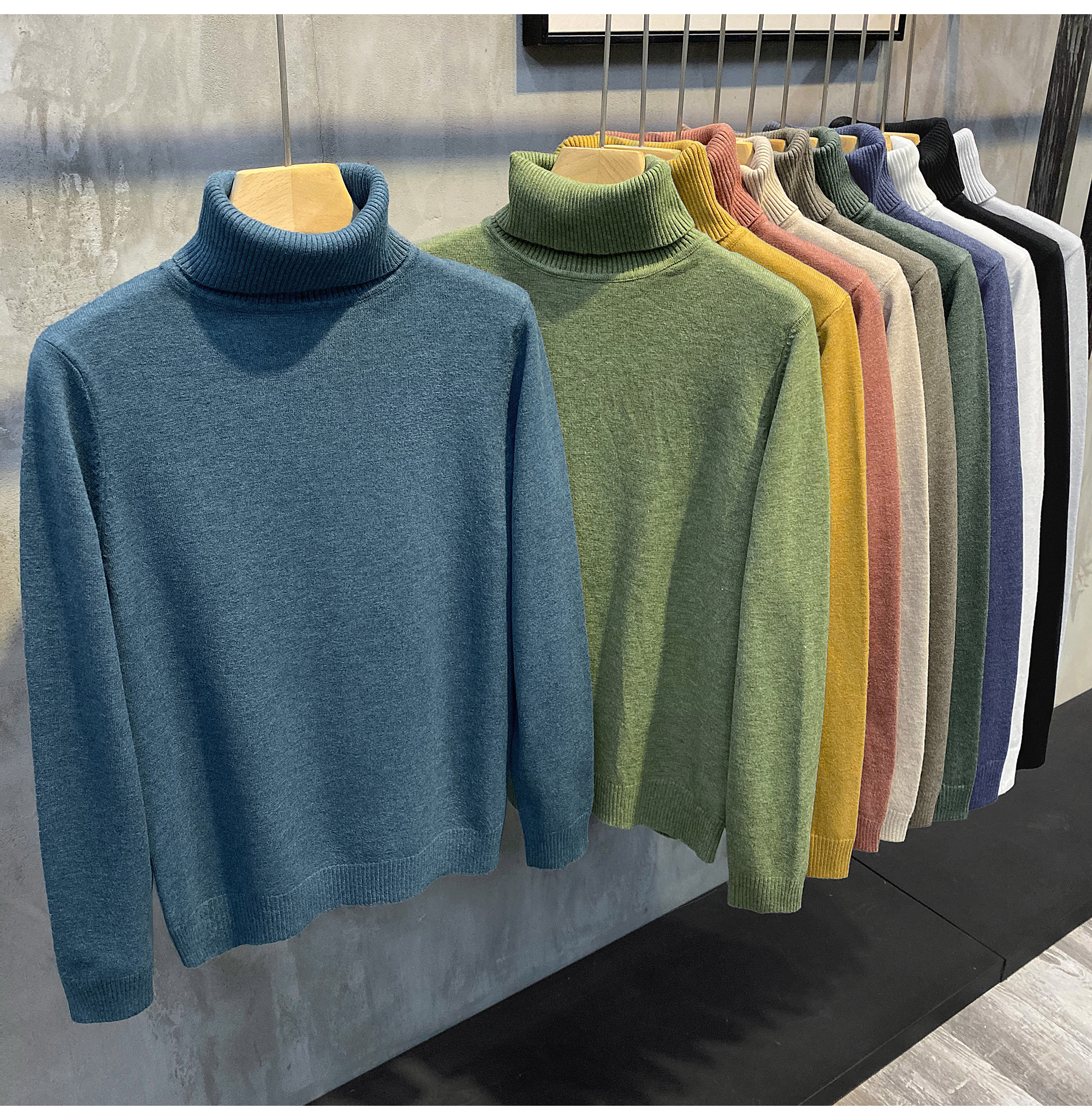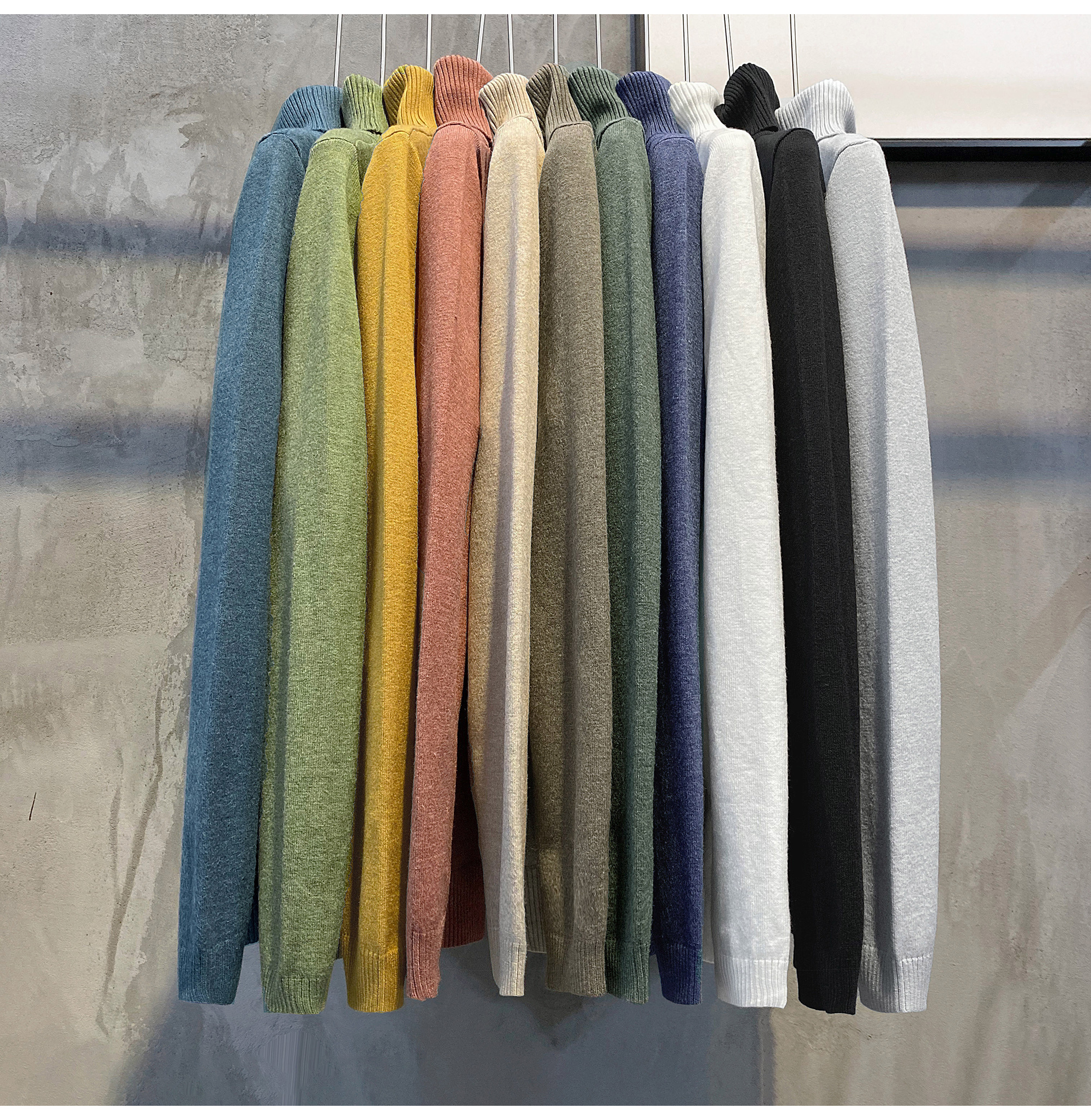 LUUD 冬季保暖可翻高領針織衫修身毛衣打底衫男韓版法拉絨毛線衣