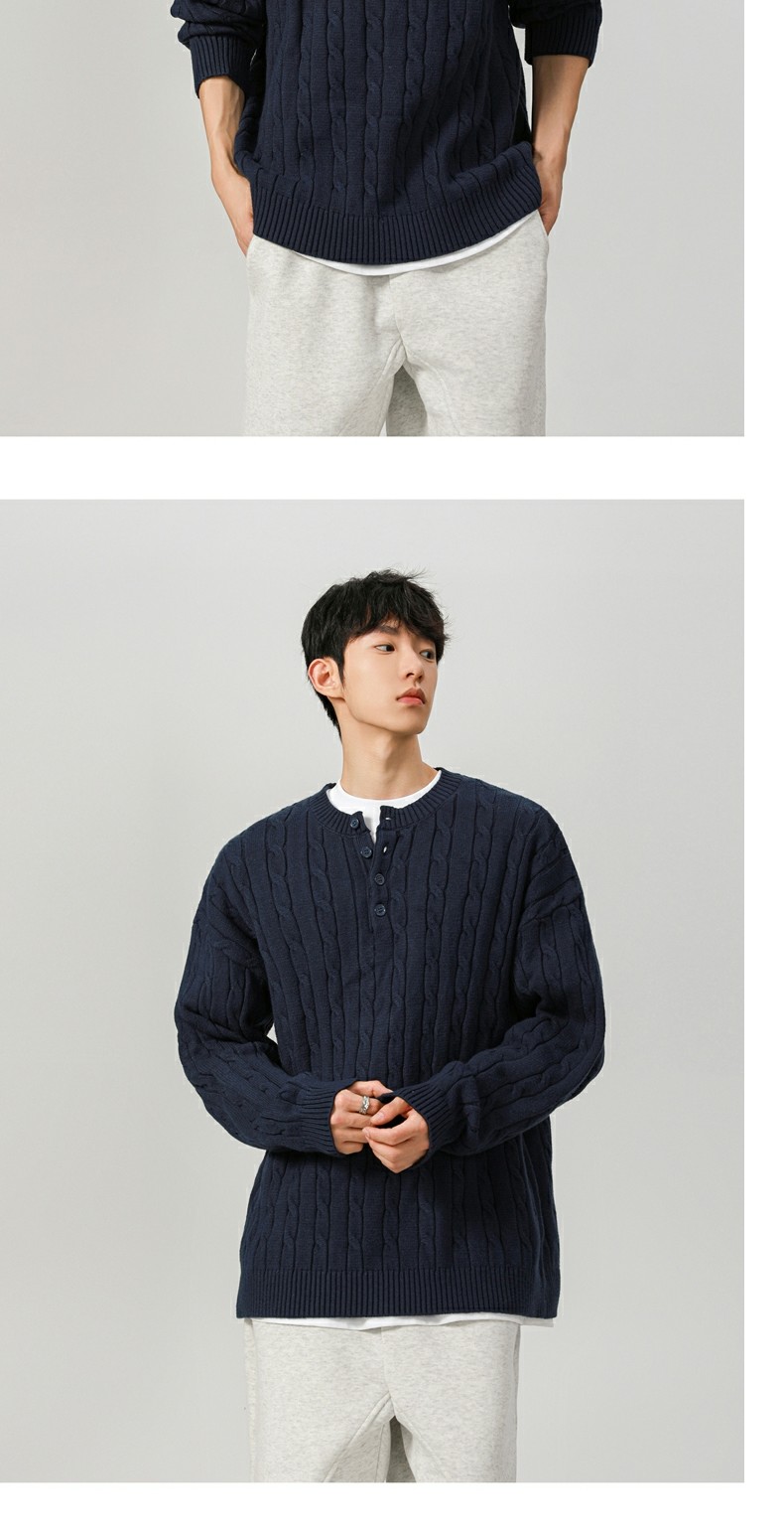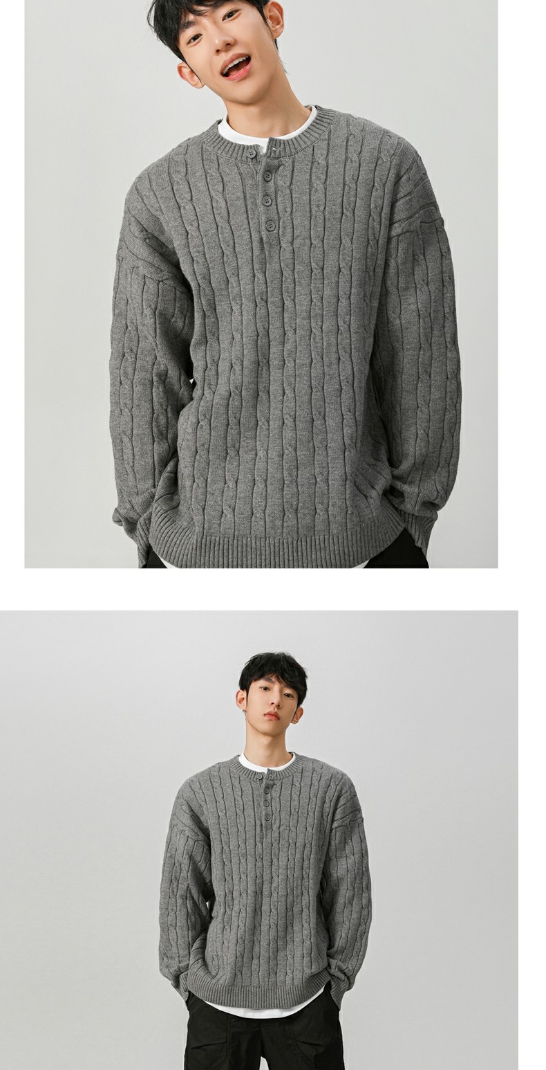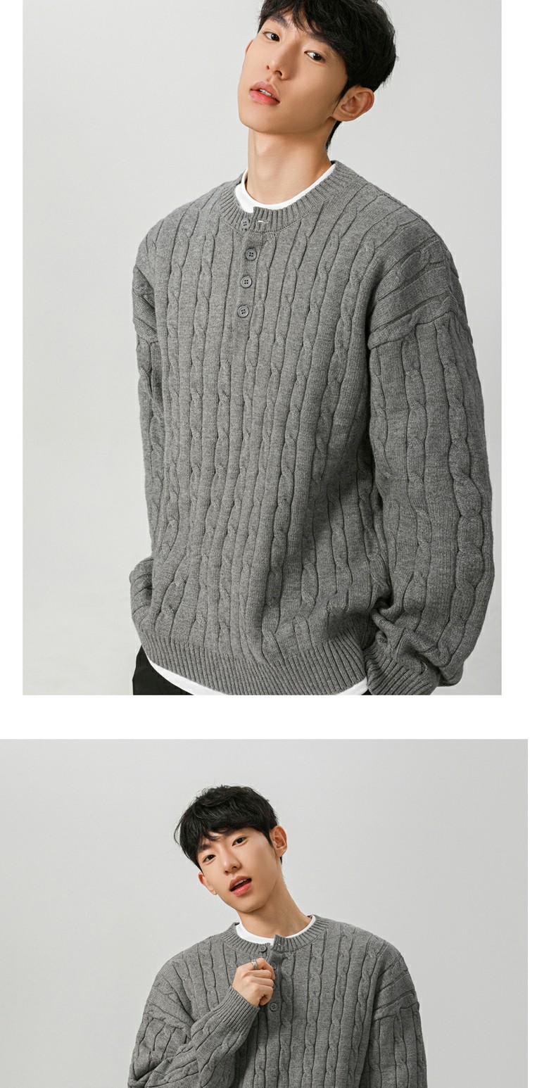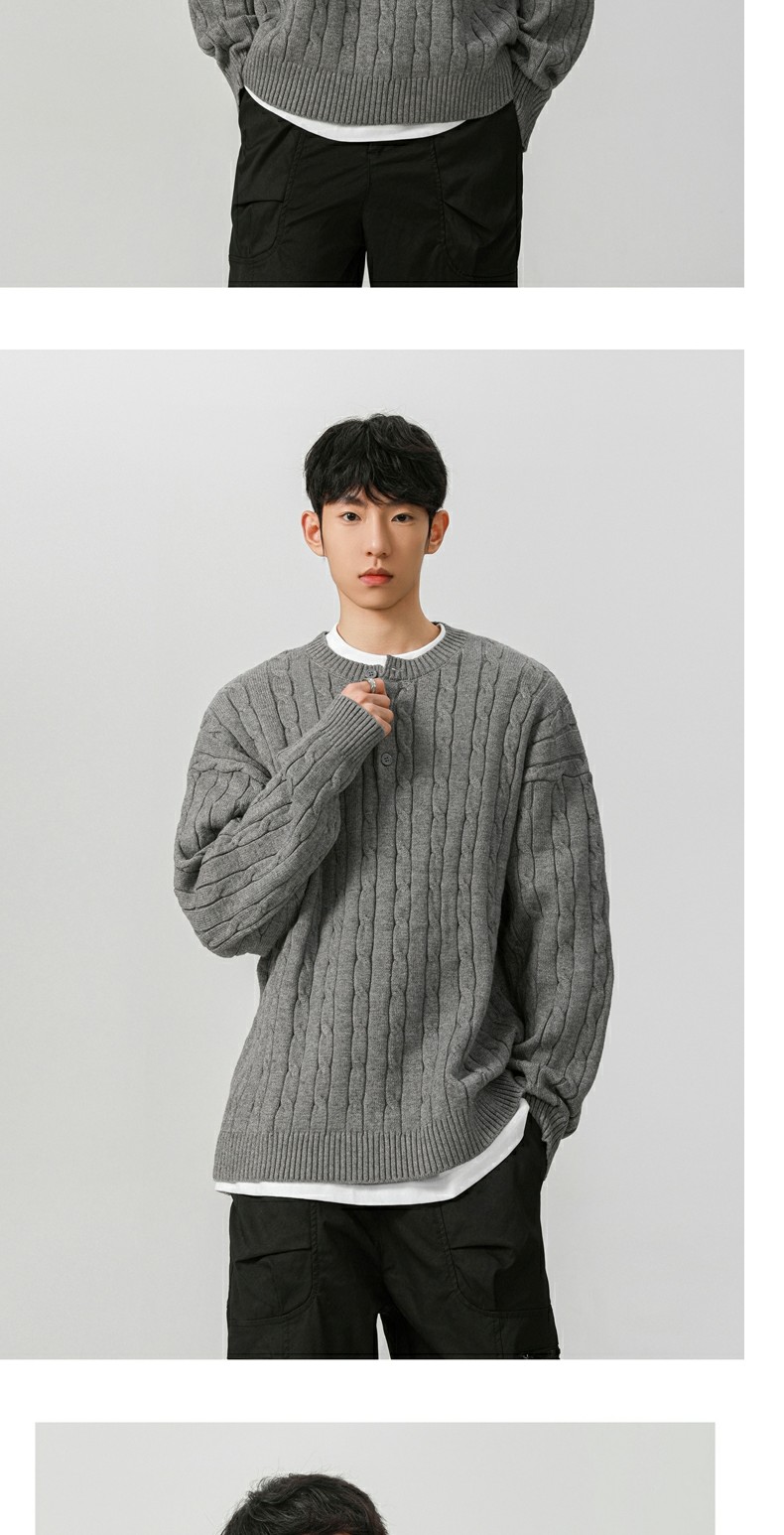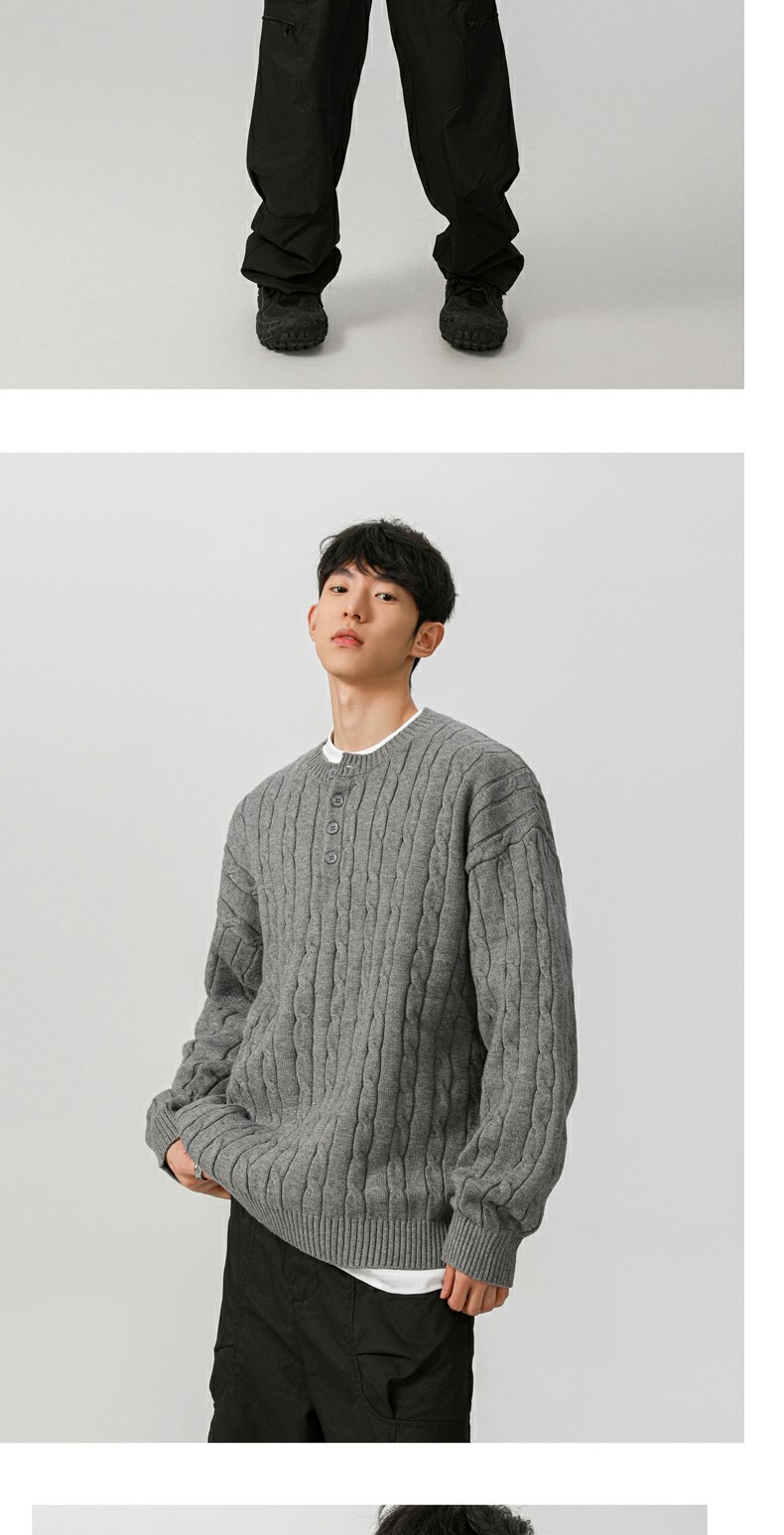 本命年酒紅色亨利領毛衣男款秋冬寬松慵懶針織衫麻花粗線新年衣服