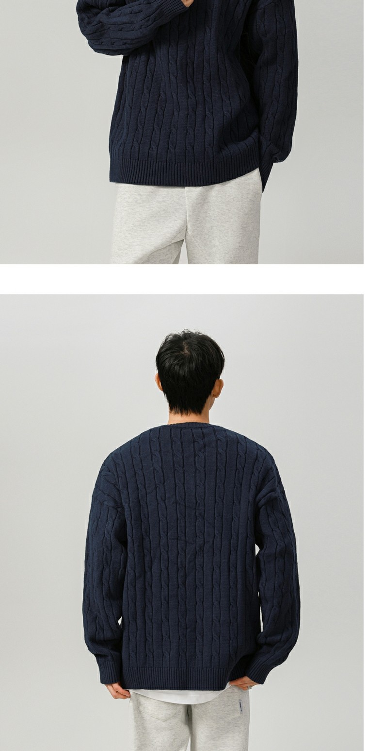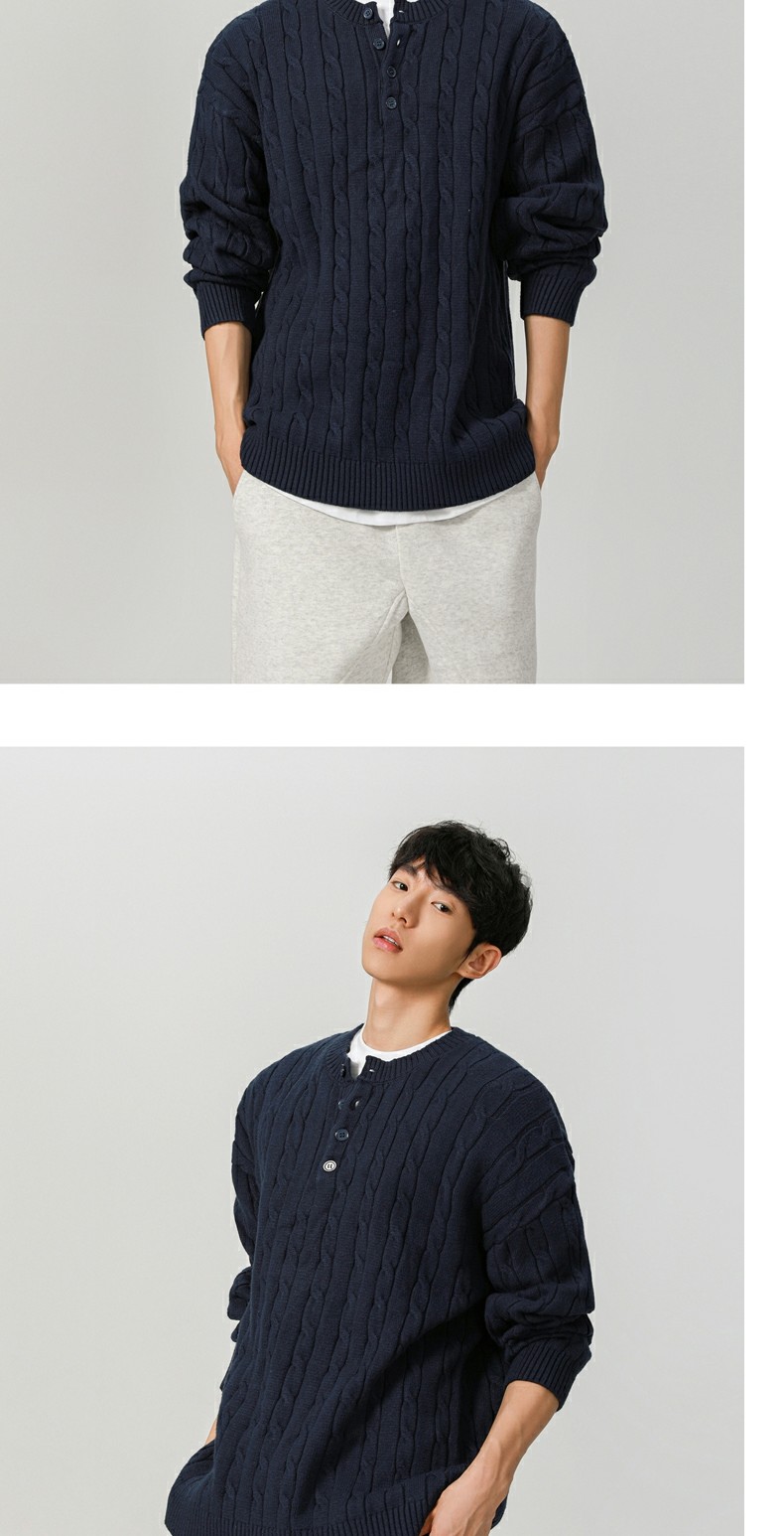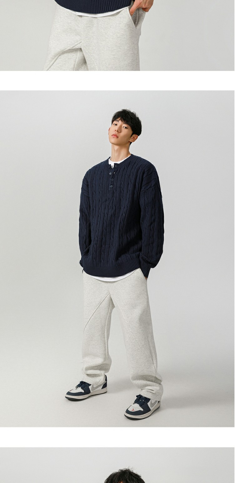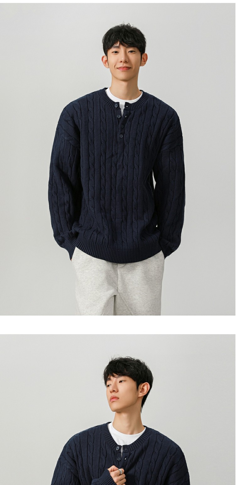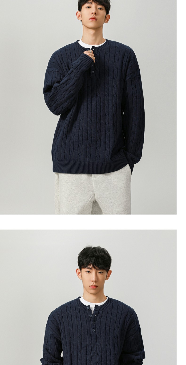 本命年酒紅色亨利領毛衣男款秋冬寬松慵懶針織衫麻花粗線新年衣服