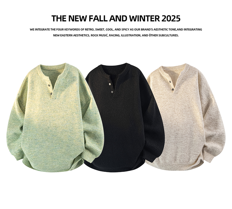 WASSUP ERIKA美式亨利領毛衣男秋冬2025新款針織衫外套內搭毛線衣