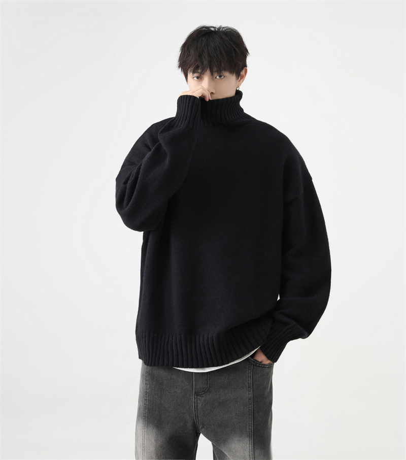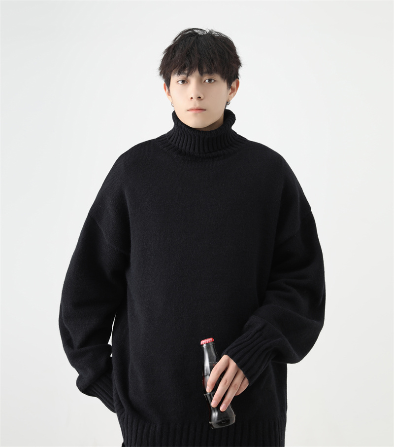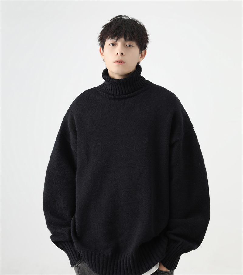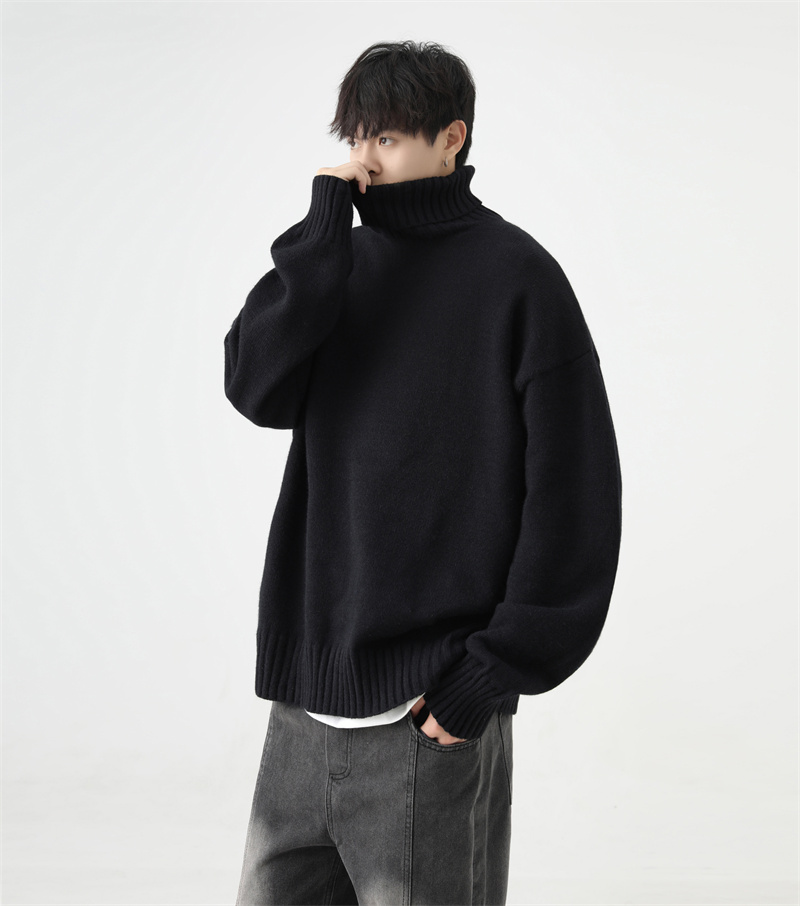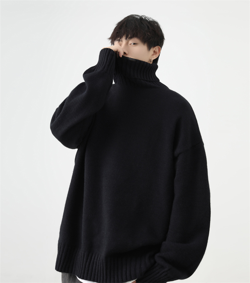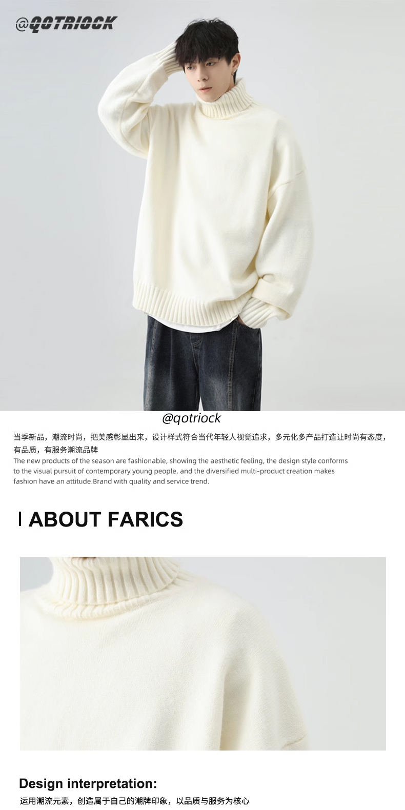 QOTRIOCK高領毛衣男秋冬新款寬松慵懶加絨加厚針織衫情侶內搭線衣