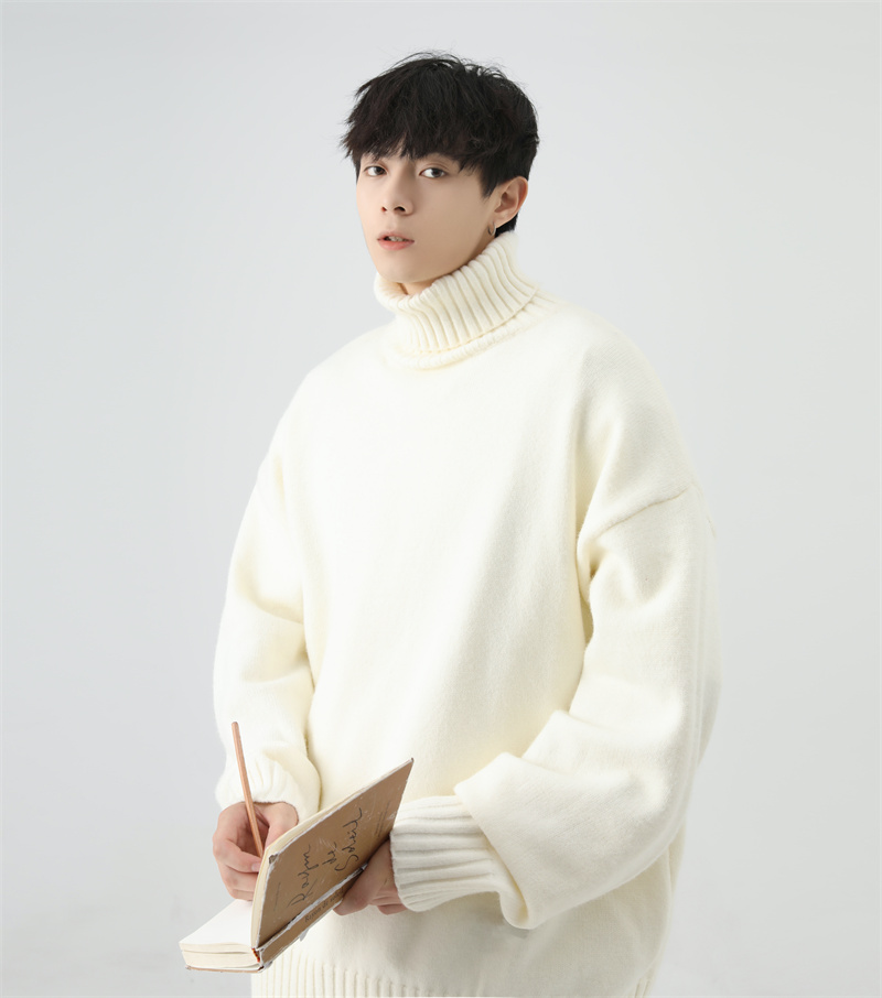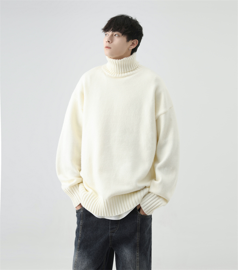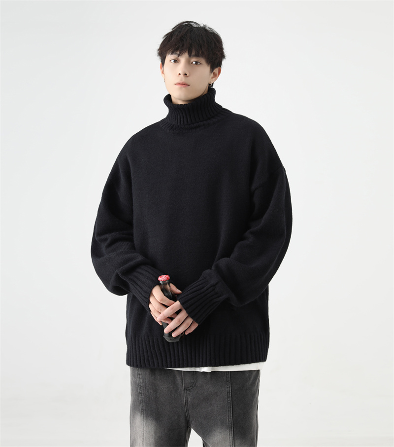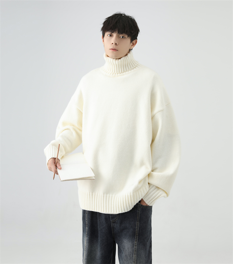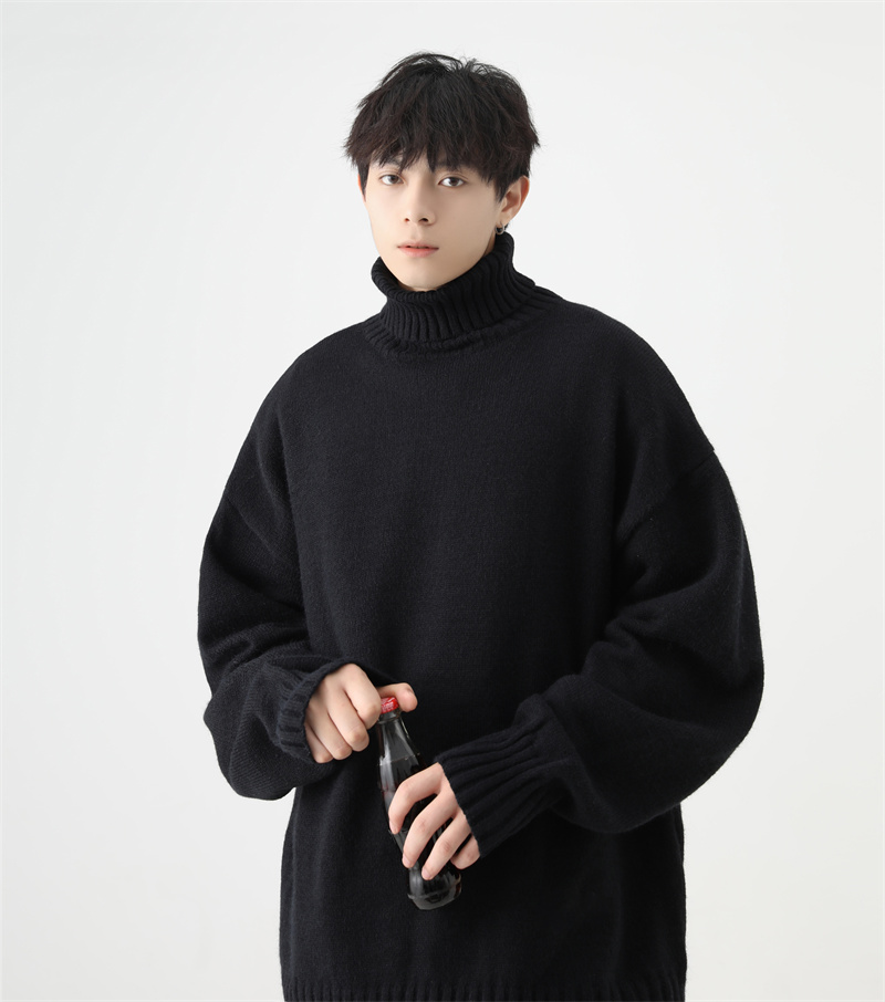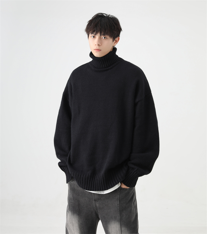 QOTRIOCK高領毛衣男秋冬新款寬松慵懶加絨加厚針織衫情侶內搭線衣