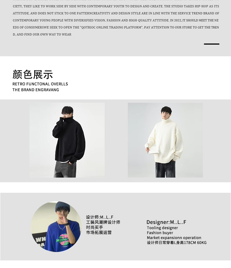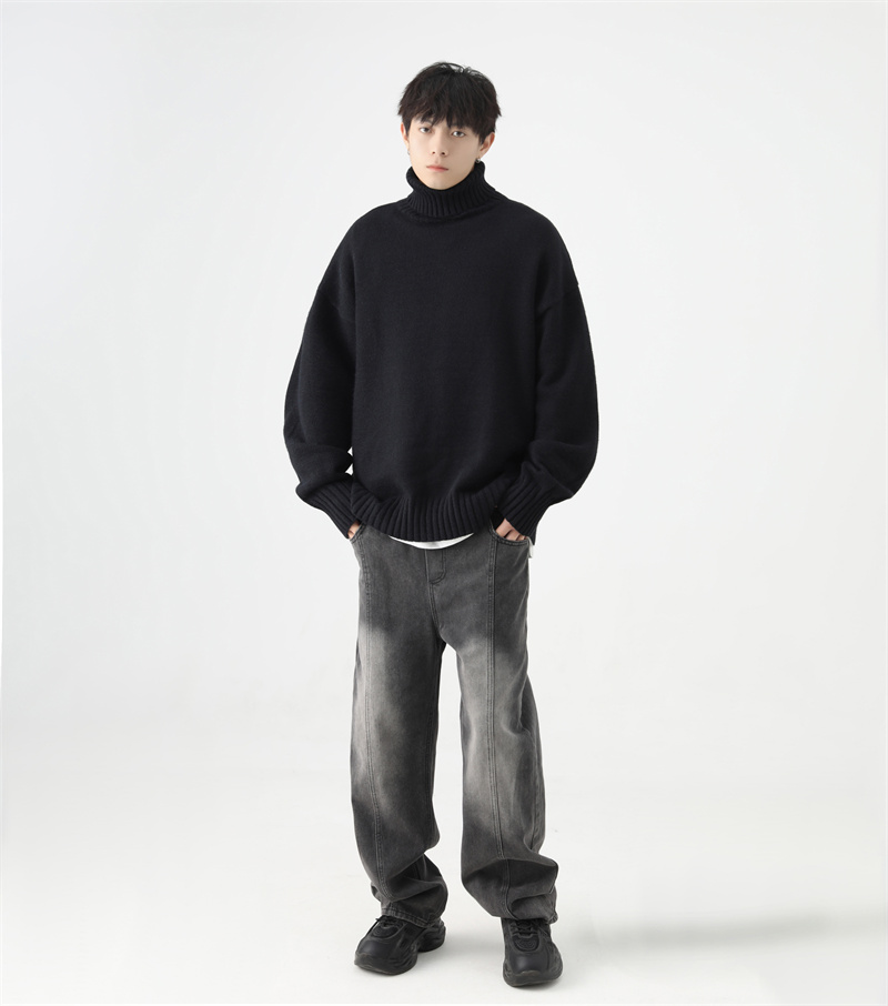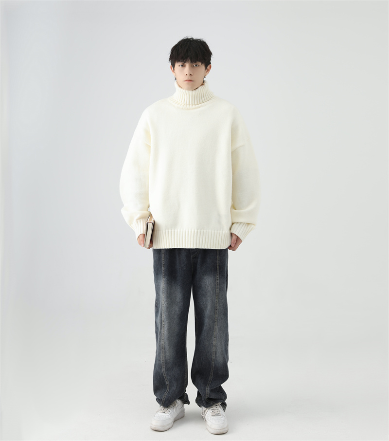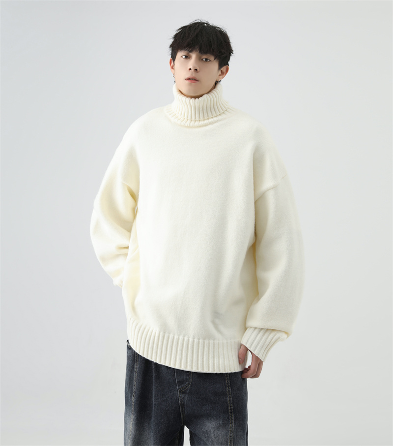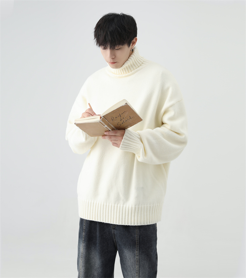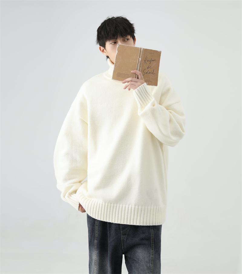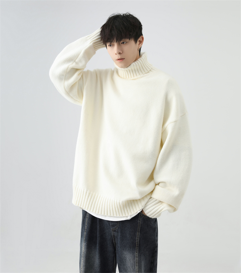 QOTRIOCK高領毛衣男秋冬新款寬松慵懶加絨加厚針織衫情侶內搭線衣