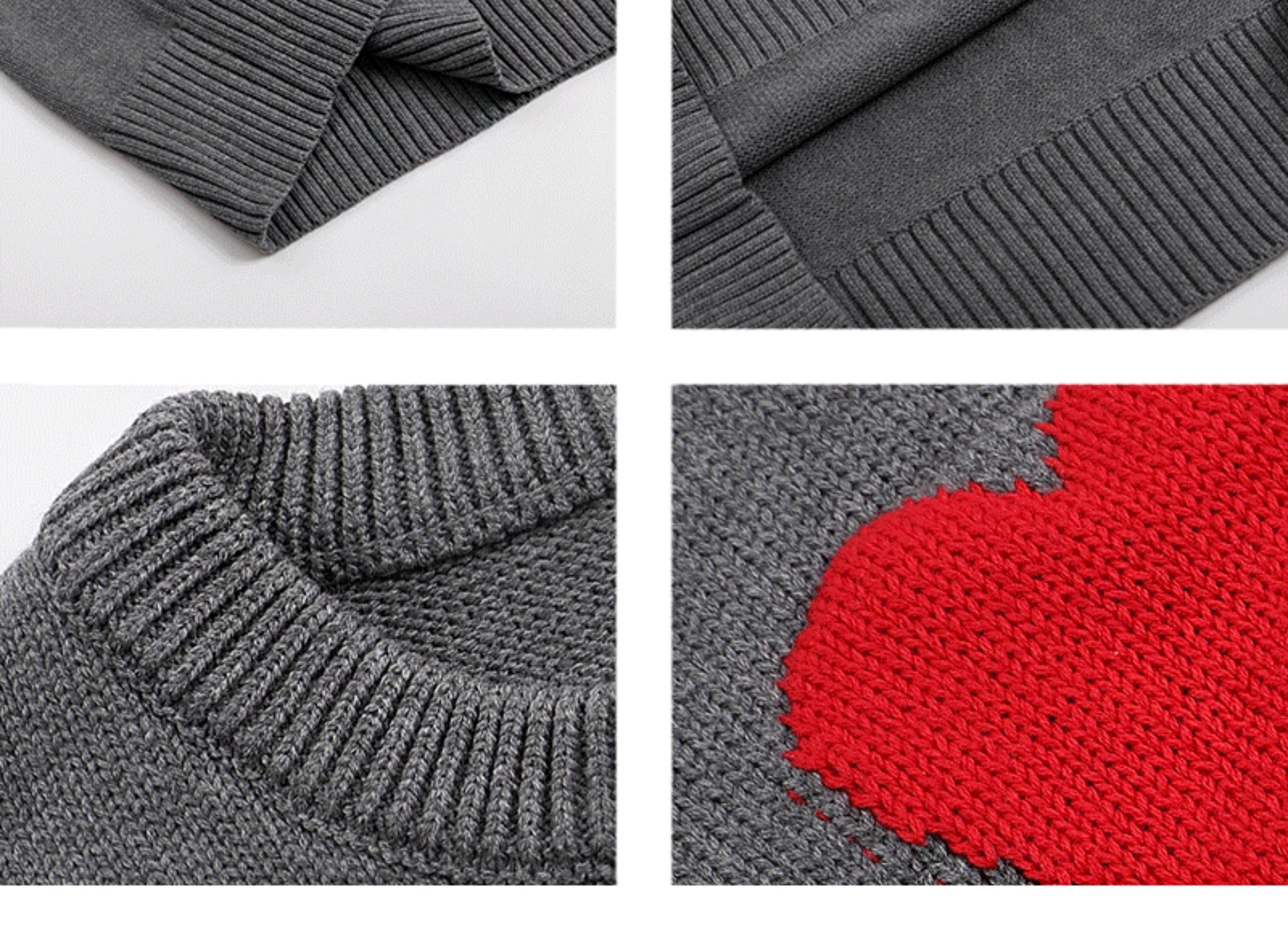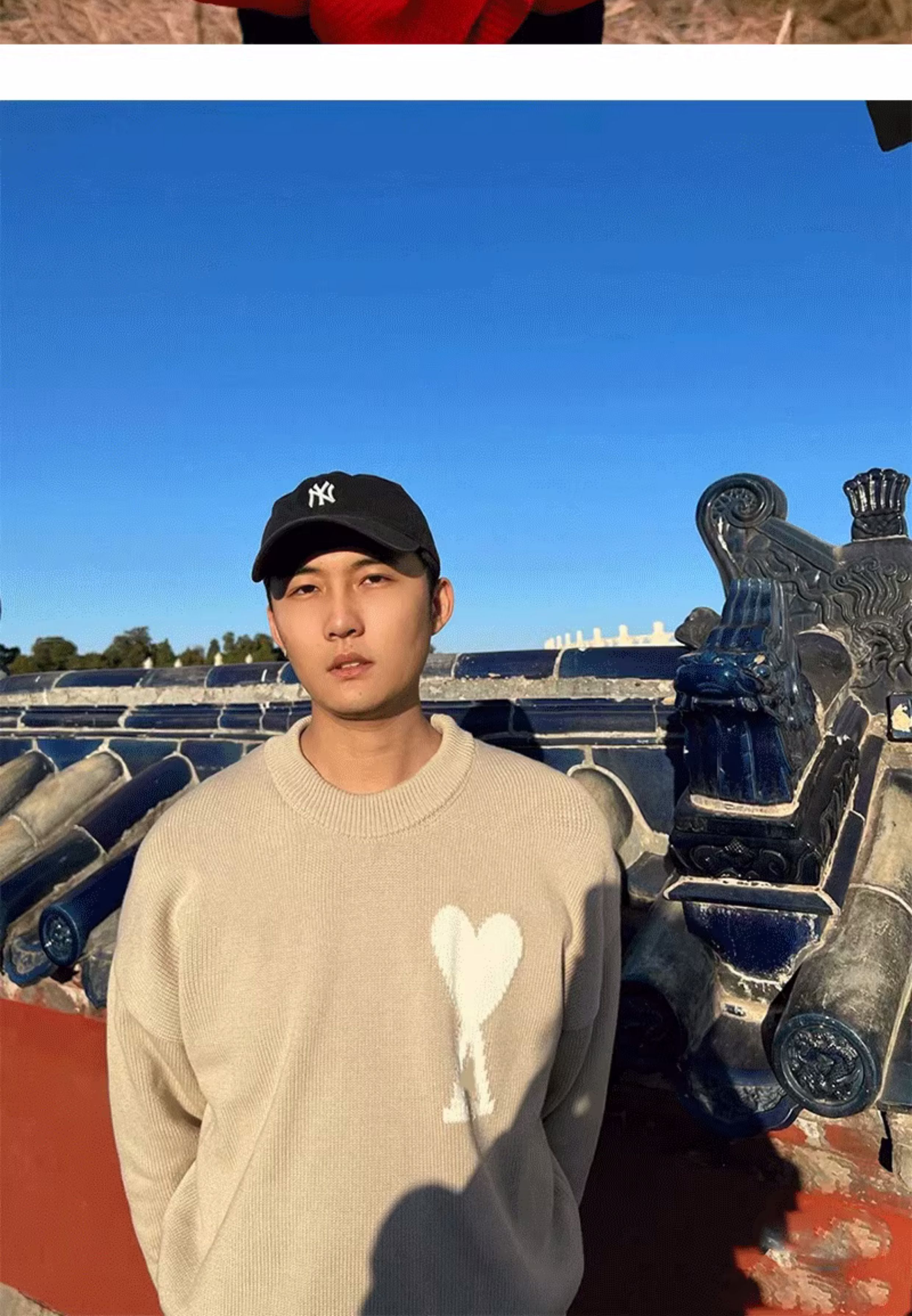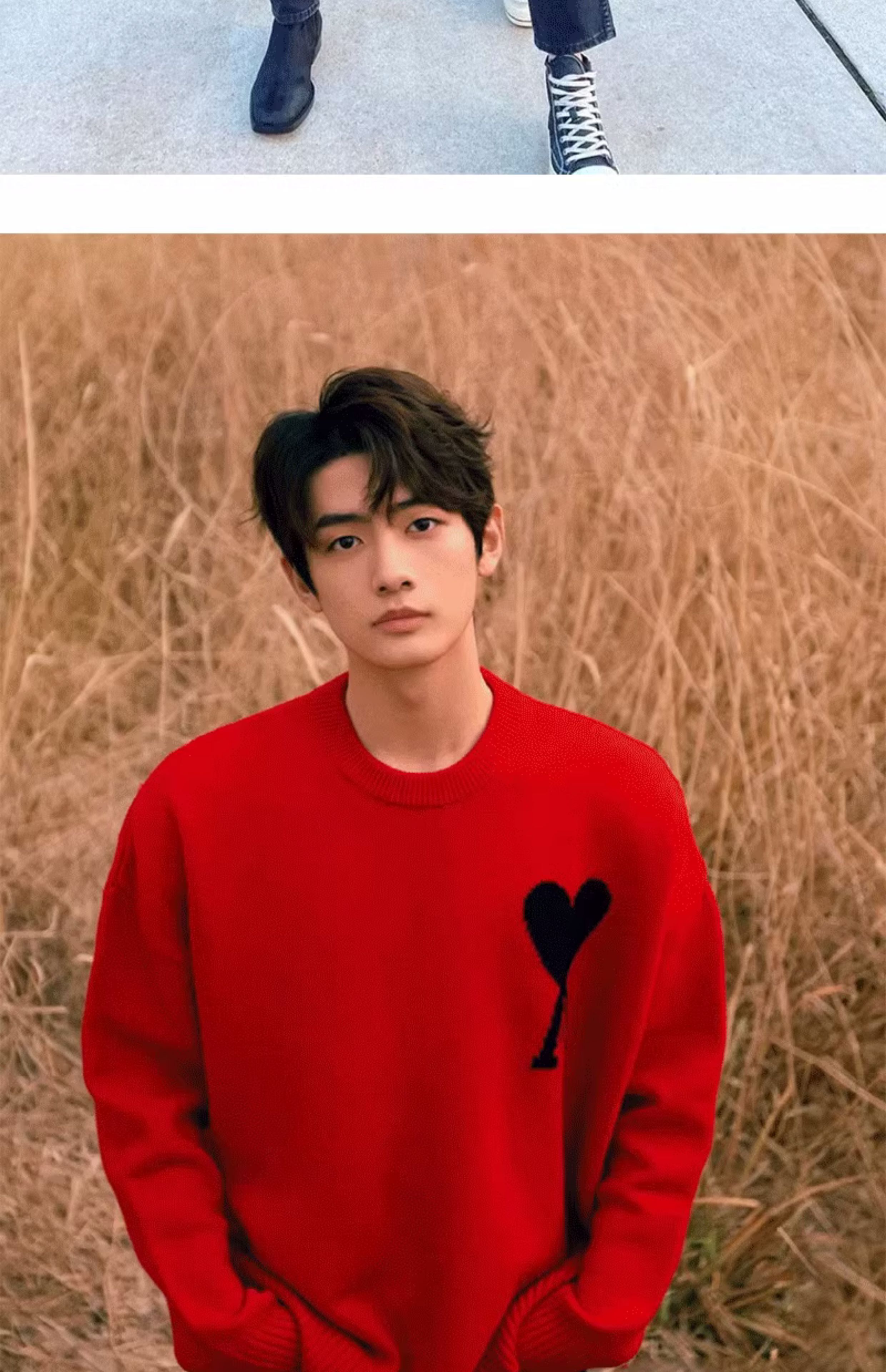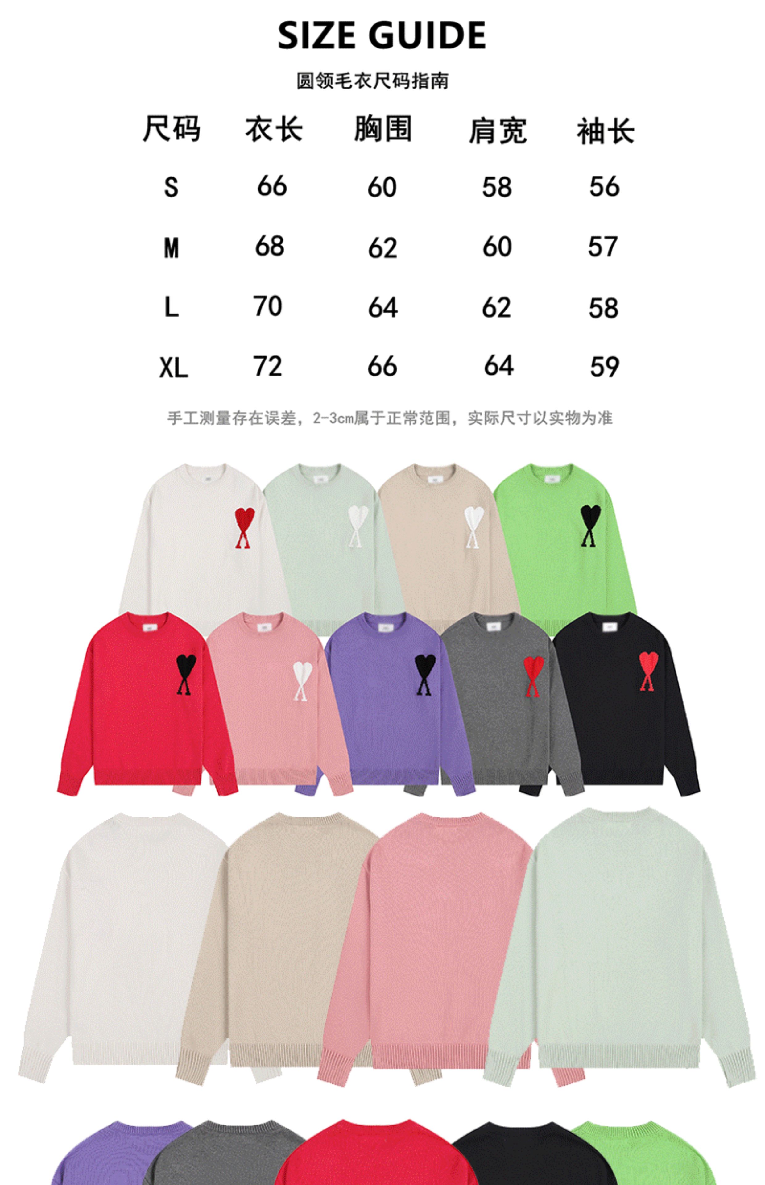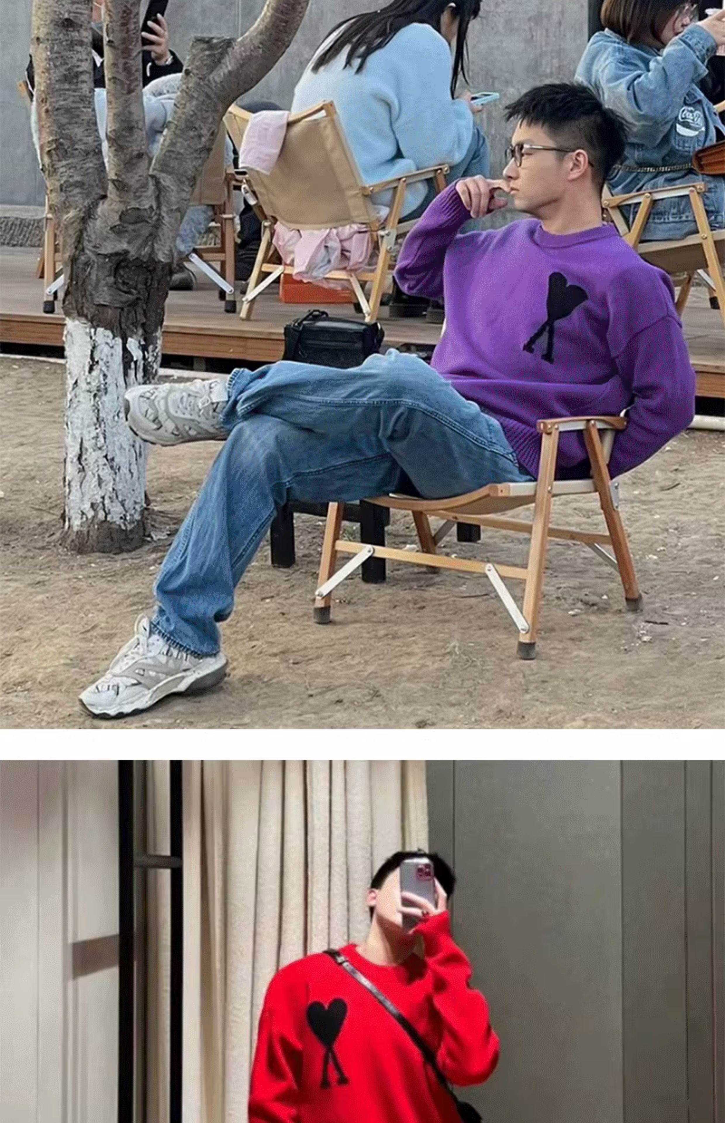 秋冬新款愛心刺綉圓領針織衫套頭男女寬松AMI CLAMS毛衣長袖上衣