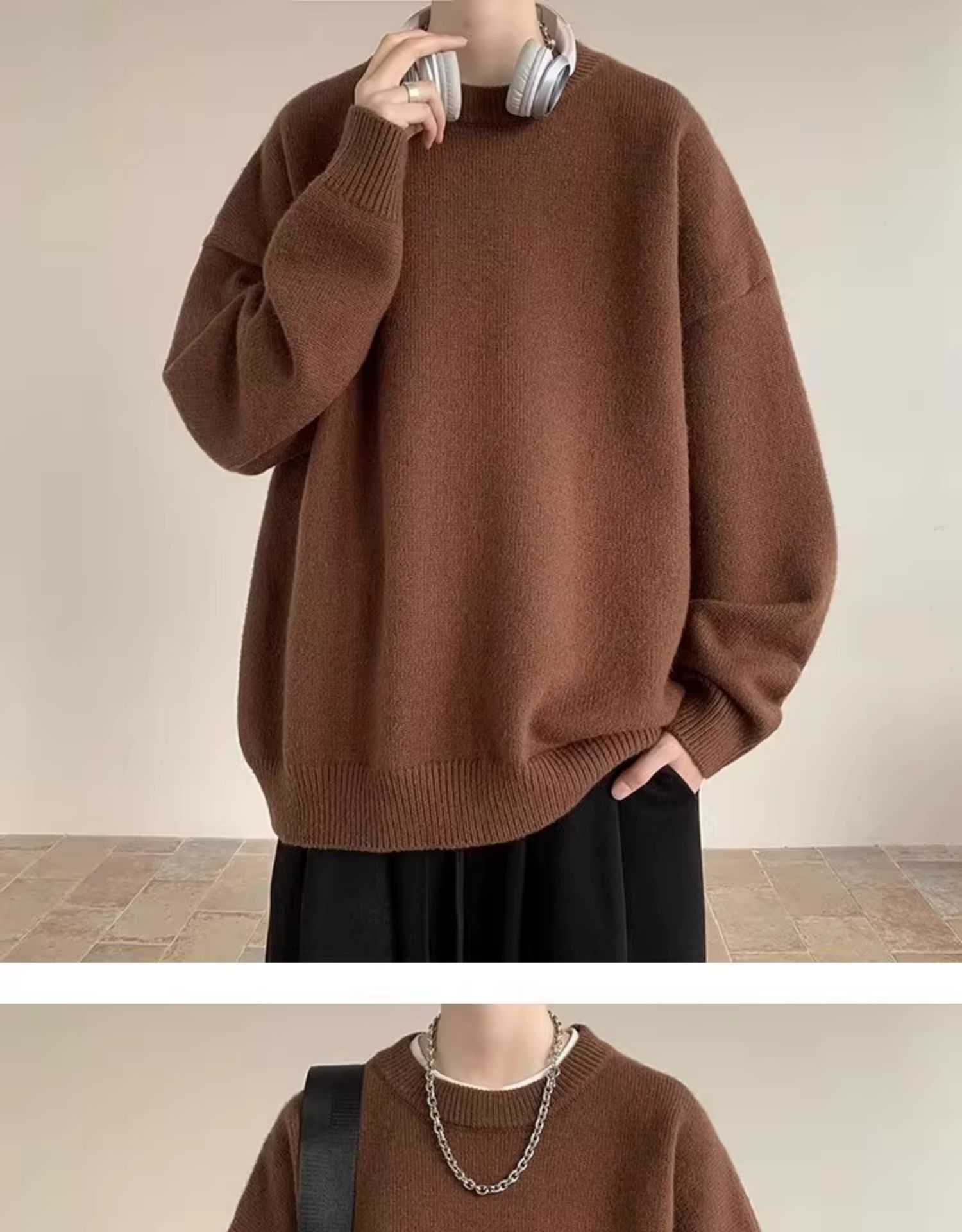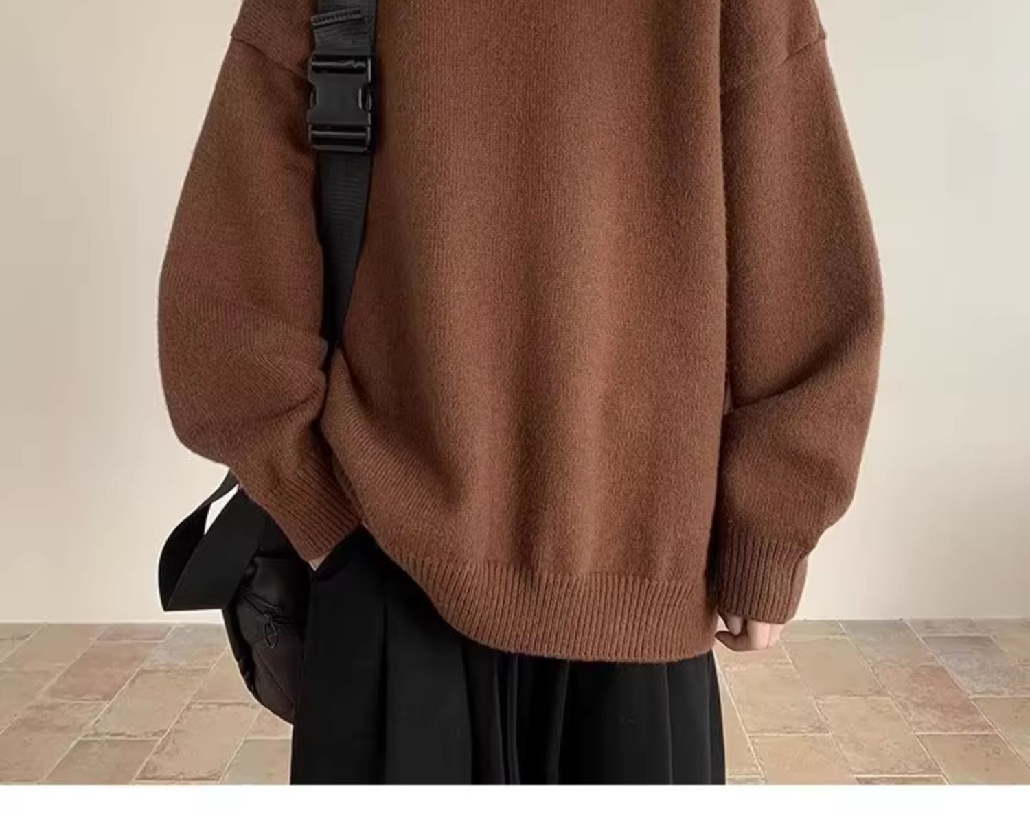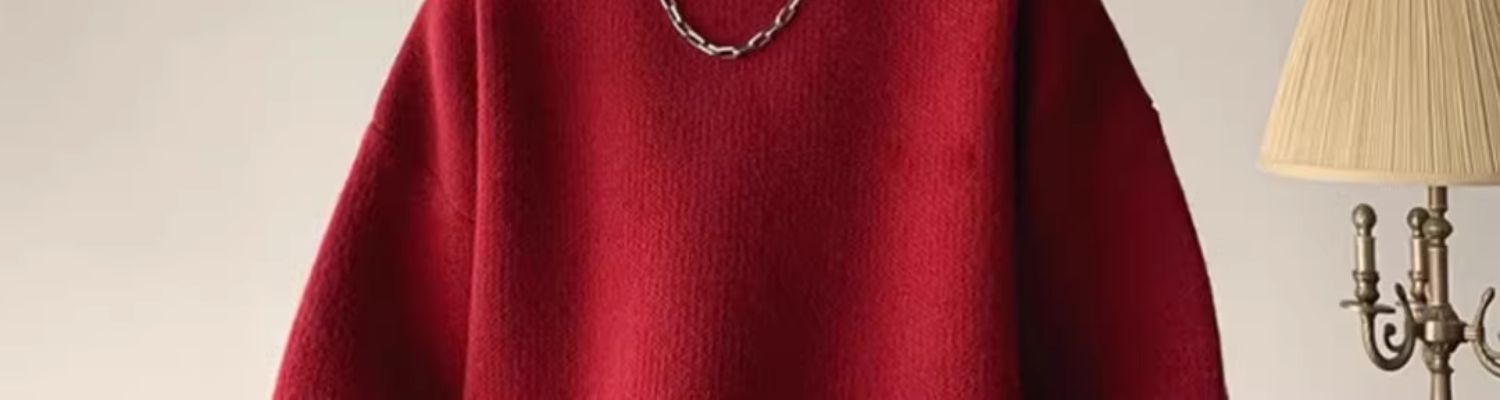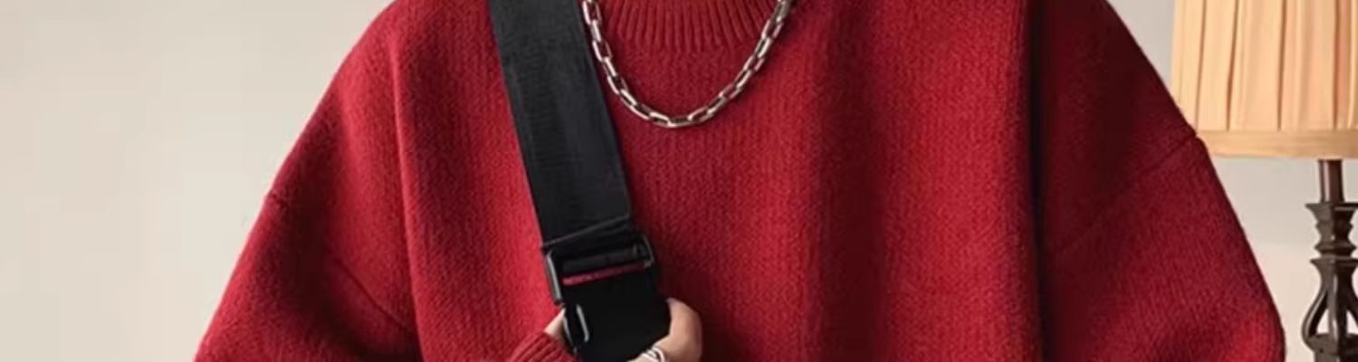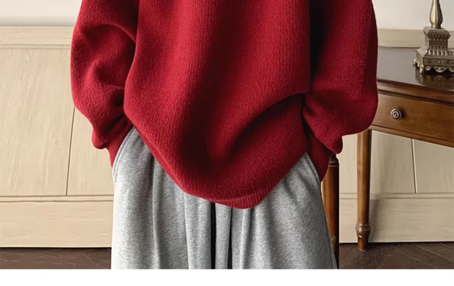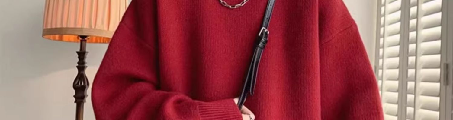 酒紅色潮牌毛衣男冬季慵懶風高級感純色內搭針織衫本命年新年衣服