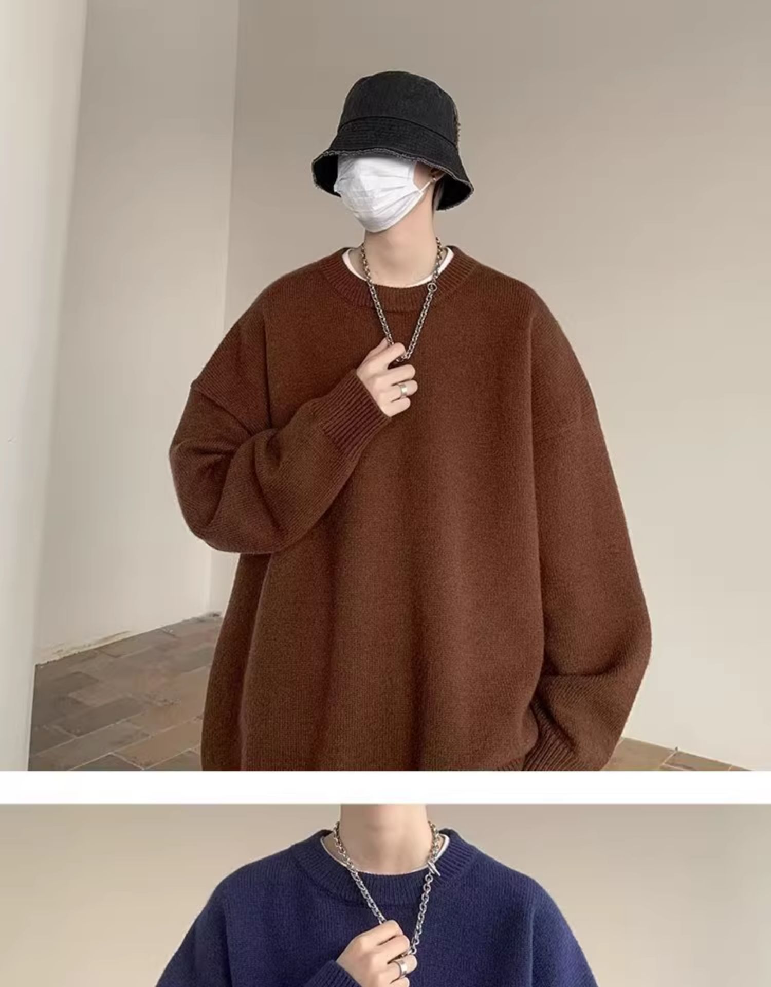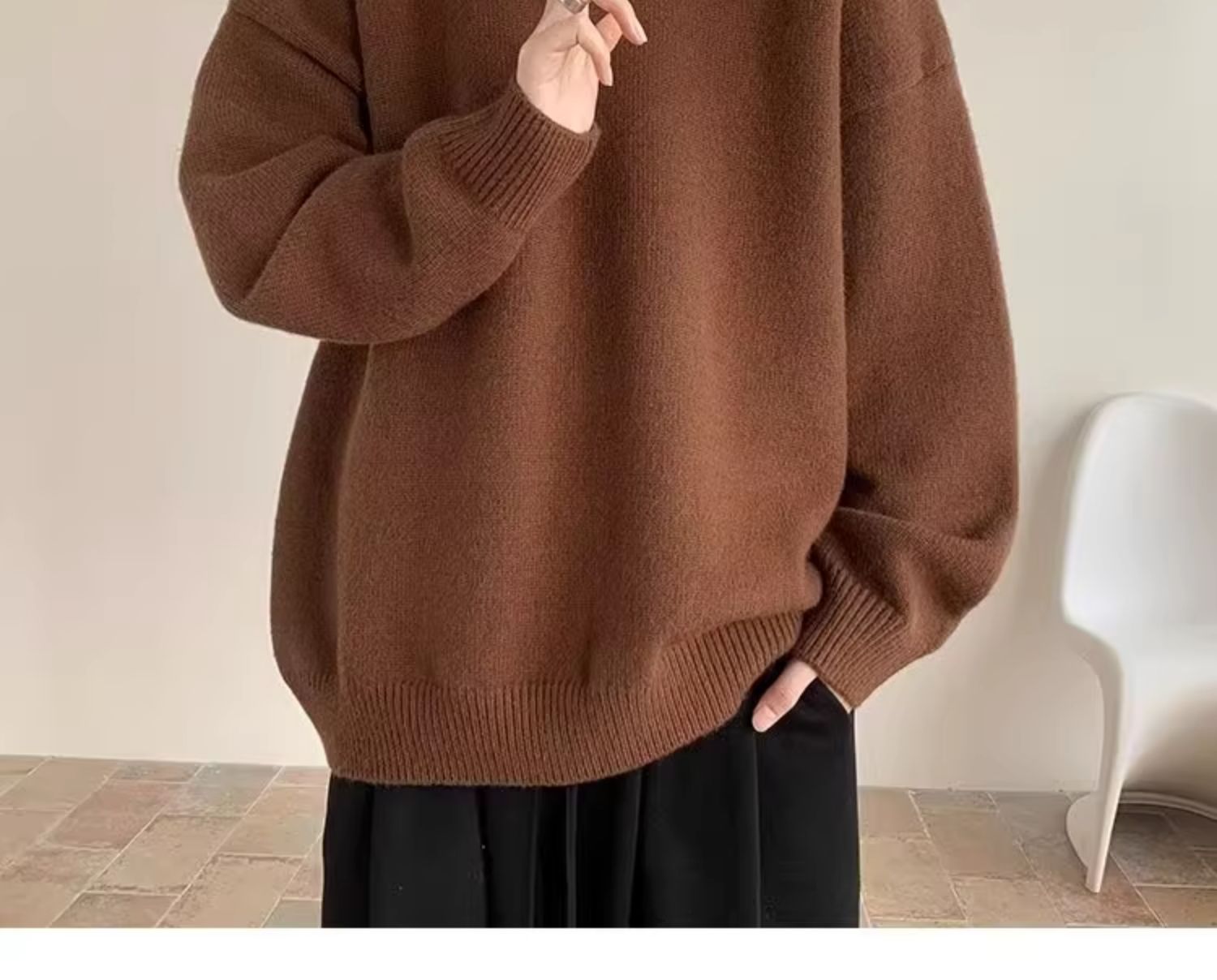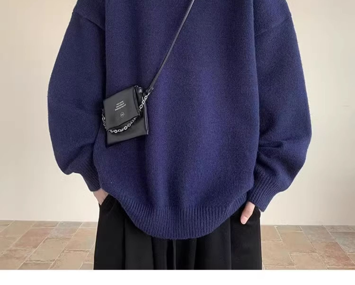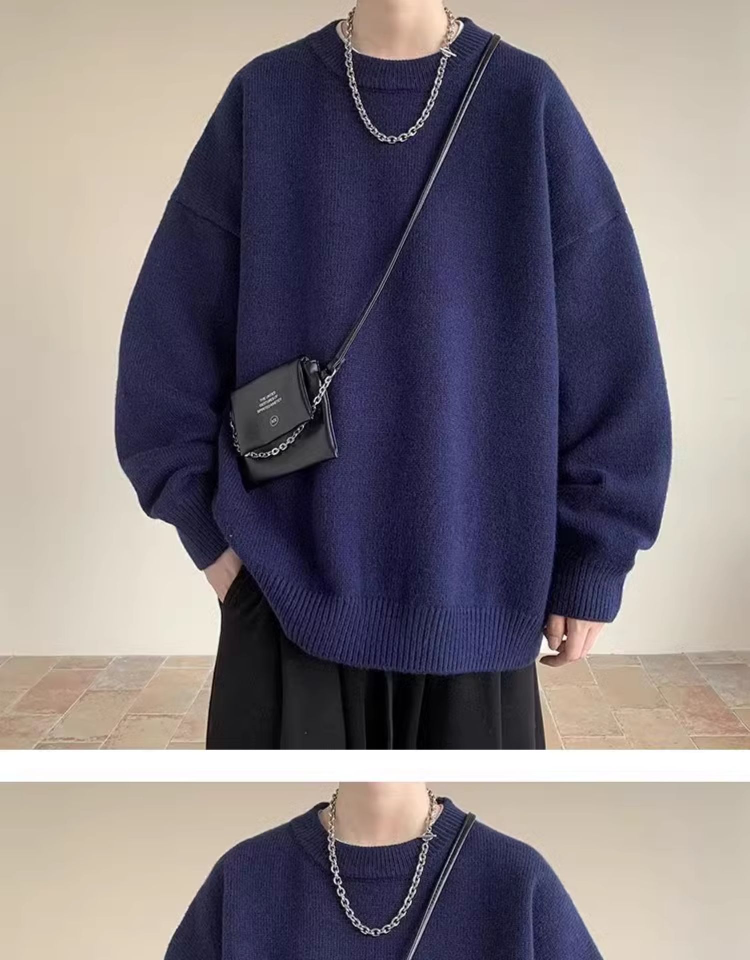 酒紅色潮牌毛衣男冬季慵懶風高級感純色內搭針織衫本命年新年衣服