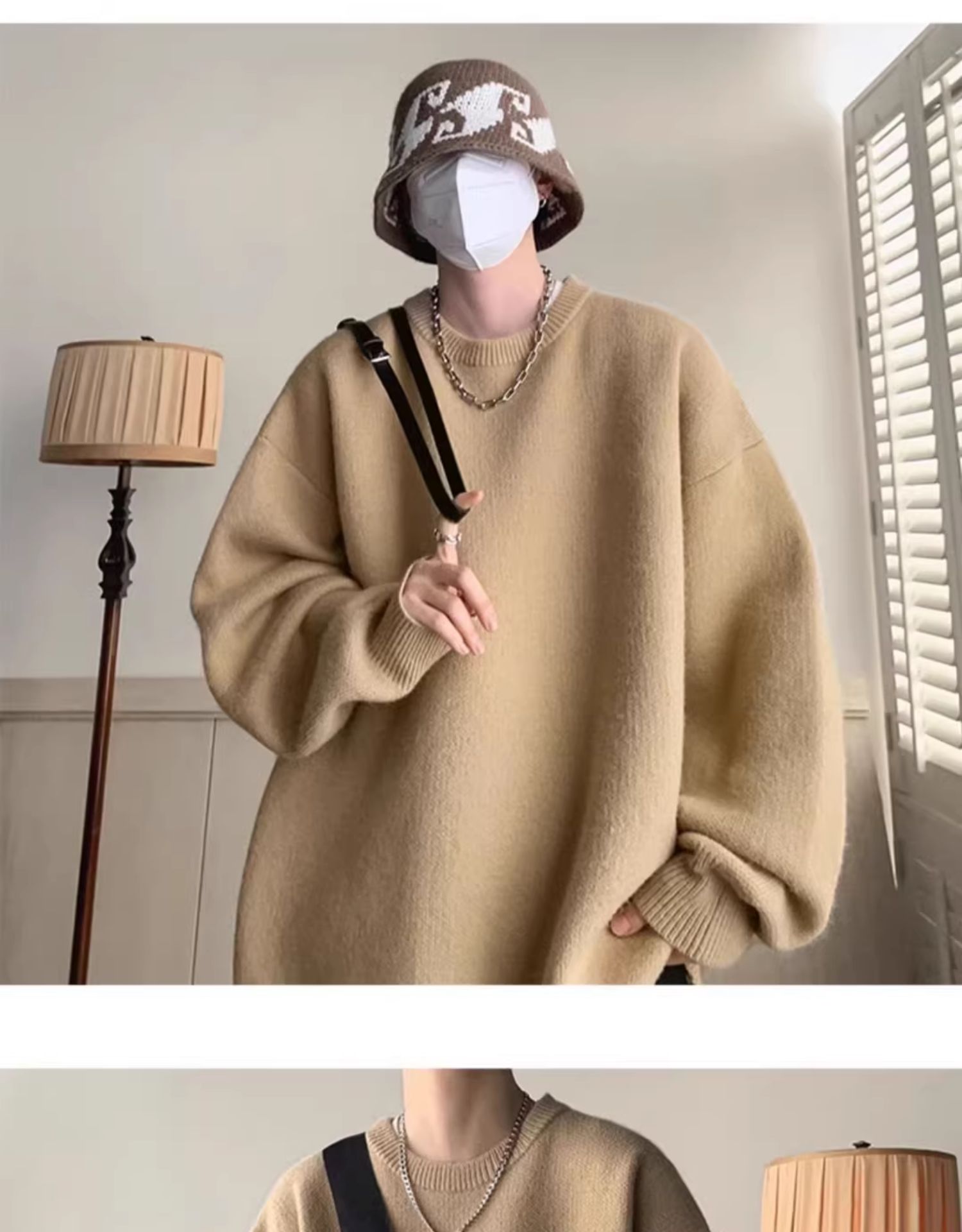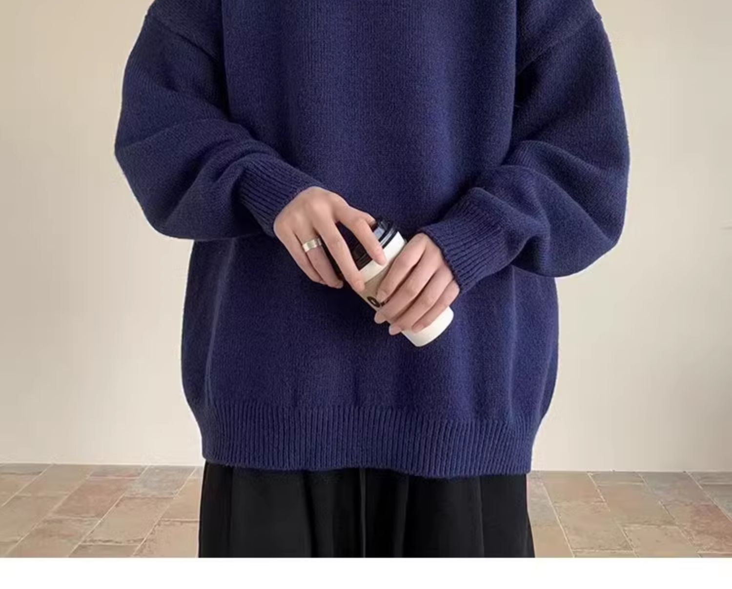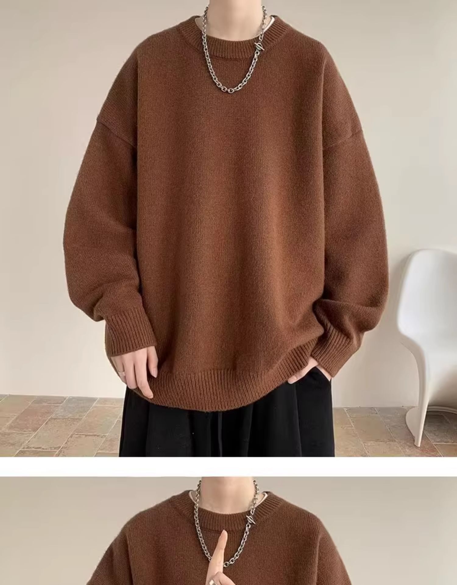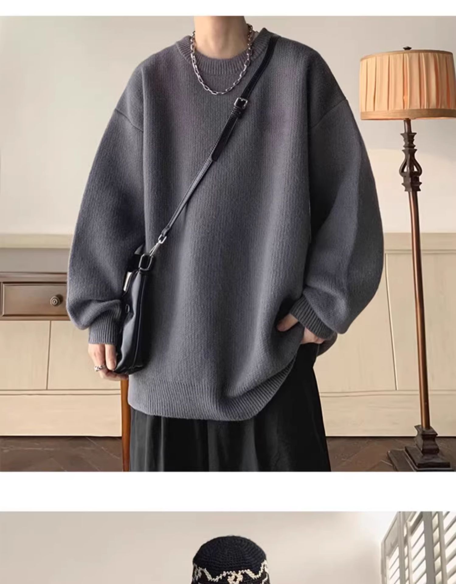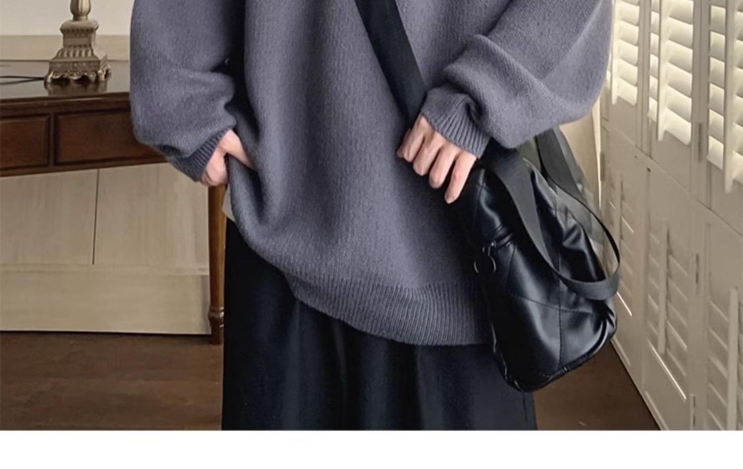 酒紅色潮牌毛衣男冬季慵懶風高級感純色內搭針織衫本命年新年衣服