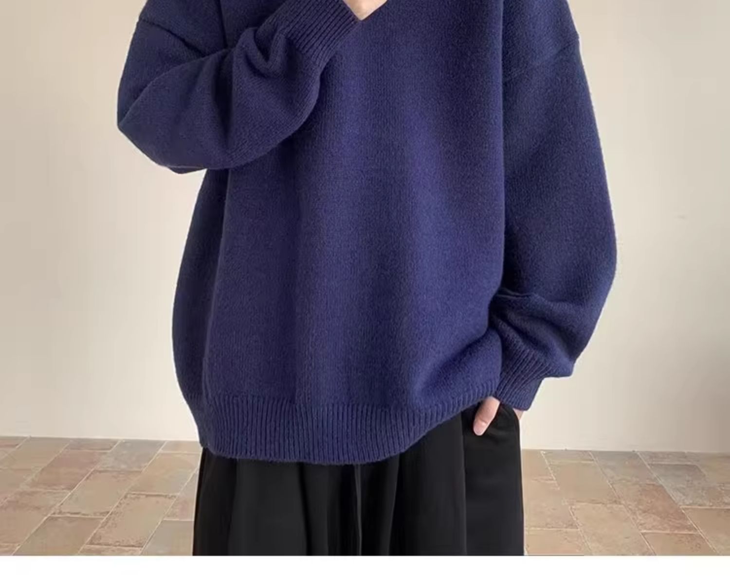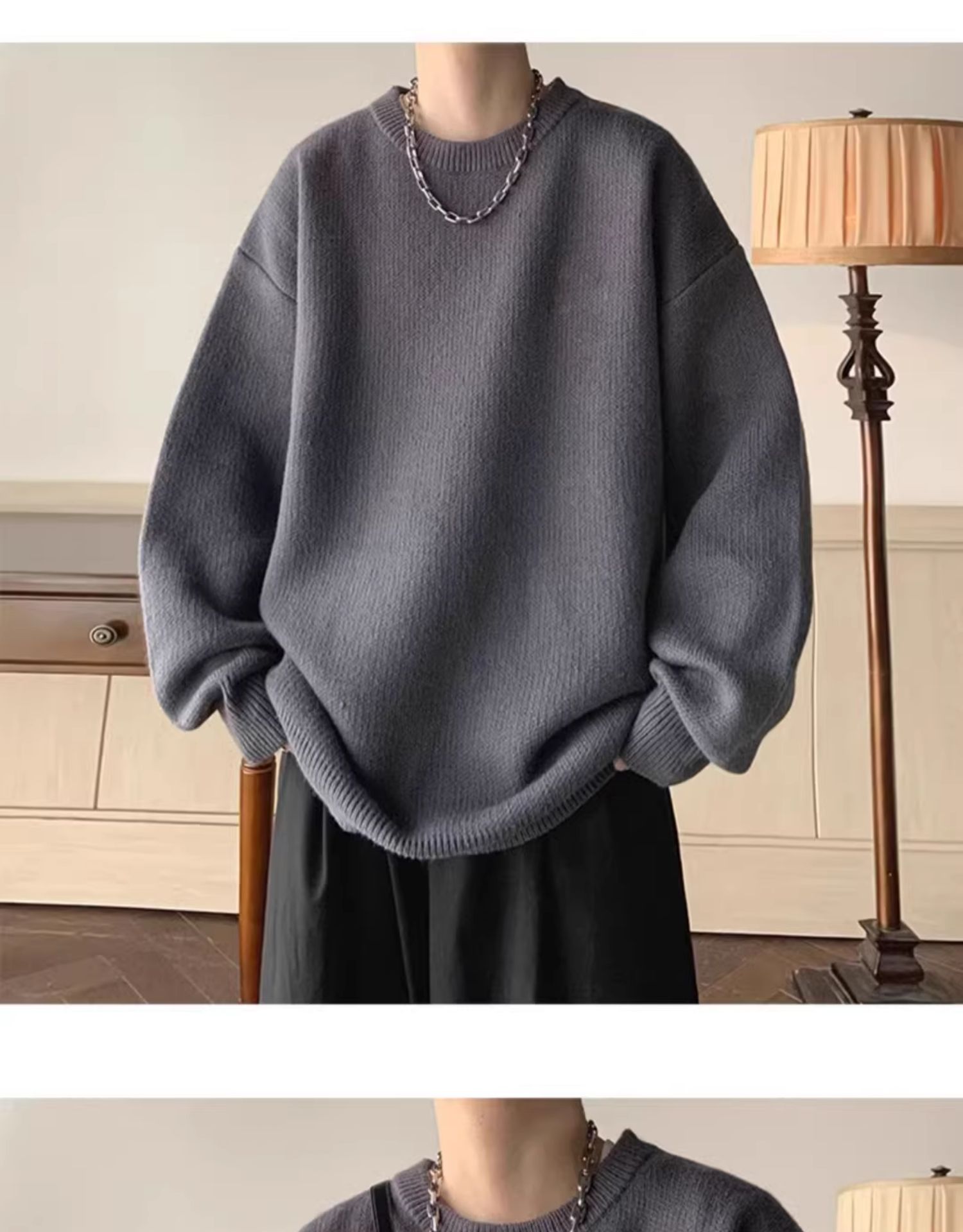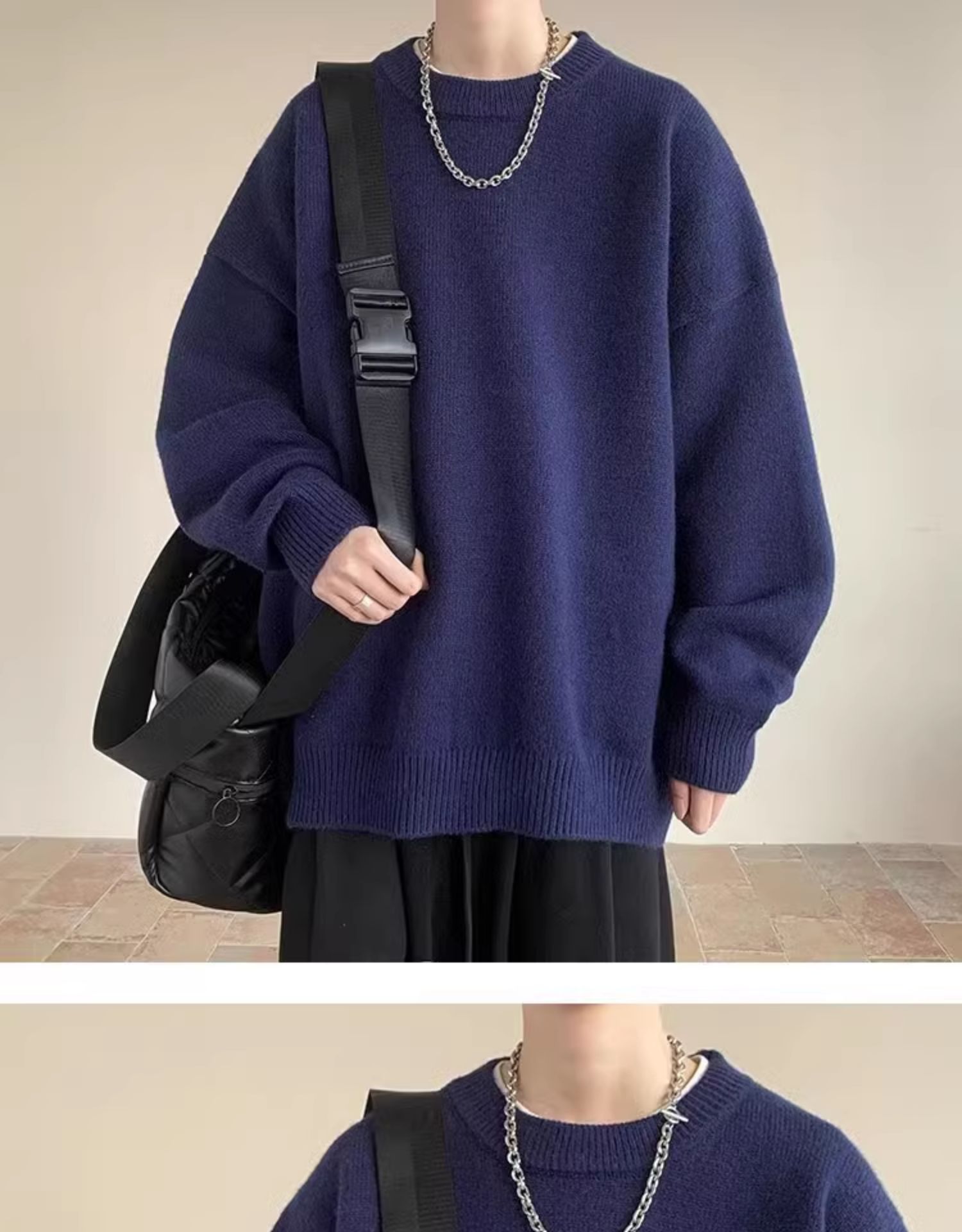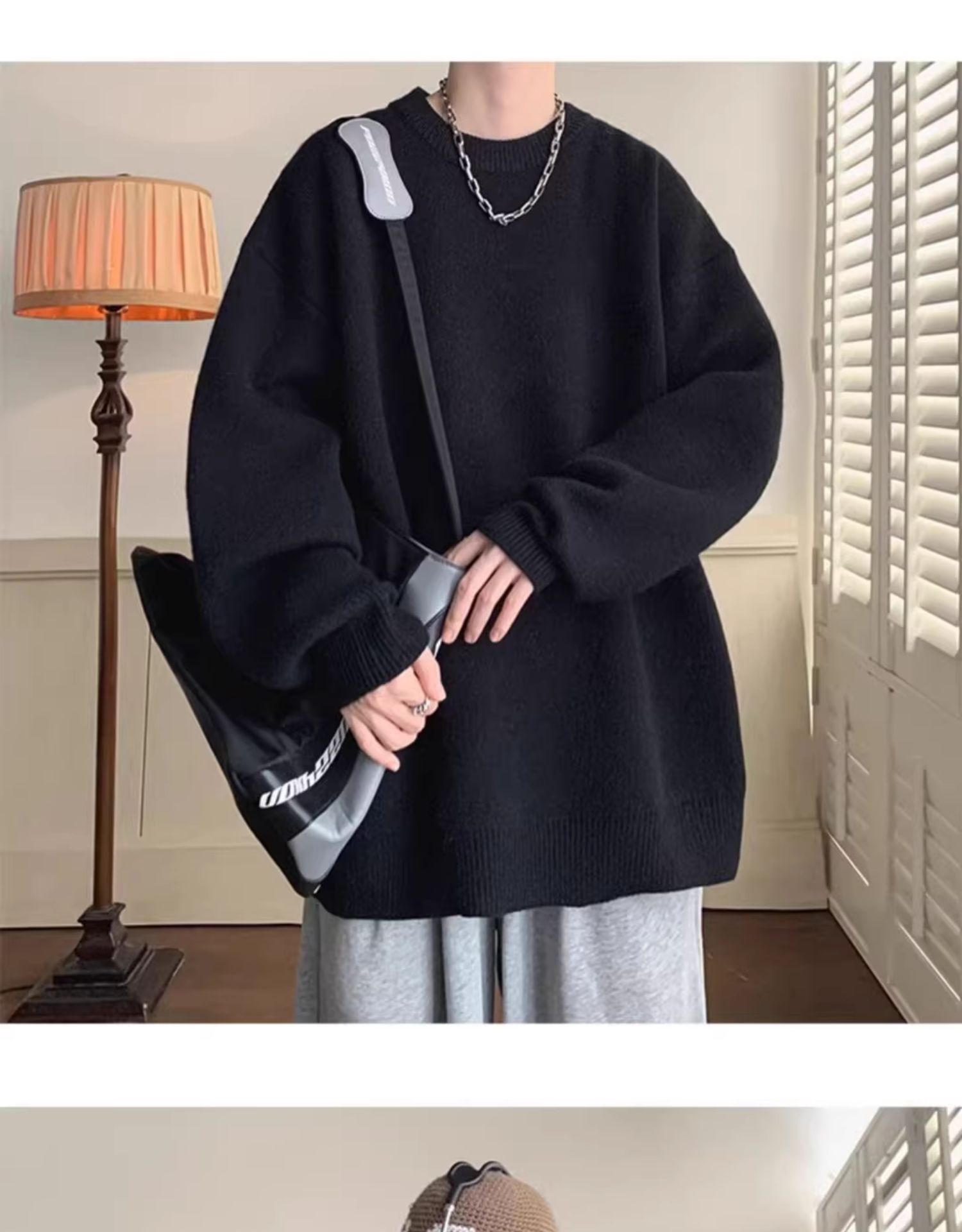 酒紅色潮牌毛衣男冬季慵懶風高級感純色內搭針織衫本命年新年衣服