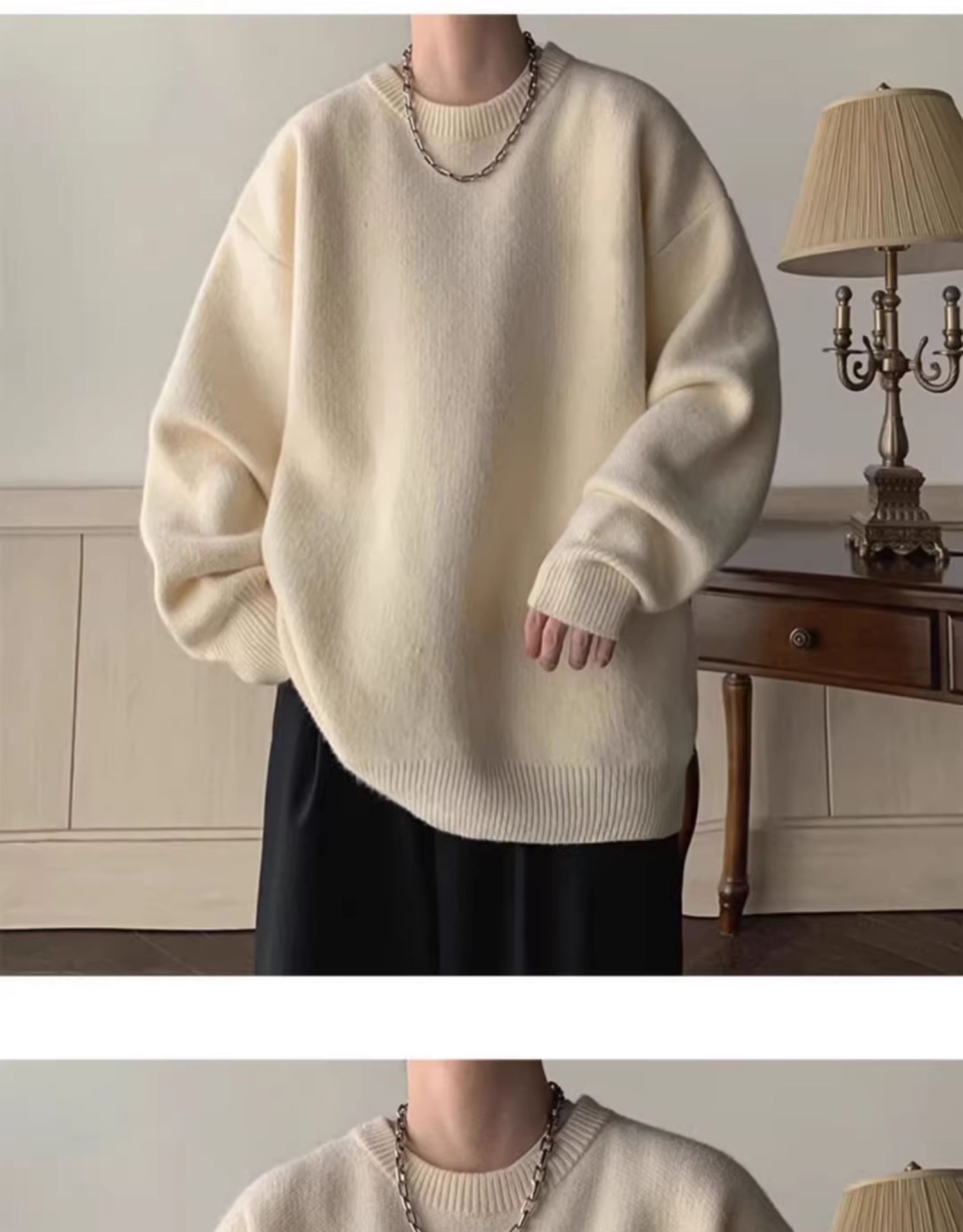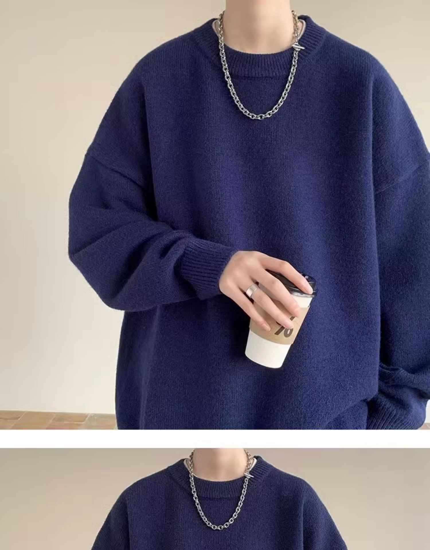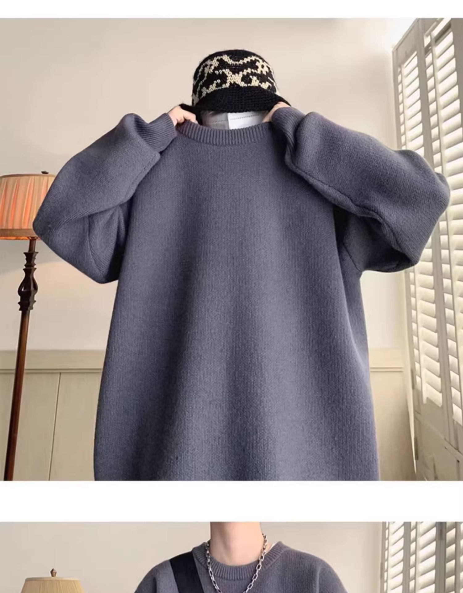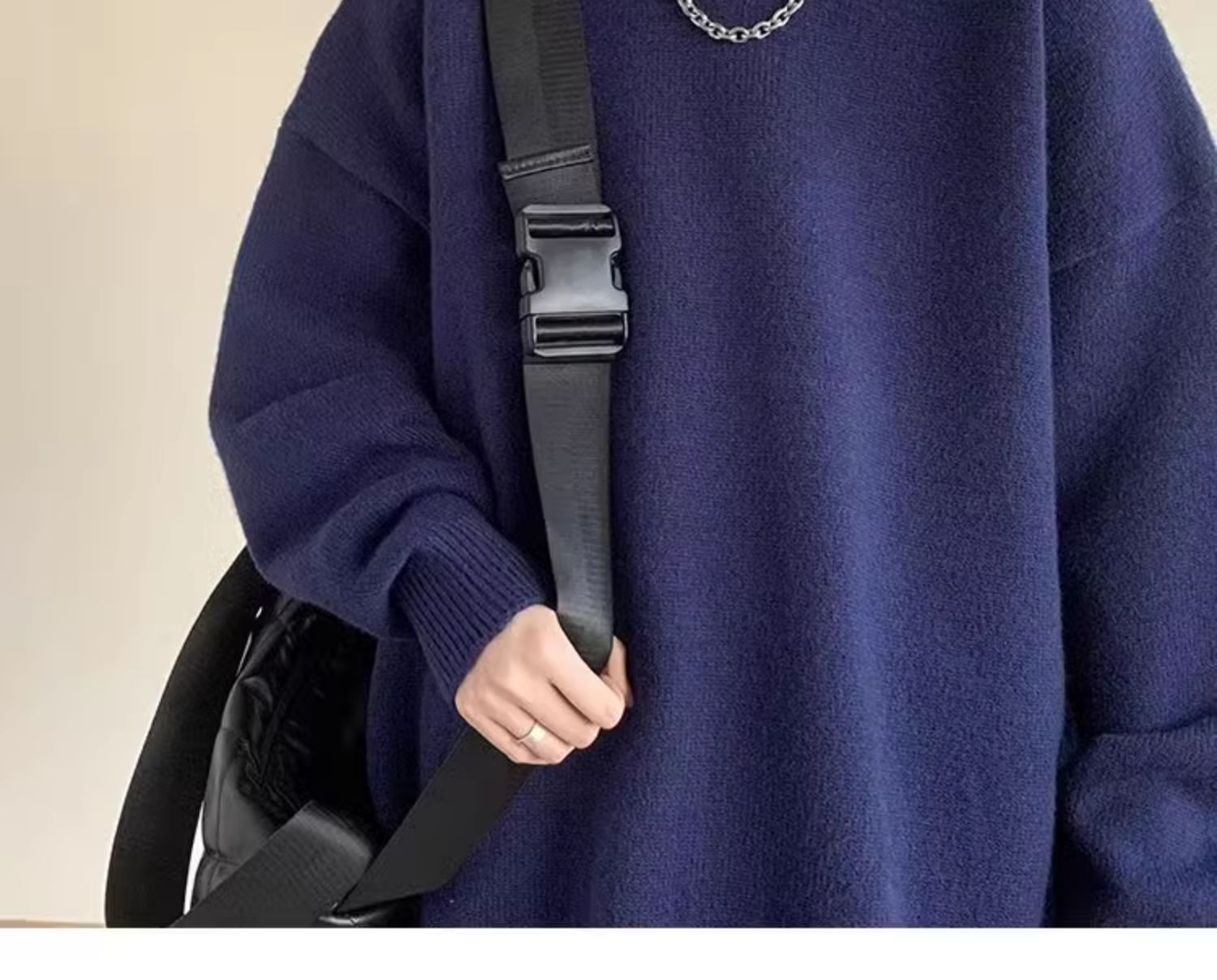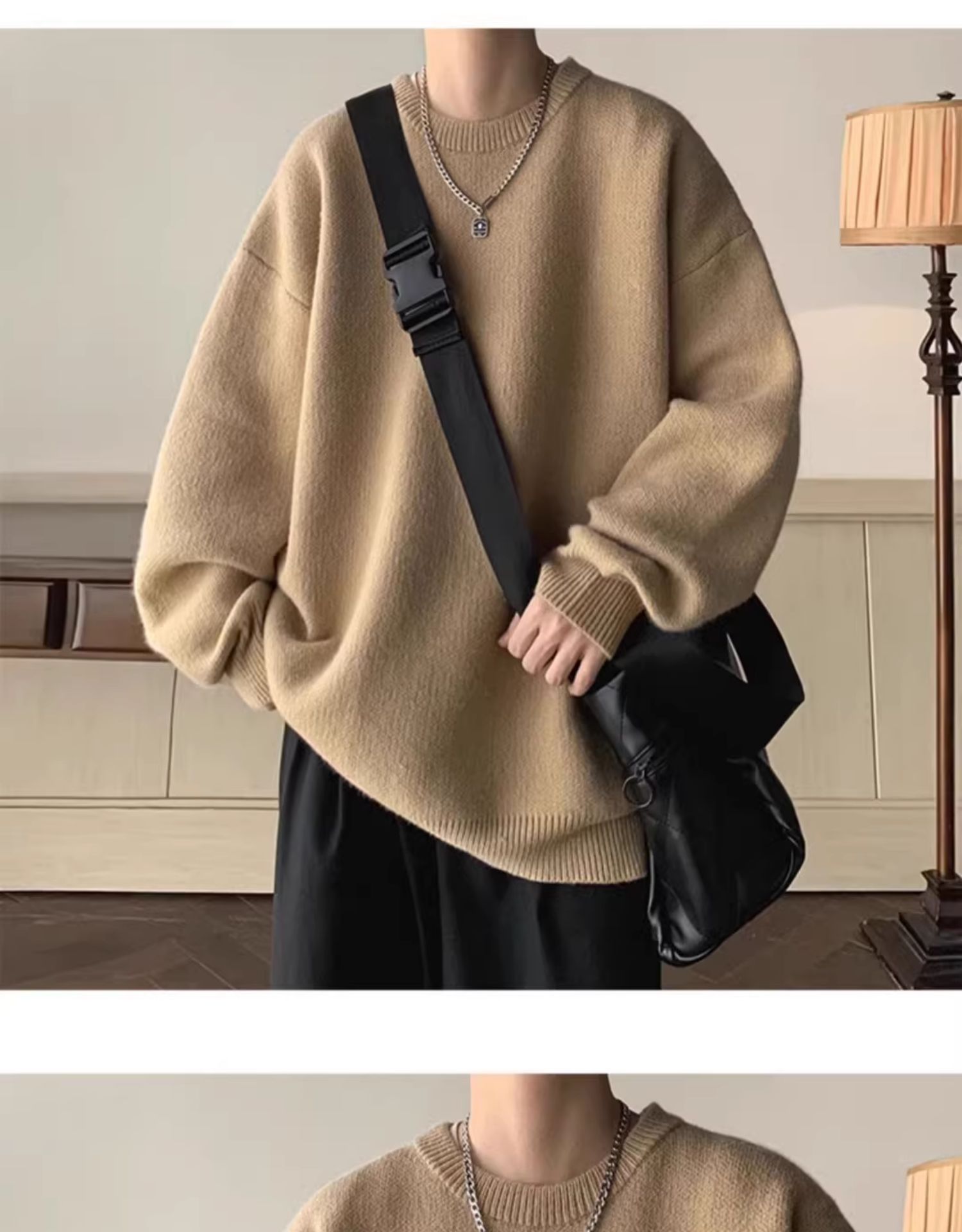 酒紅色潮牌毛衣男冬季慵懶風高級感純色內搭針織衫本命年新年衣服