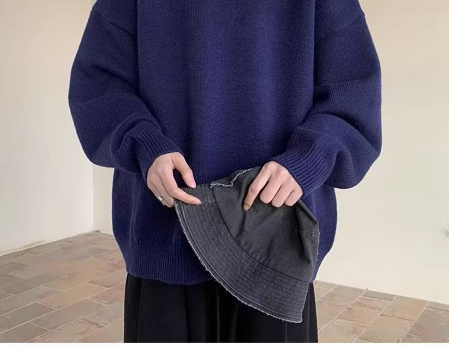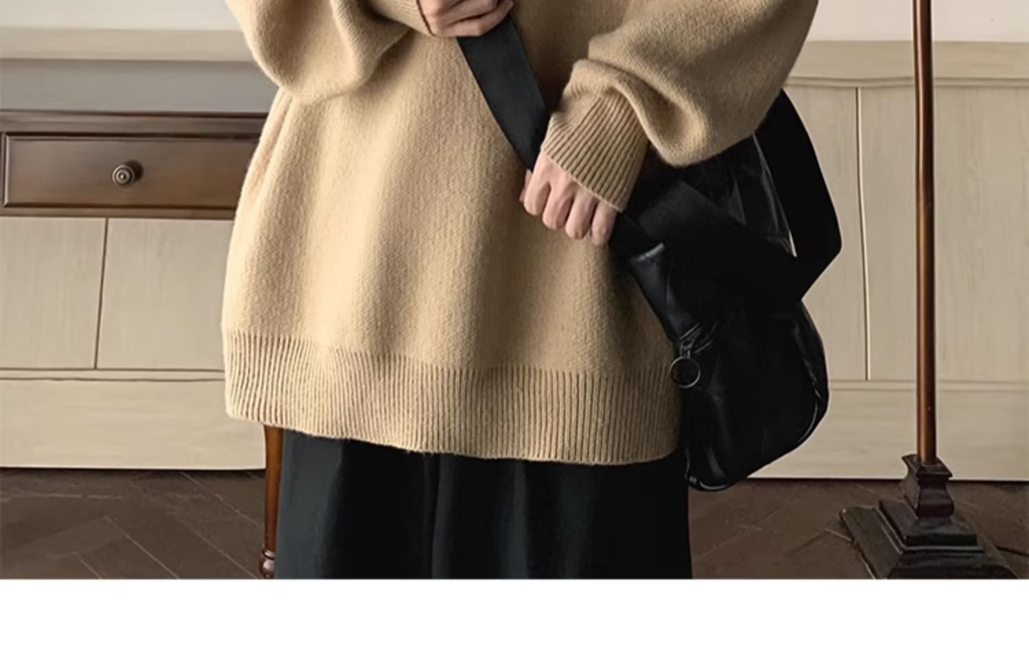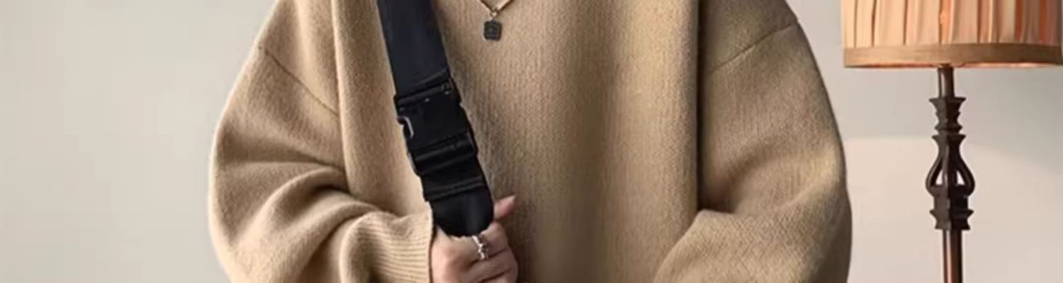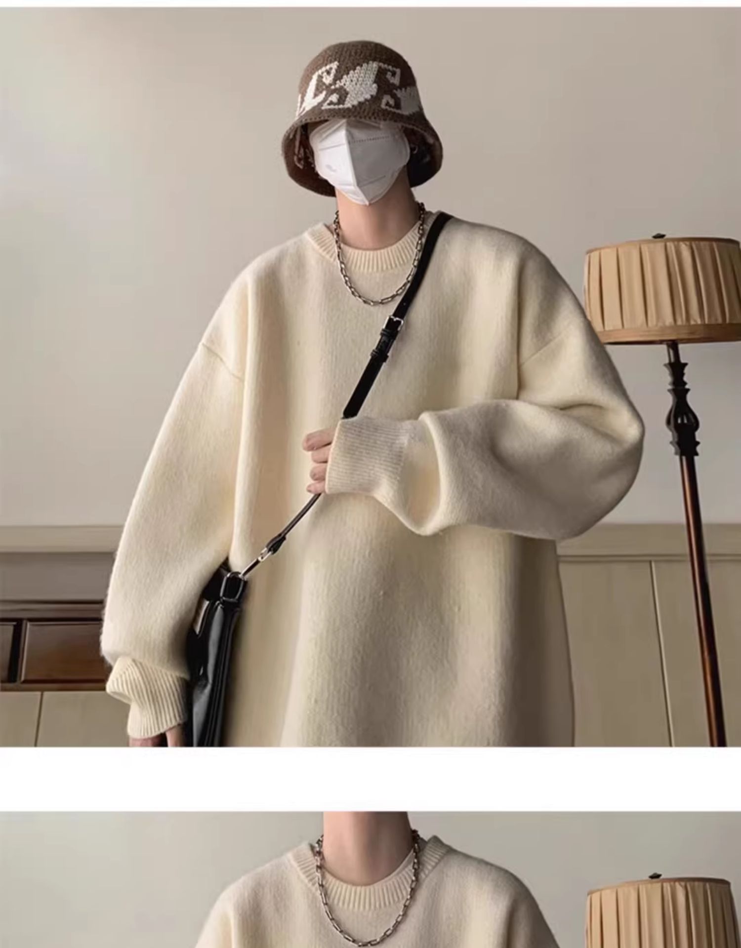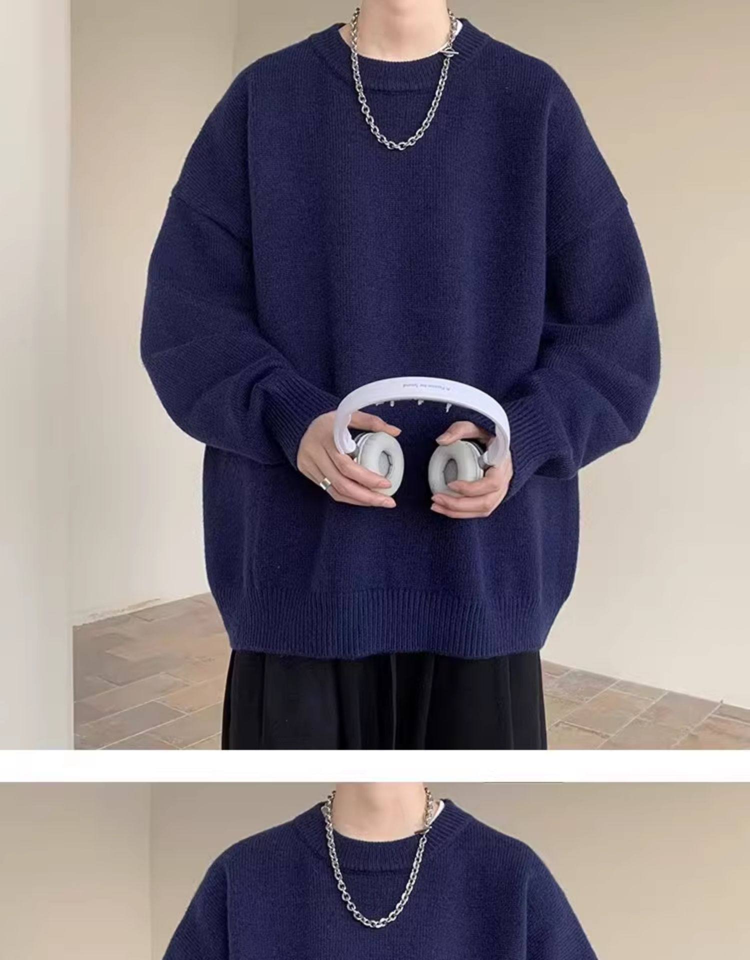 酒紅色潮牌毛衣男冬季慵懶風高級感純色內搭針織衫本命年新年衣服