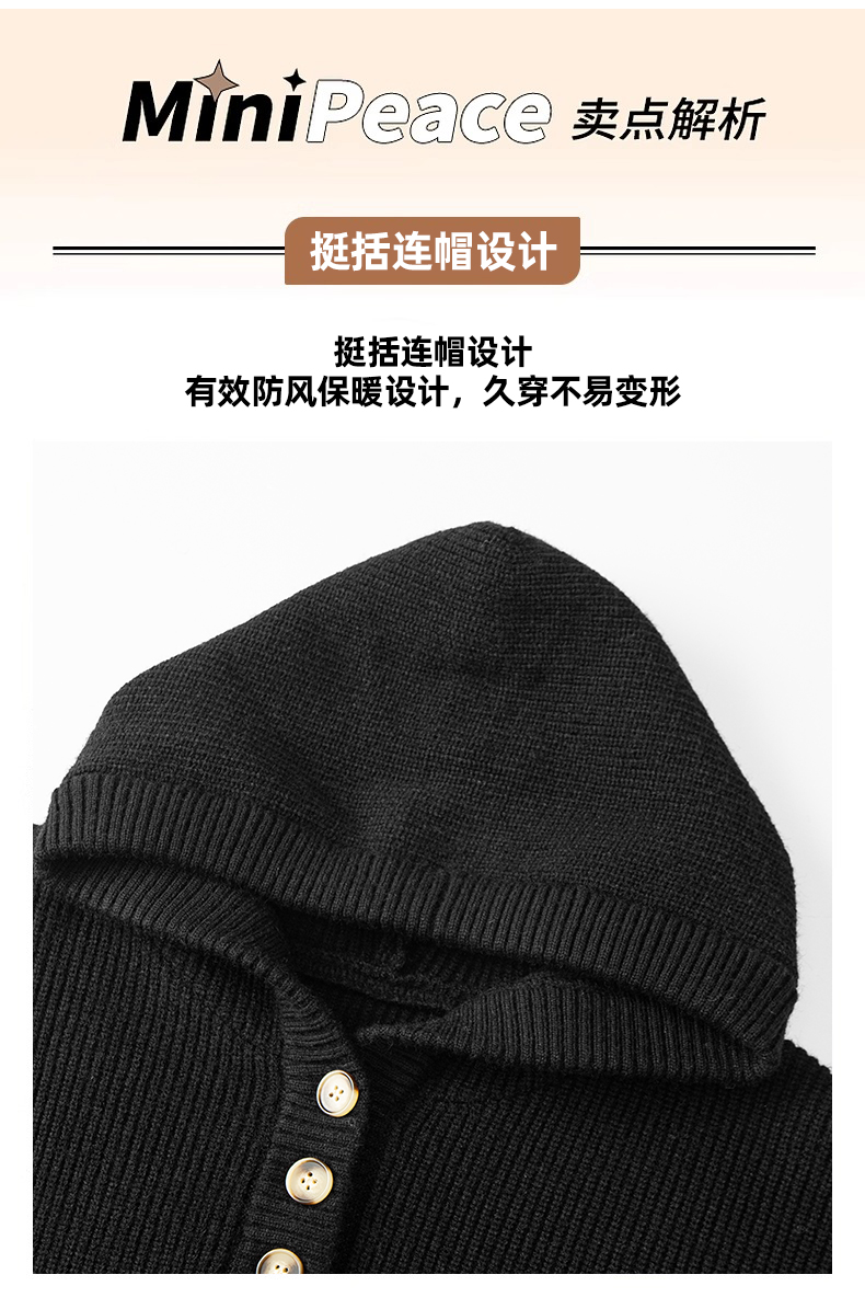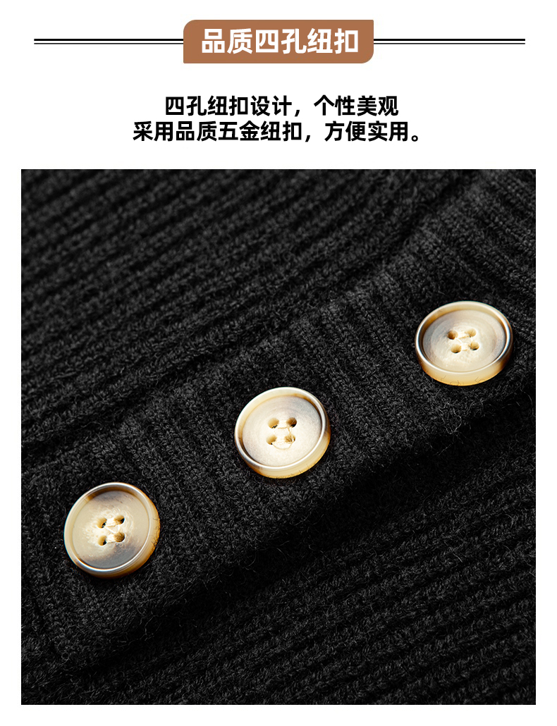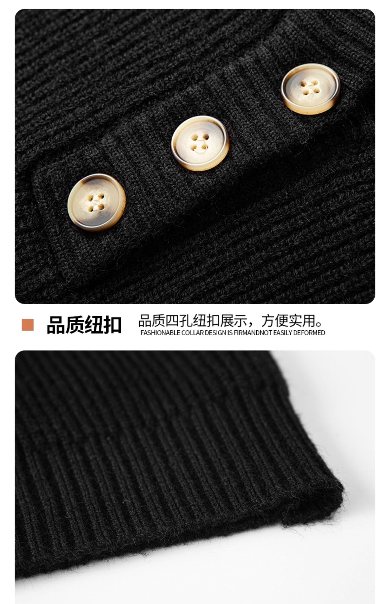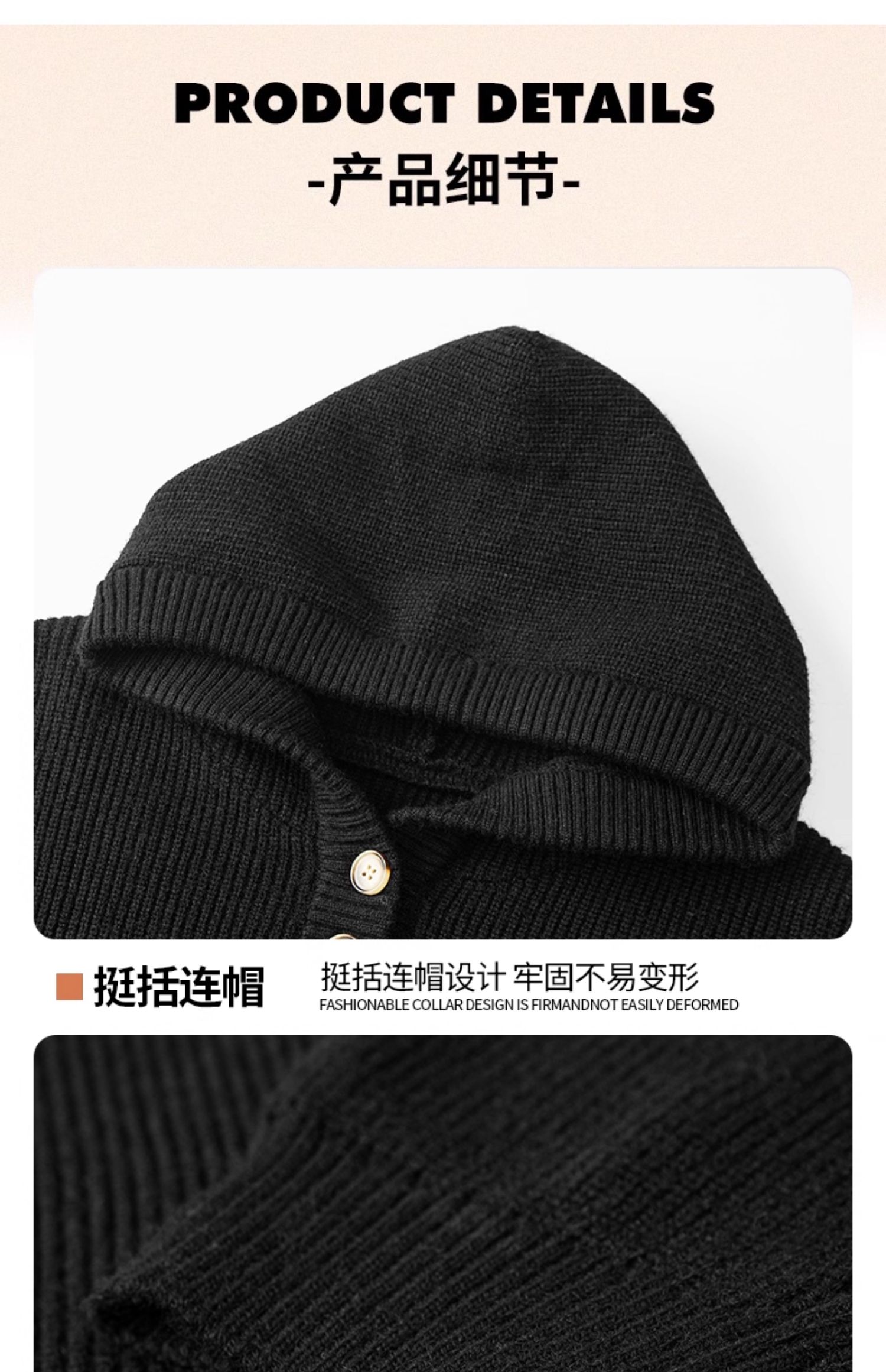 WASSUP ISSUE美式亨利領連帽毛衣男款春秋寬松高級感針織衫外套男