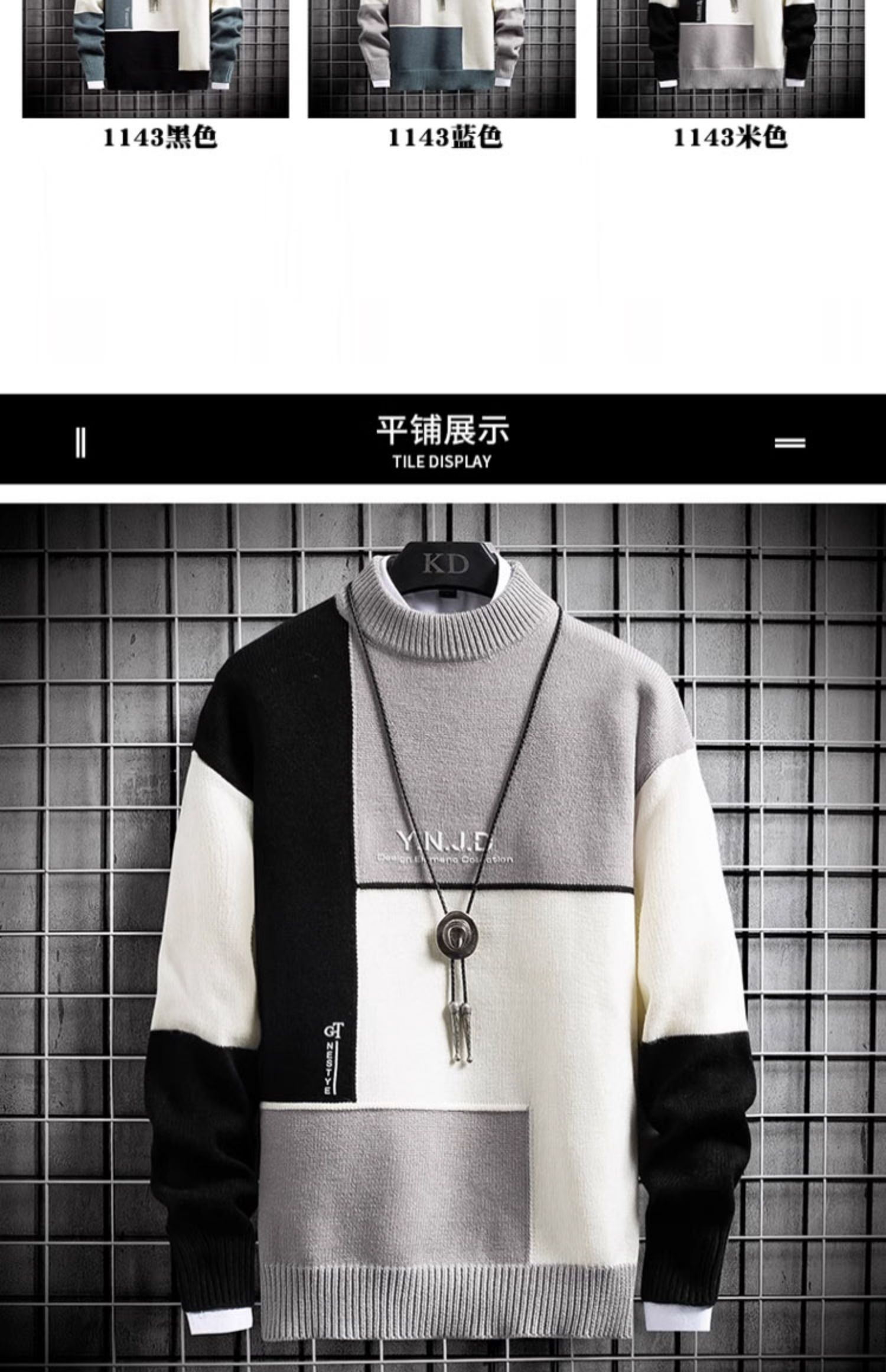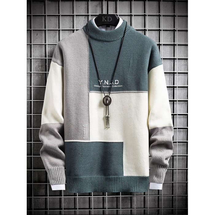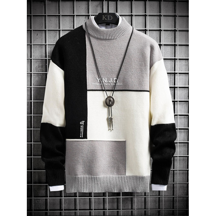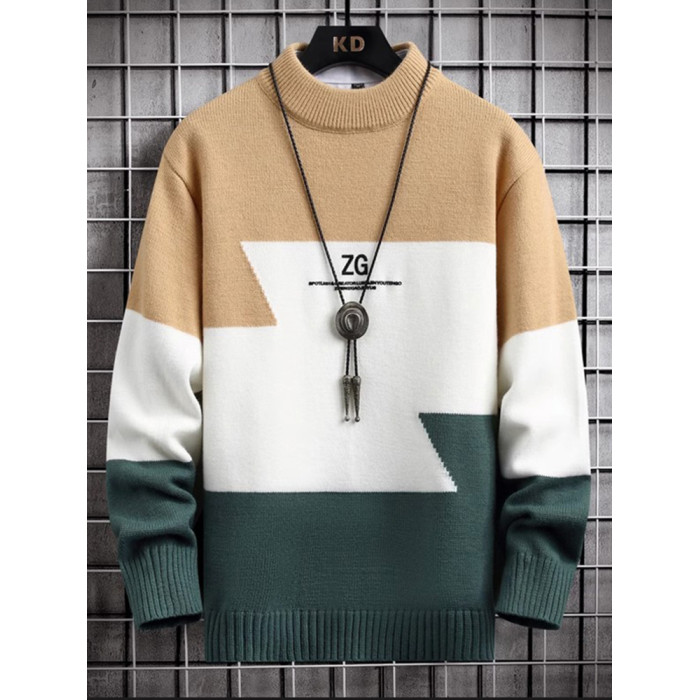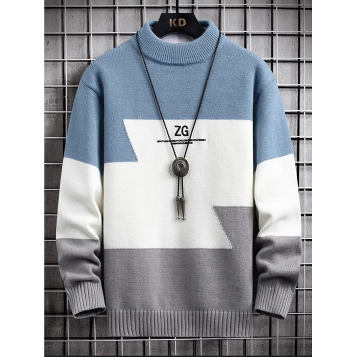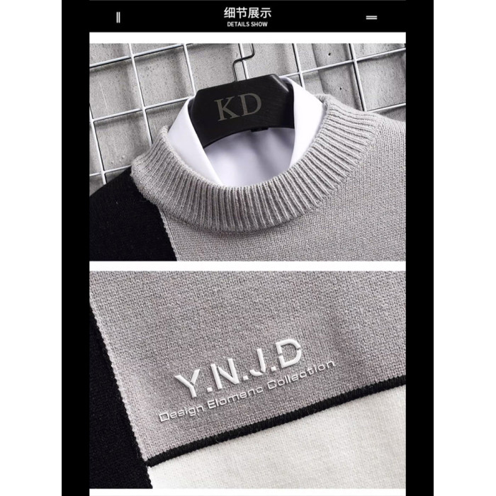 半高領毛衣男款秋冬季加絨加厚拼色針織衫寬松青少年保暖線衣服潮
