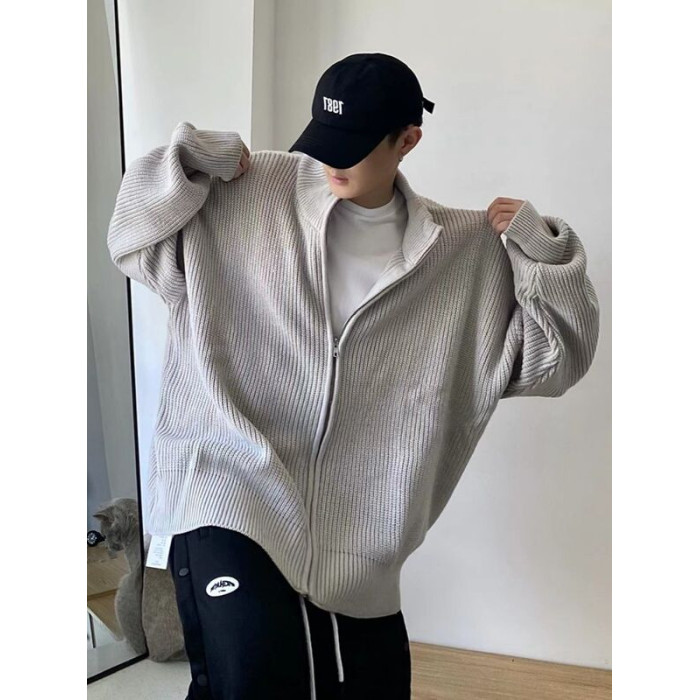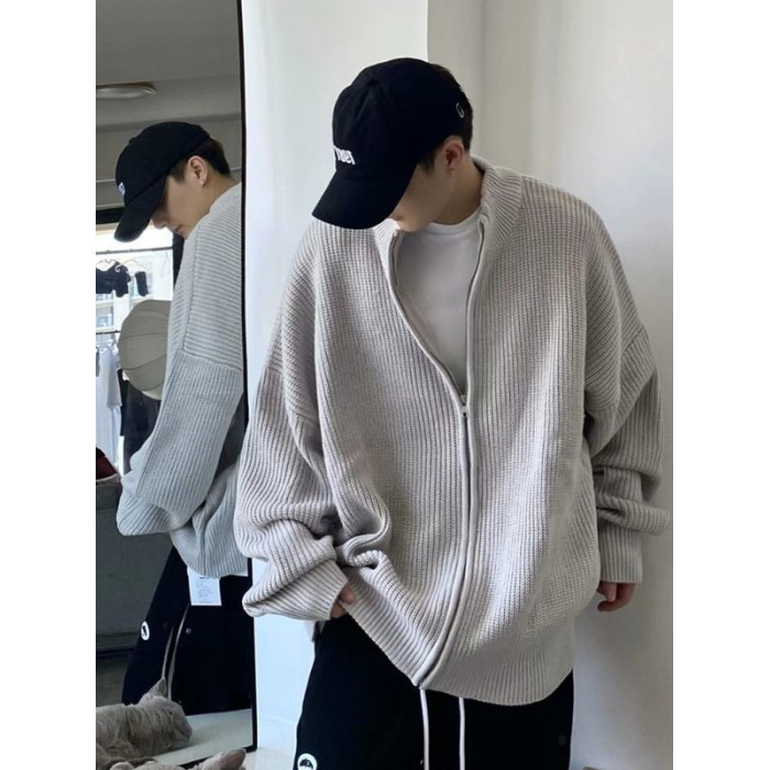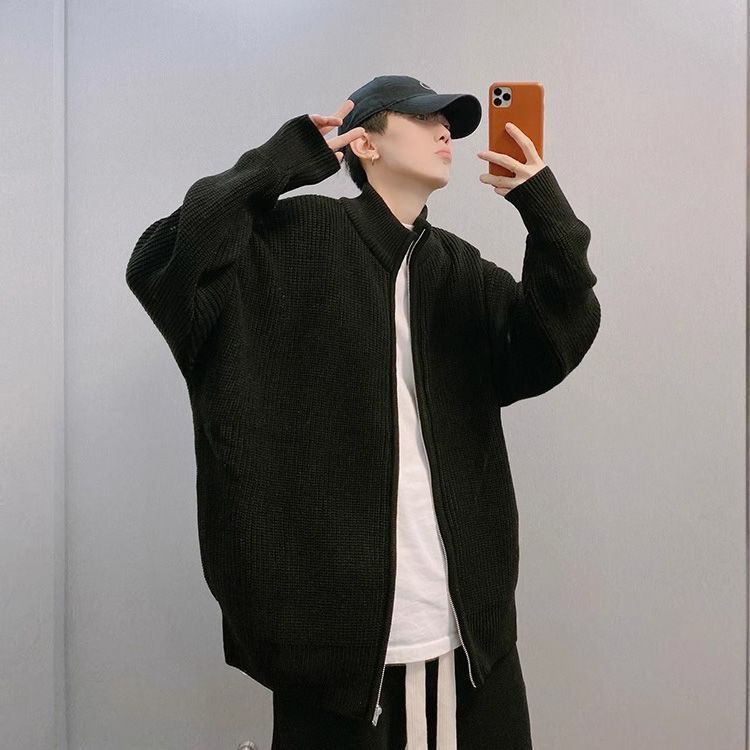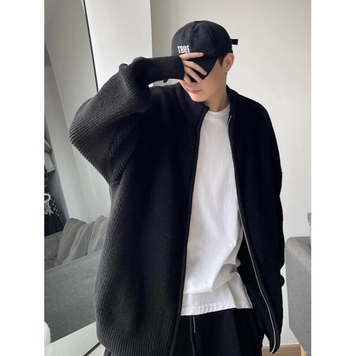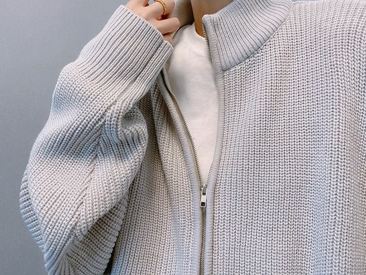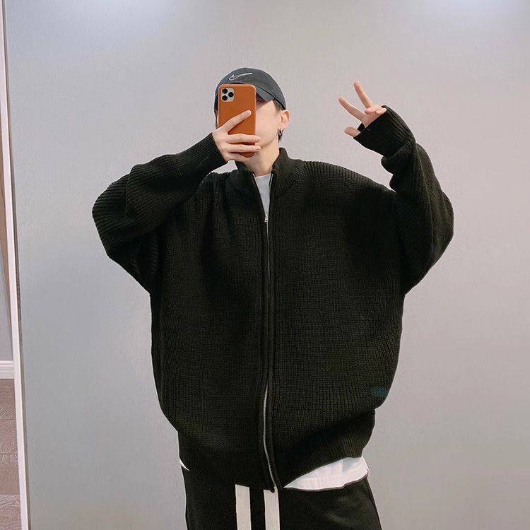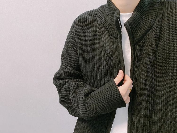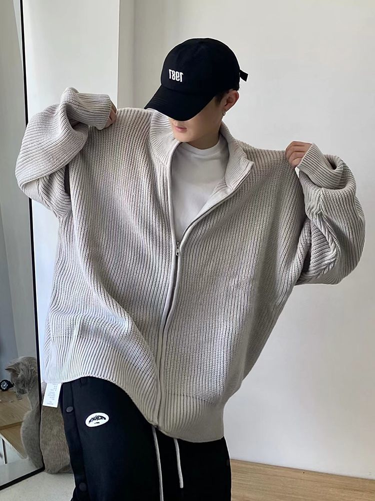 特大碼300斤立領慵懶風開衫針織外套男裝秋冬季港風復古純色毛衣2