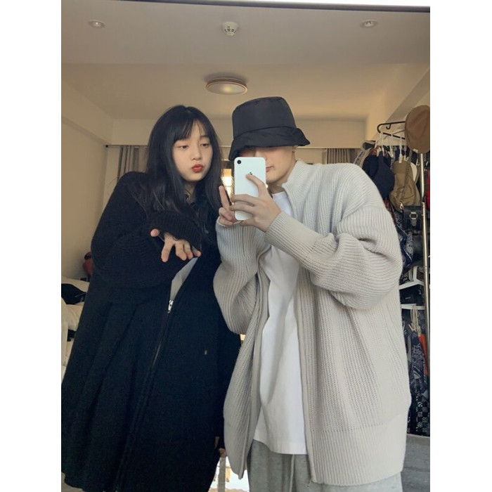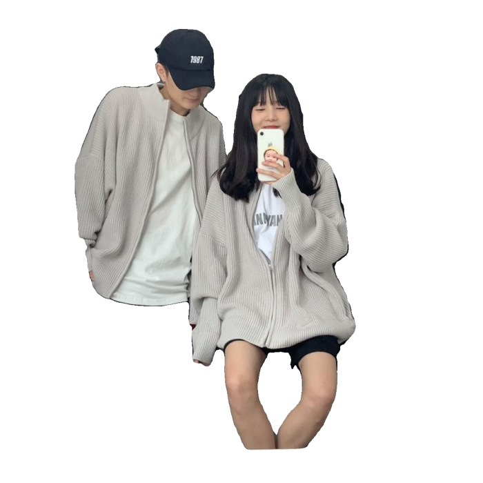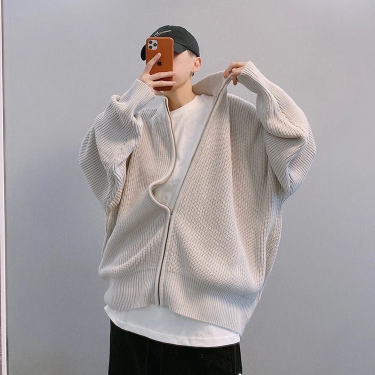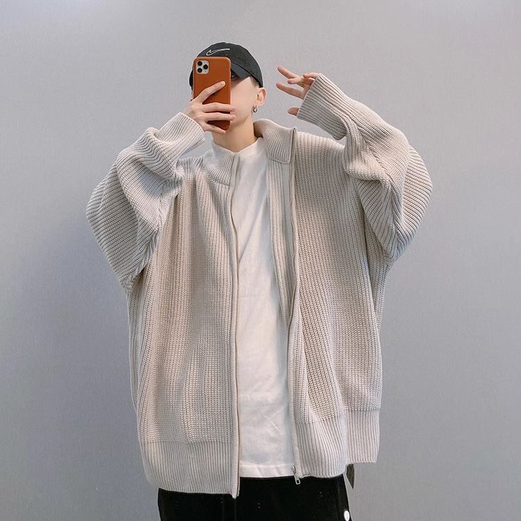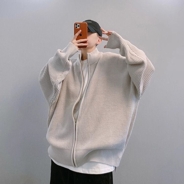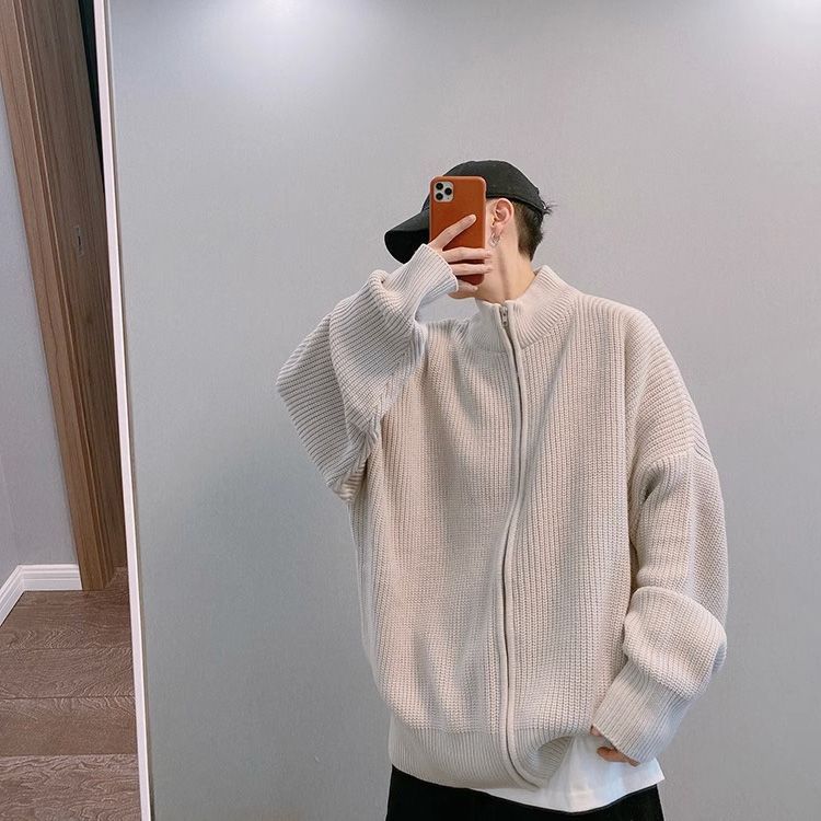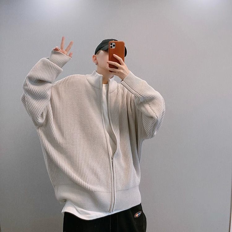 特大碼300斤立領慵懶風開衫針織外套男裝秋冬季港風復古純色毛衣2