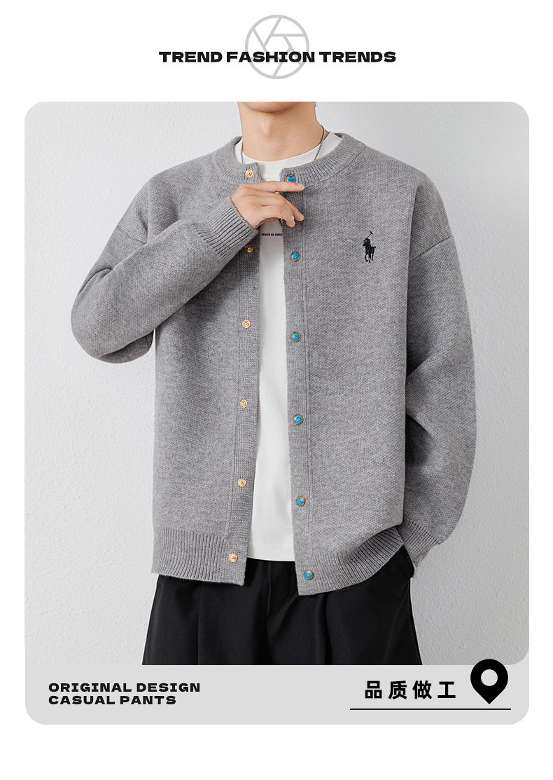 棒球服針織開衫外套男生2025秋冬季新款時尚刺綉毛衣夾克秋裝上衣