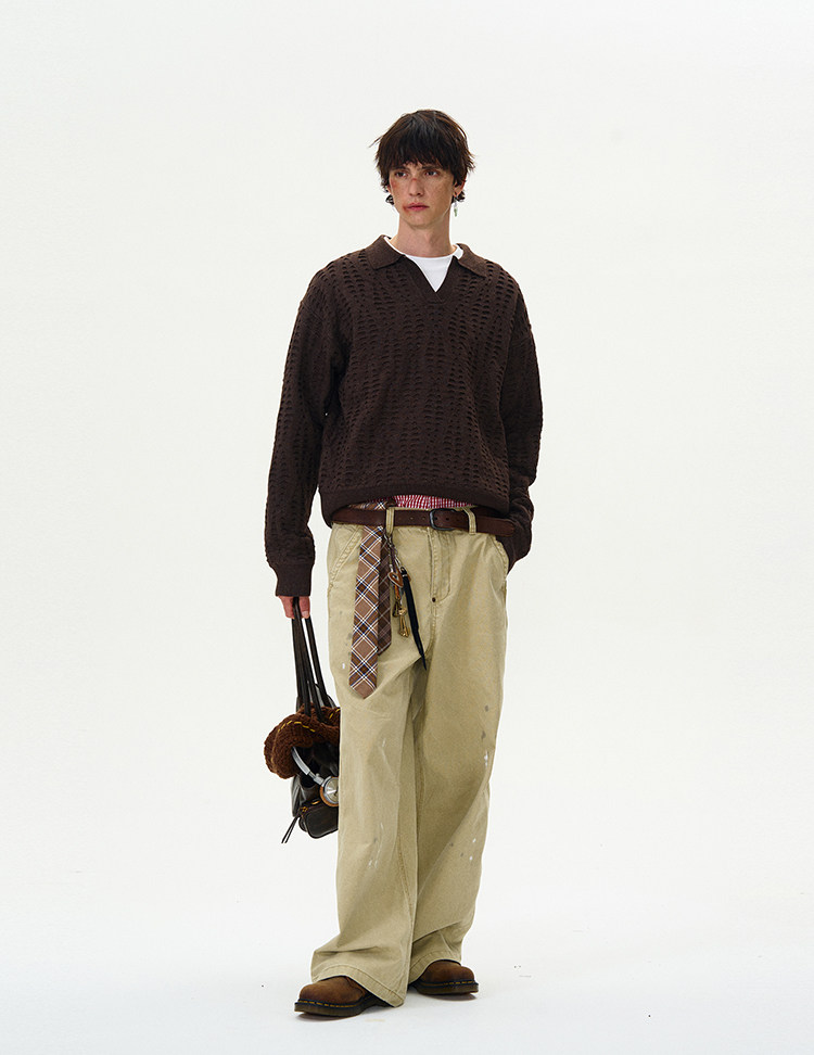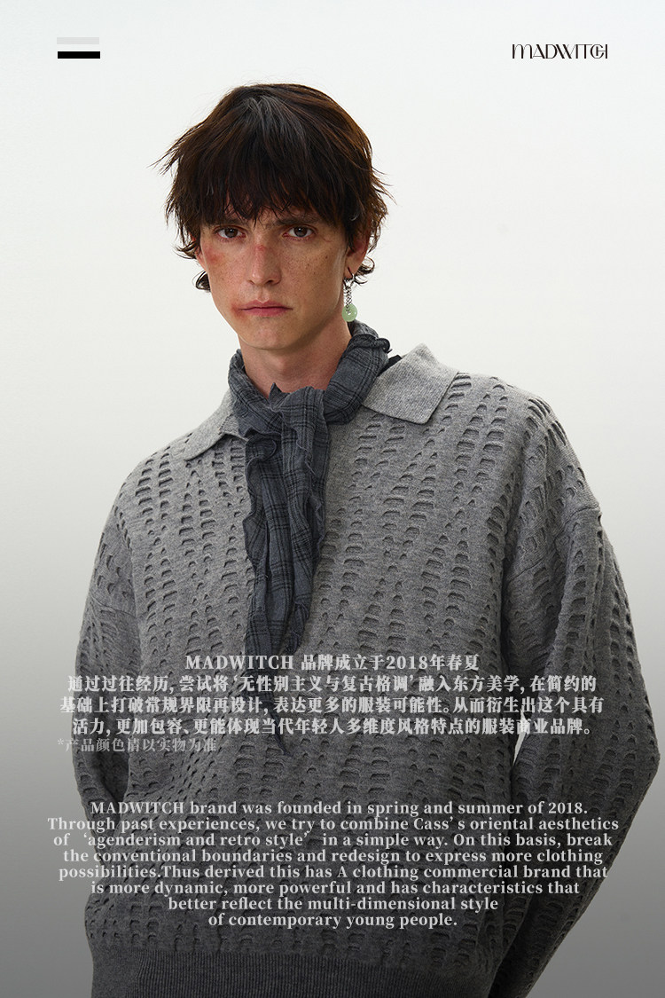 MADWITCH復古高級鏤空破洞針織衫毛衣男女美式vintage老錢風上衣