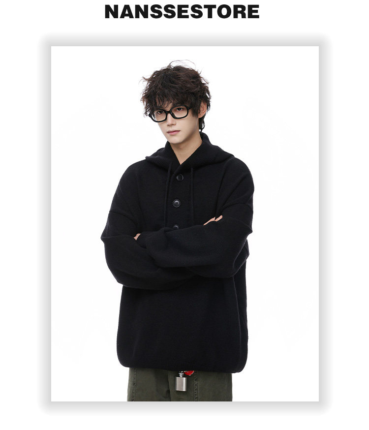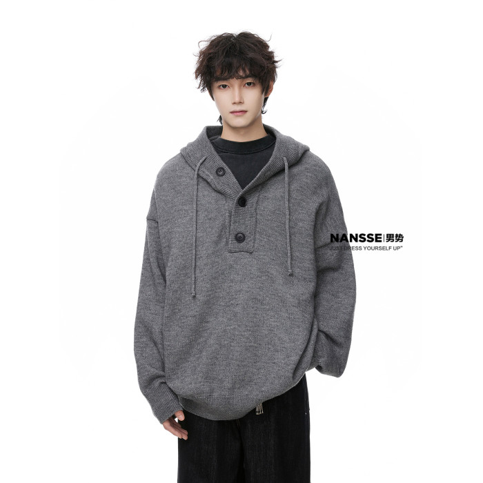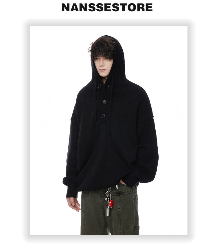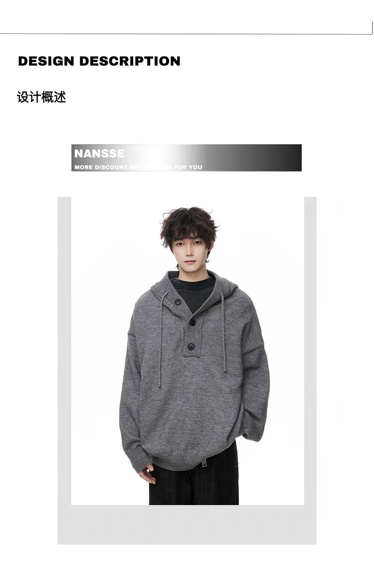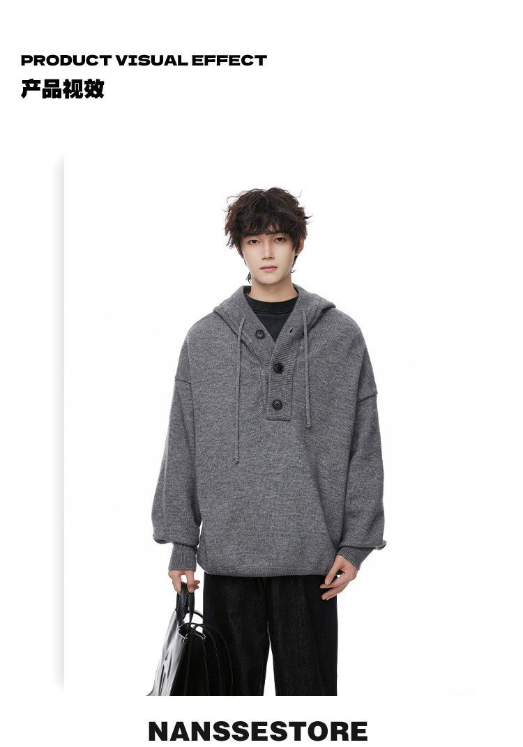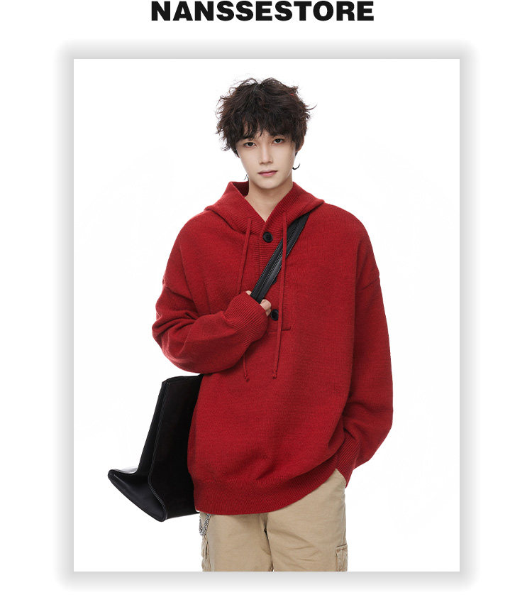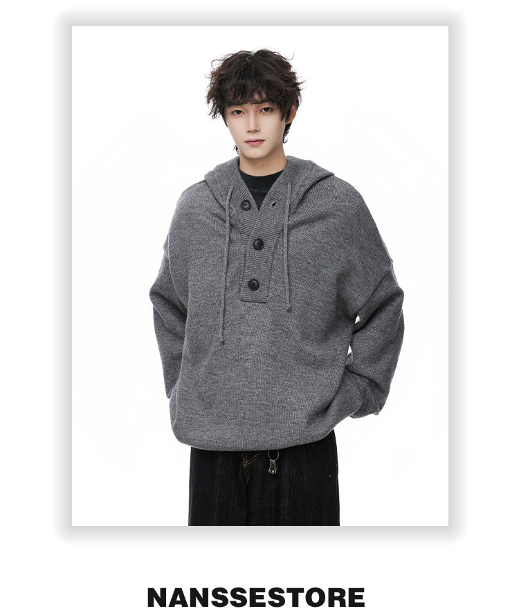 連帽毛衣男款冬季加厚保暖青少年毛線衣慵嬾高級感內搭打底針織衫