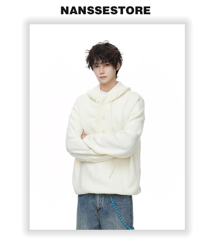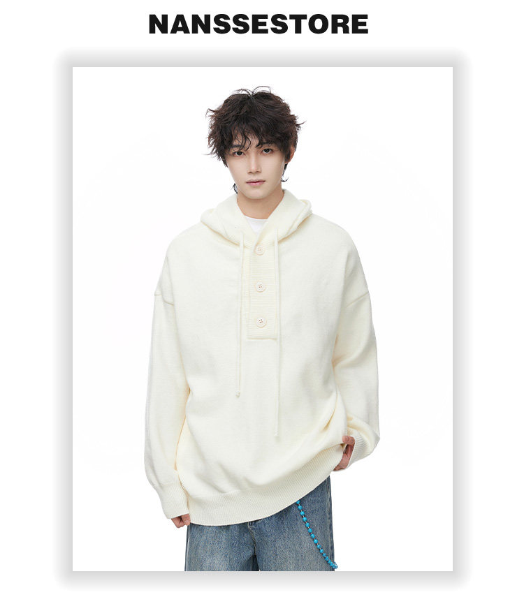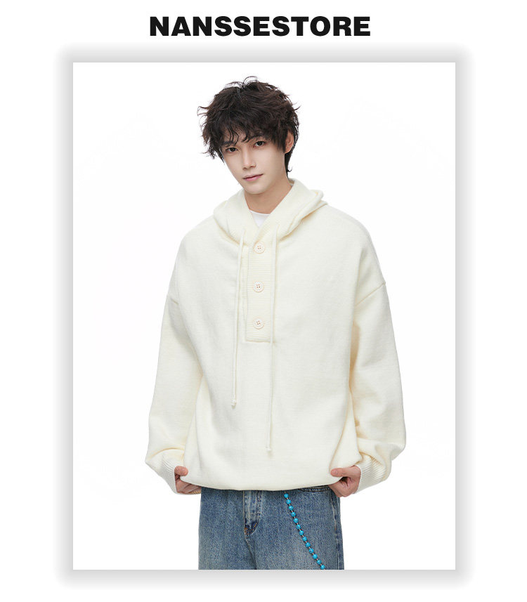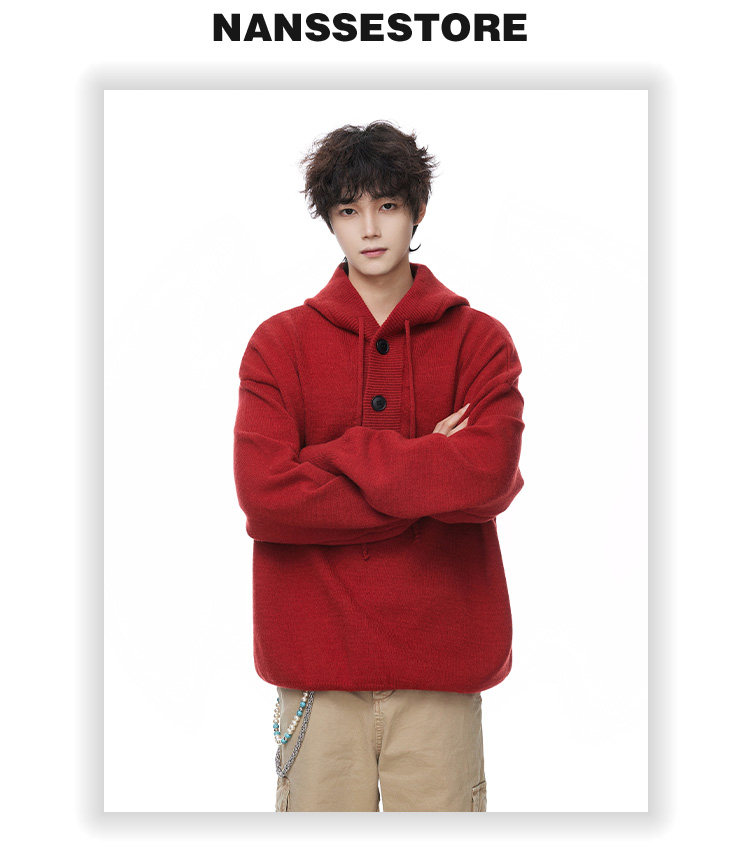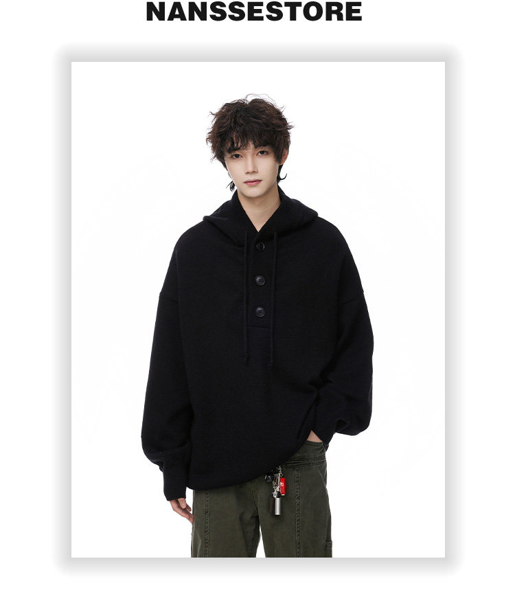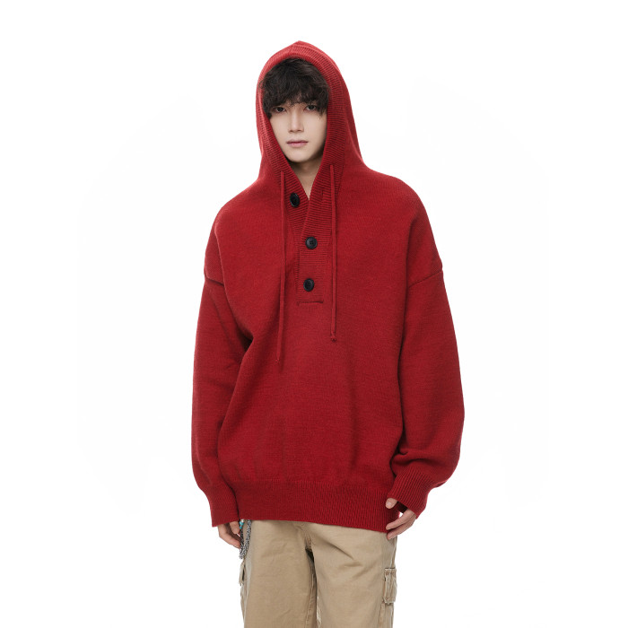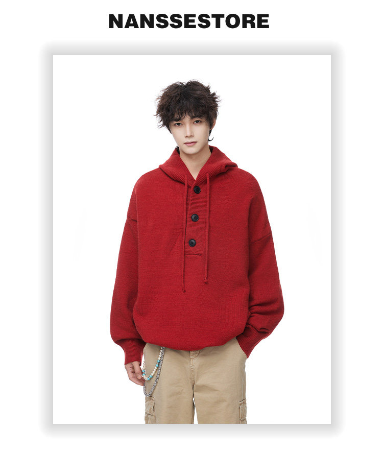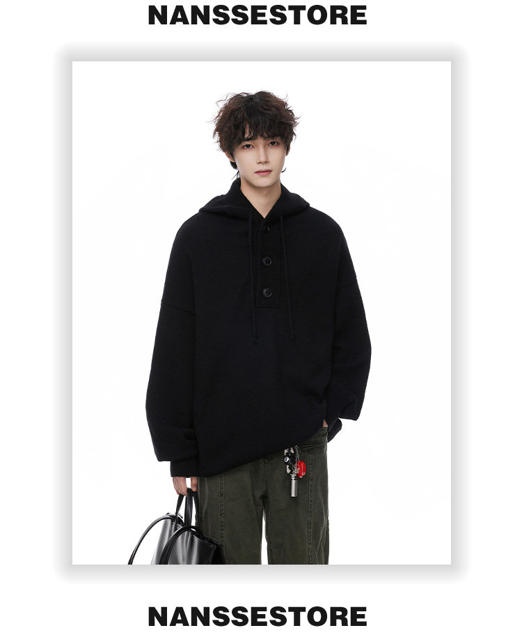 連帽毛衣男款冬季加厚保暖青少年毛線衣慵嬾高級感內搭打底針織衫