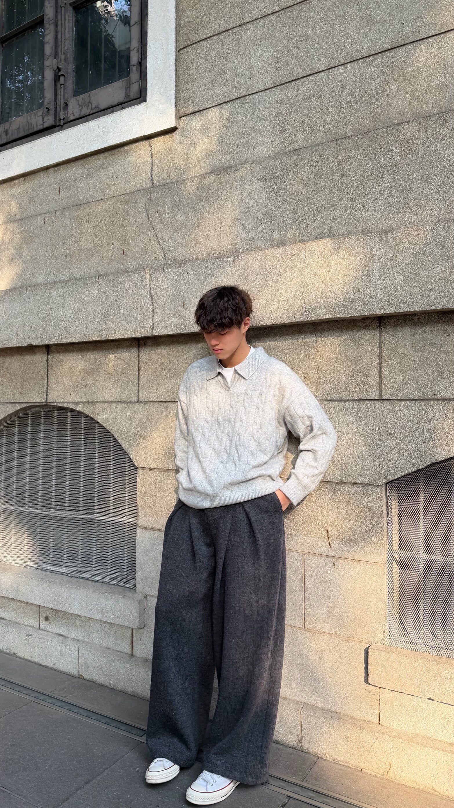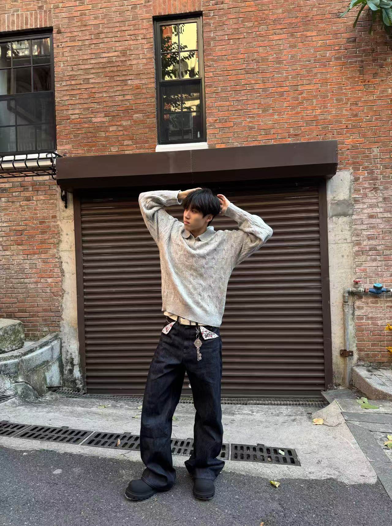 Clear Mist 韓版簡約繙領混紡羊毛麻花毛衣cleanfit情侶保暖秋冬