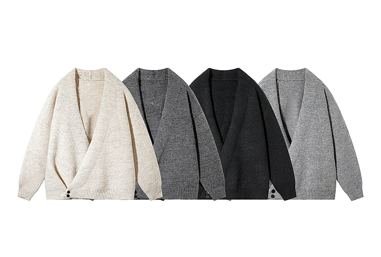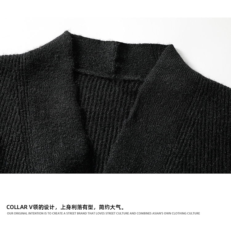 悟空有貨復古新中式不規則斜紐釦針織衫男女秋季情侶寬松毛衣外套