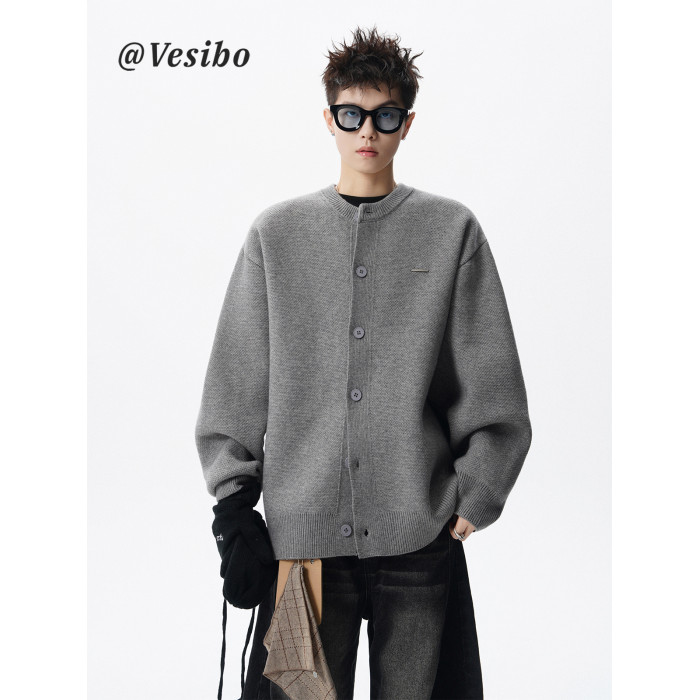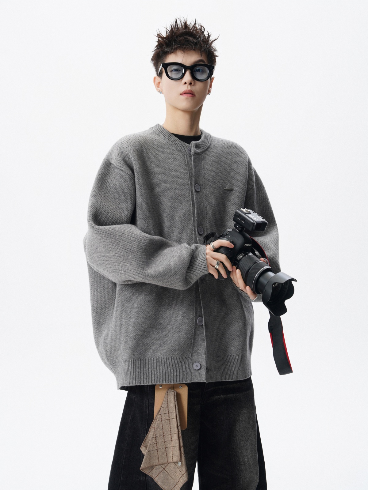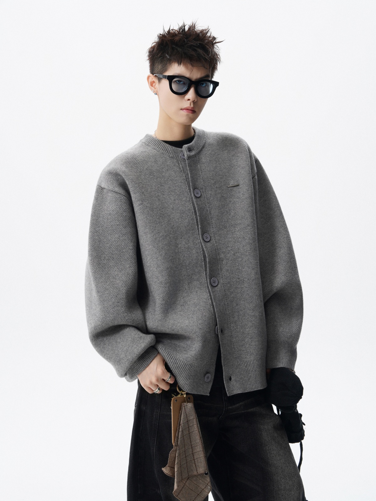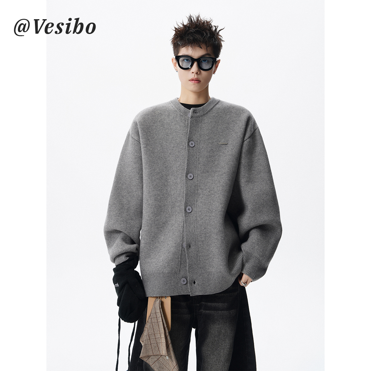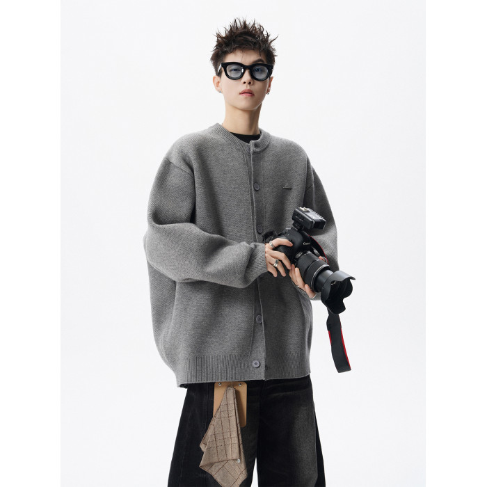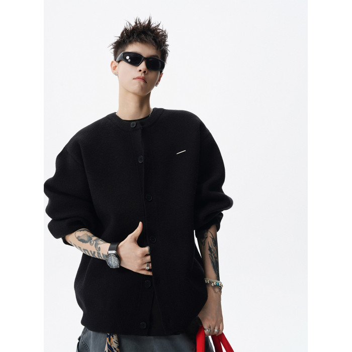 潮牌圓領開衫毛衣男冬季美式重磅保暖針織衫復古寬松休閒情侶外套