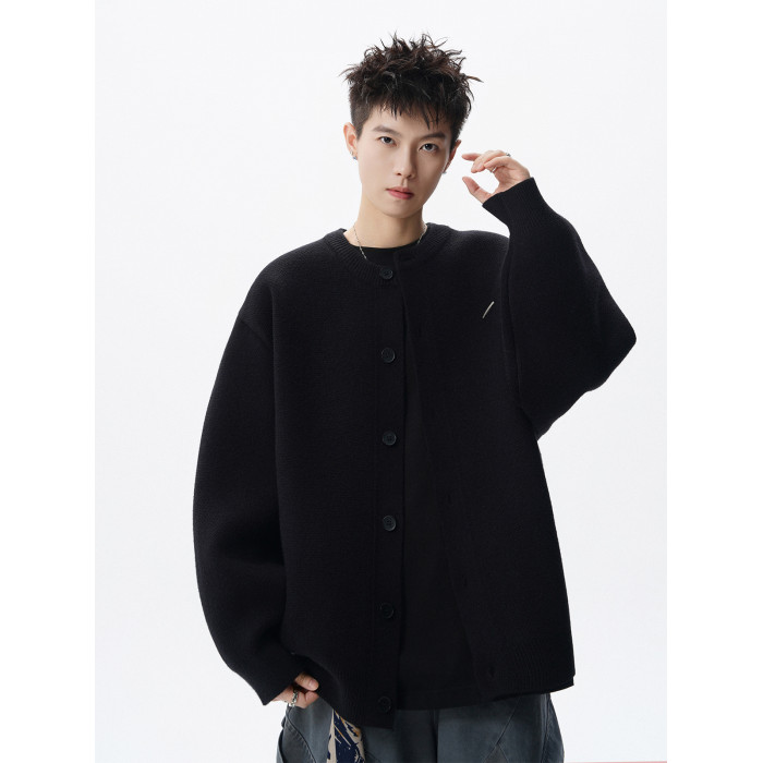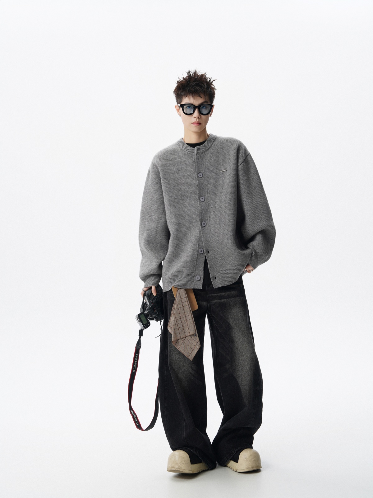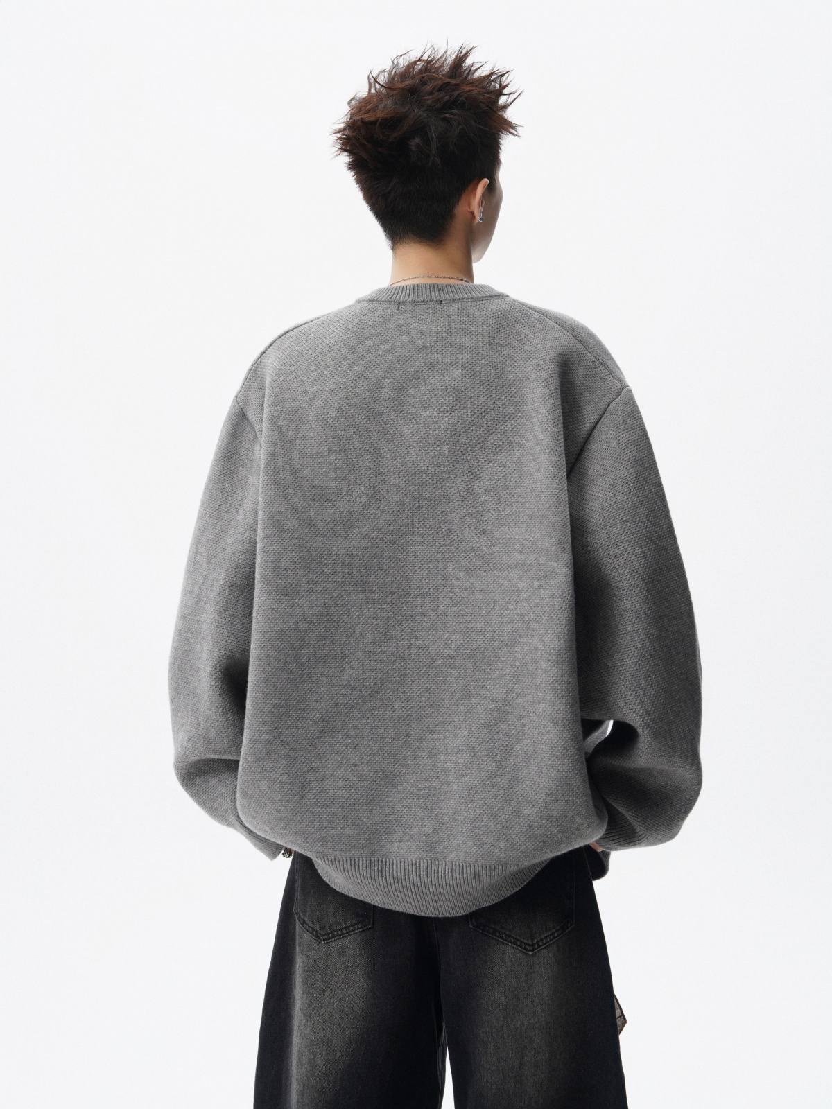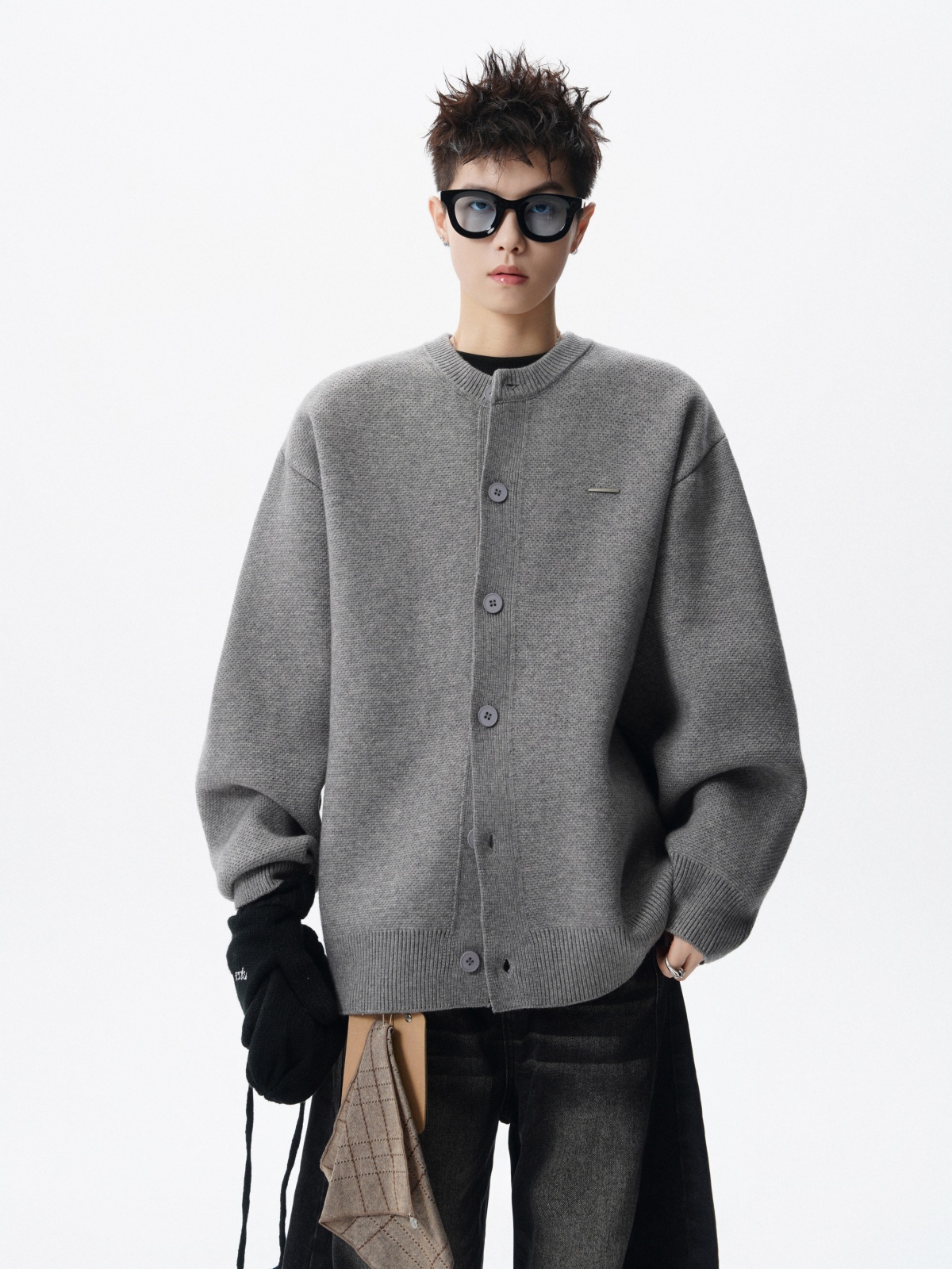 潮牌圓領開衫毛衣男冬季美式重磅保暖針織衫復古寬松休閒情侶外套