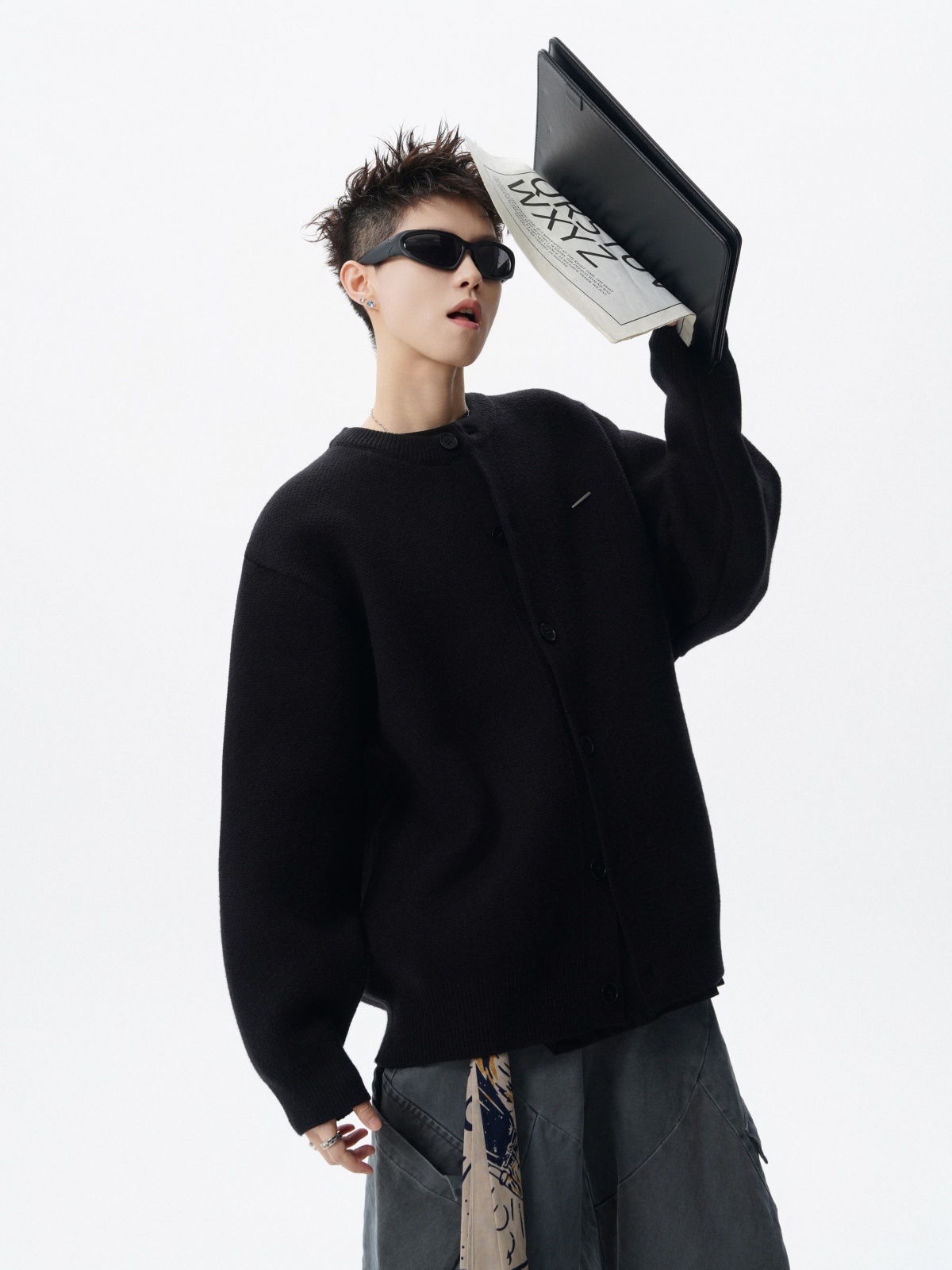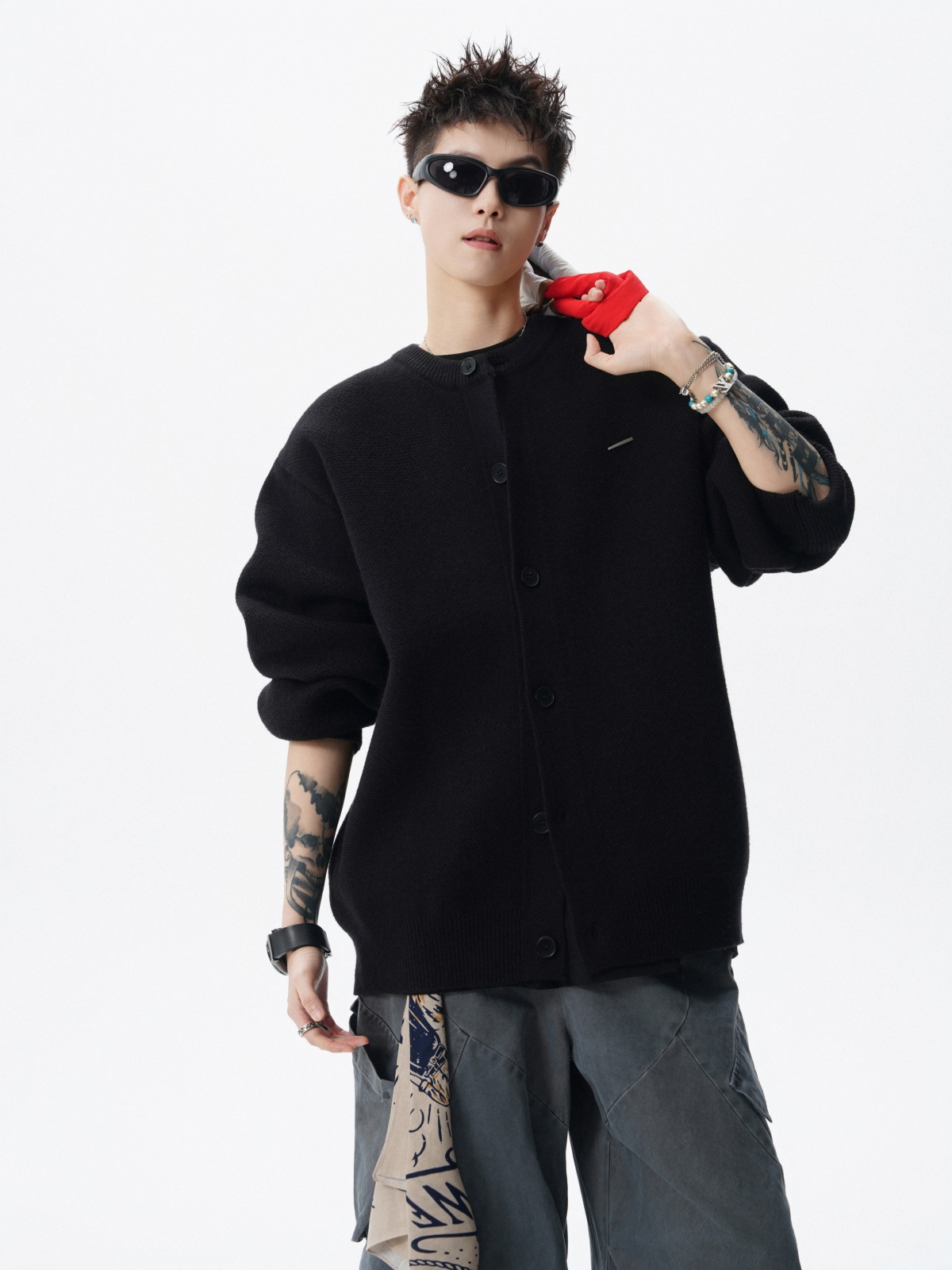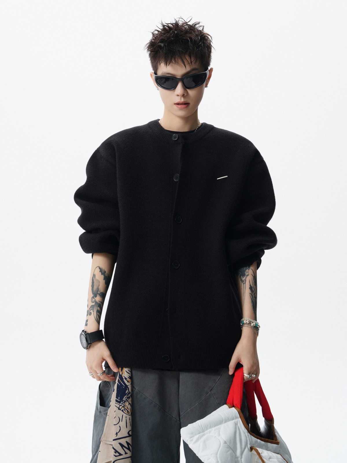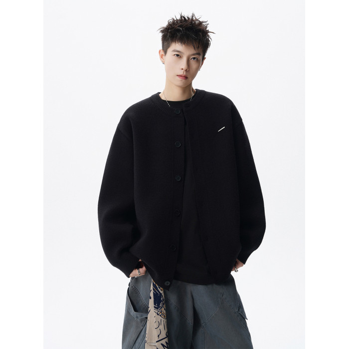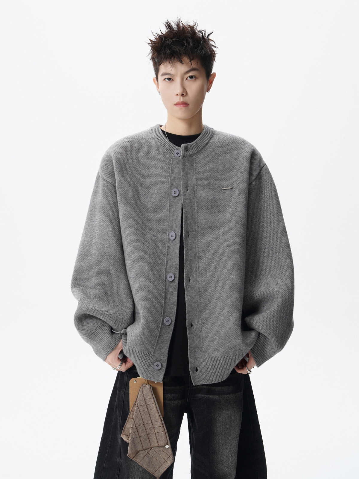 潮牌圓領開衫毛衣男冬季美式重磅保暖針織衫復古寬松休閒情侶外套