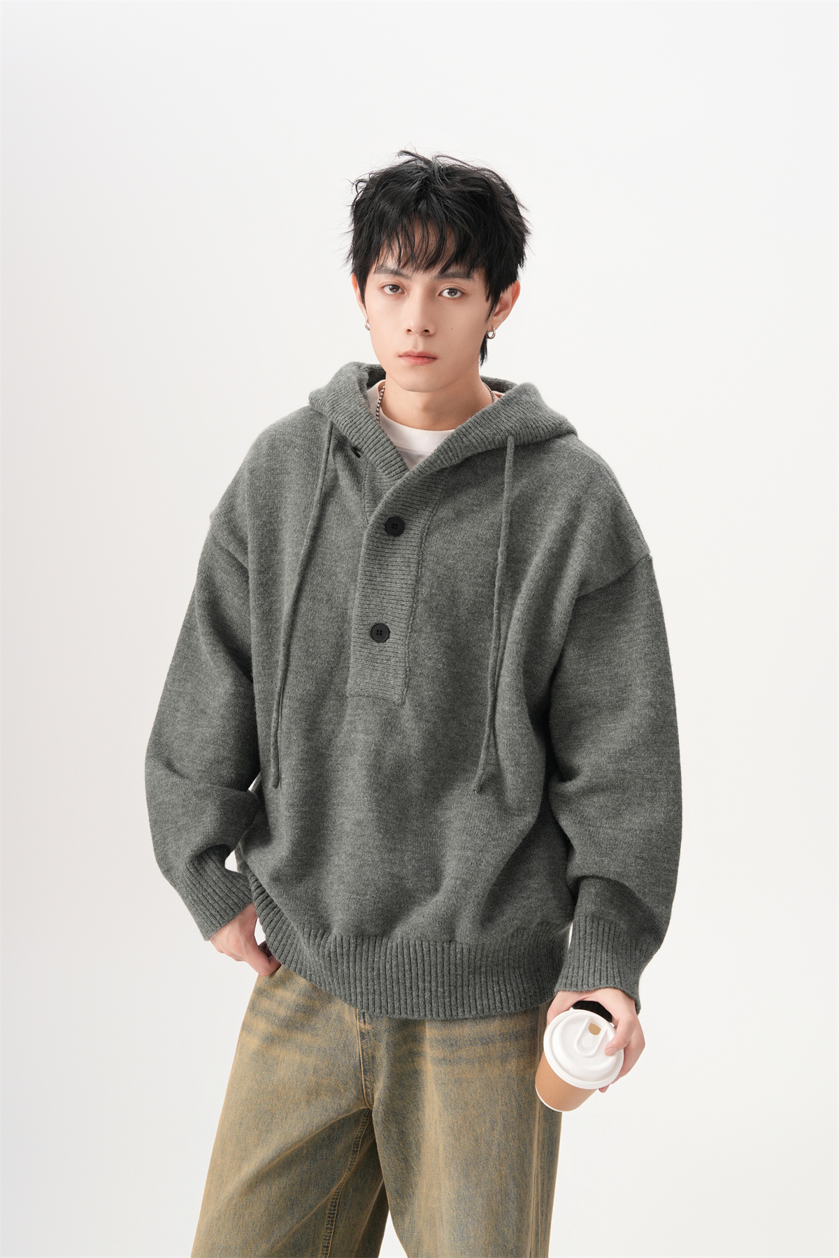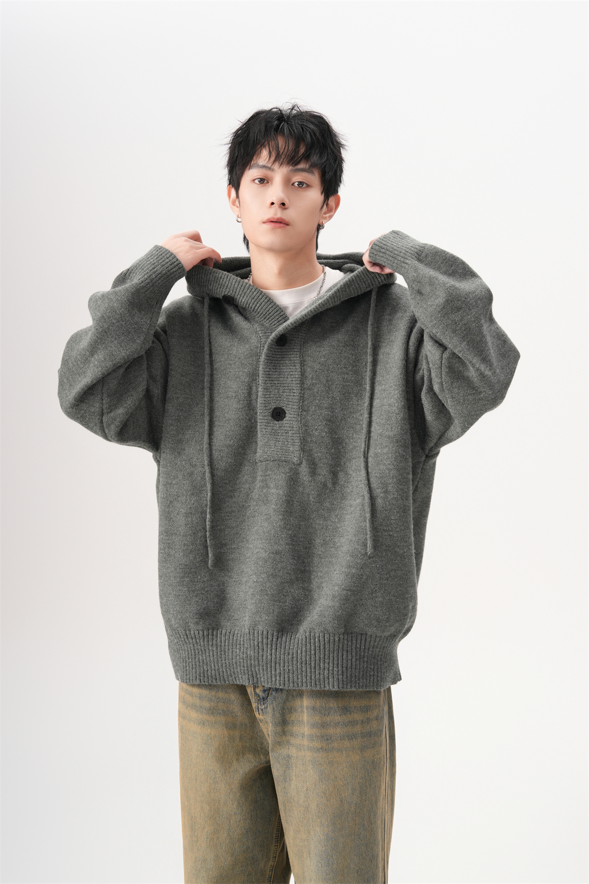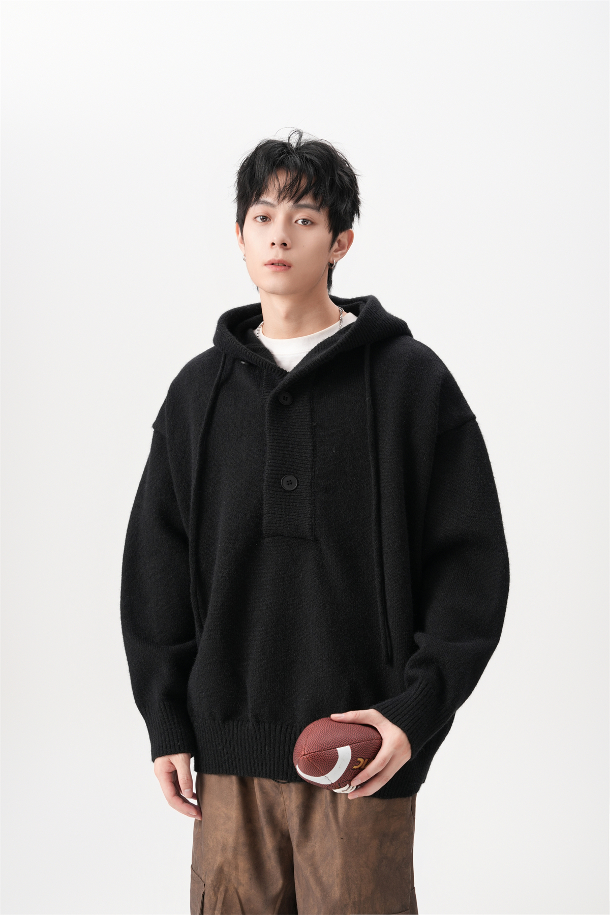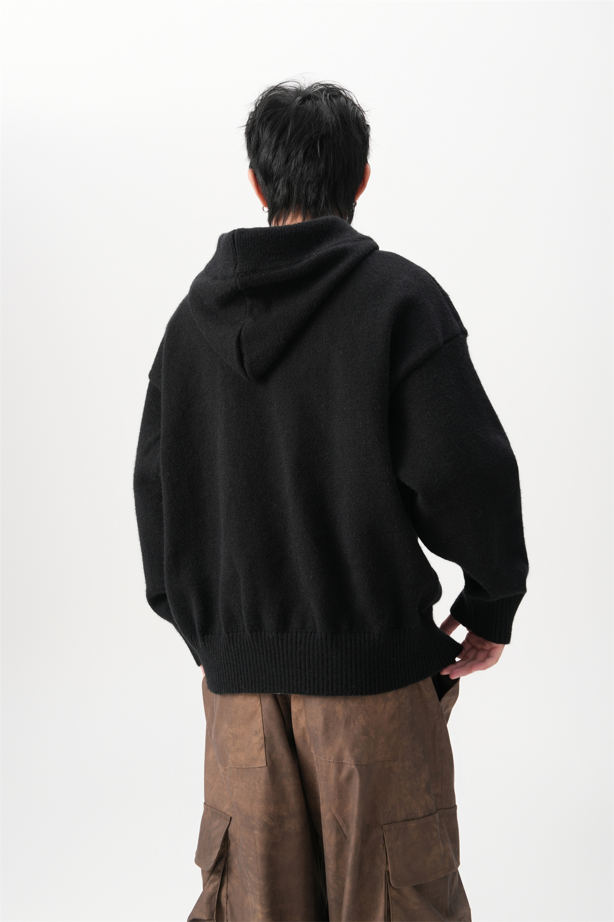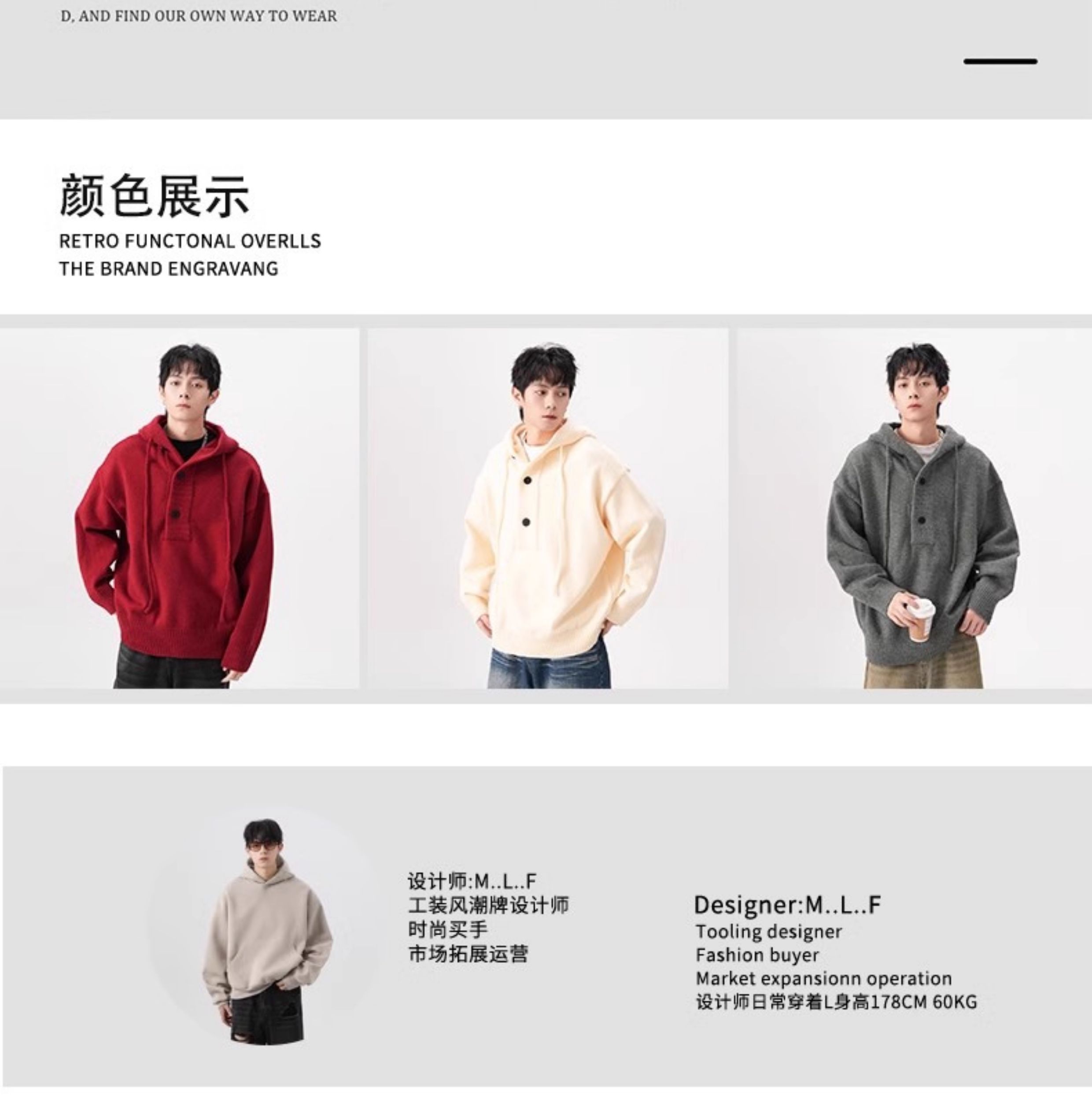美式安可拉紅半開衫連帽毛衣男秋季潮牌慵懶風針織衫寬松情侶外套