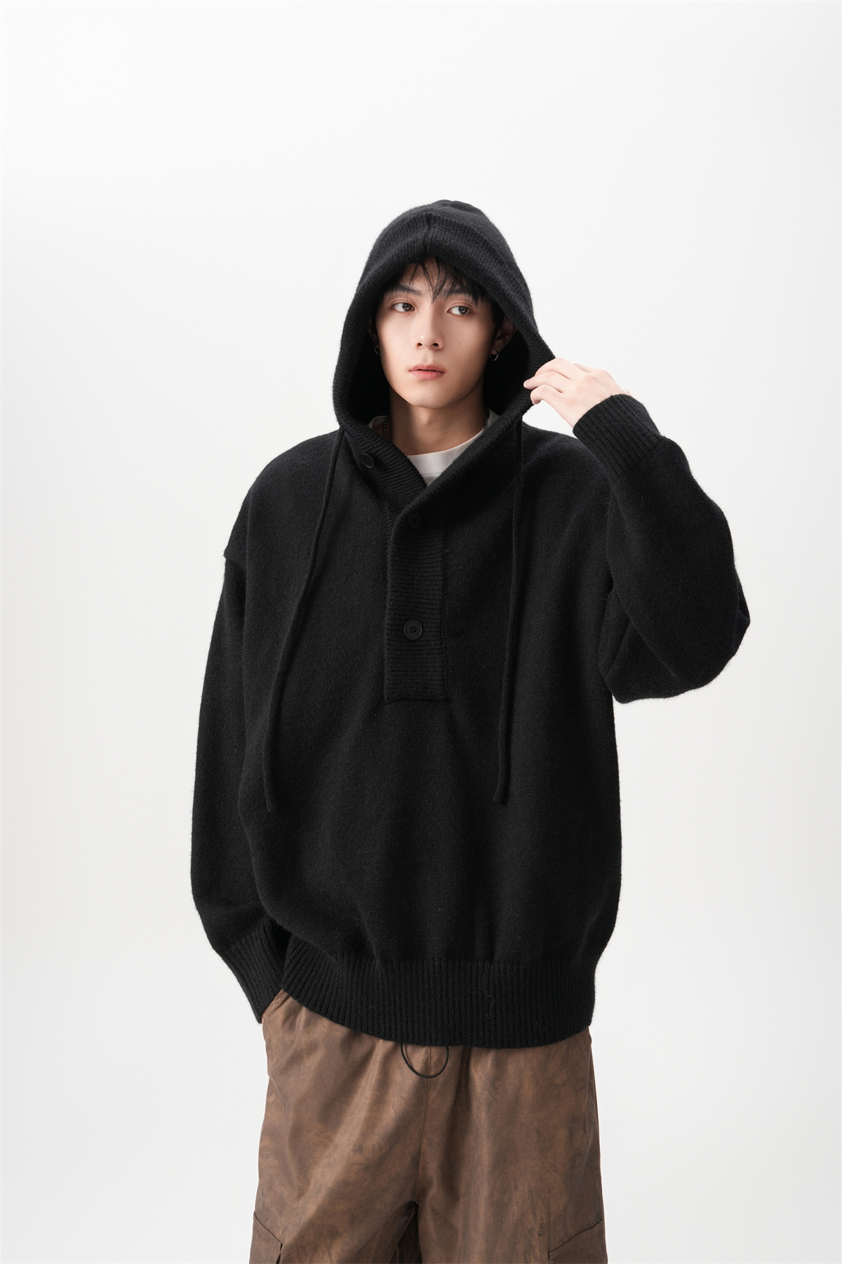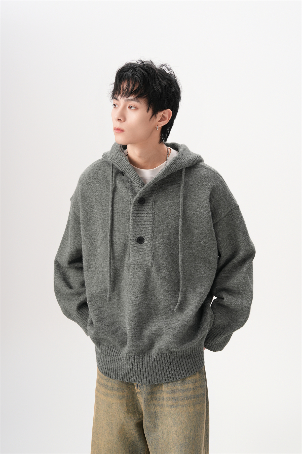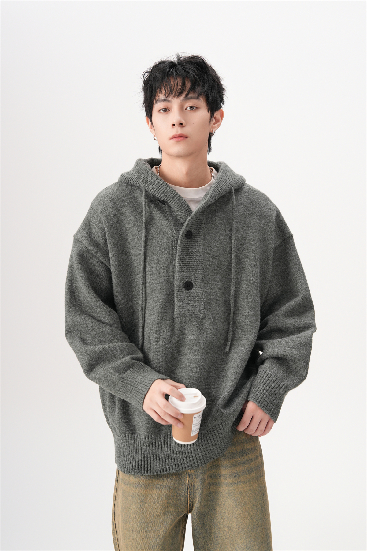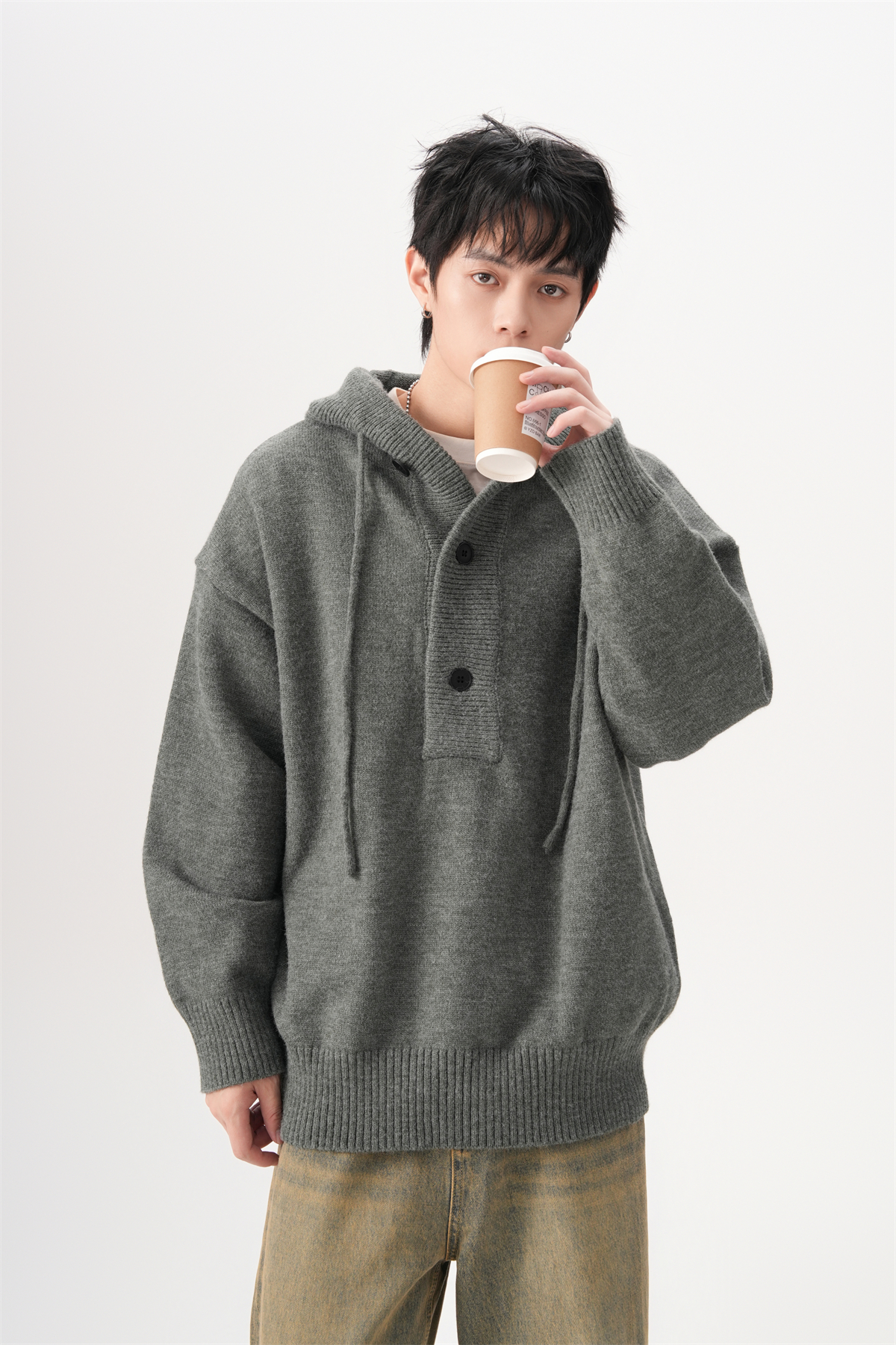 美式安可拉紅半開衫連帽毛衣男秋季潮牌慵懶風針織衫寬松情侶外套