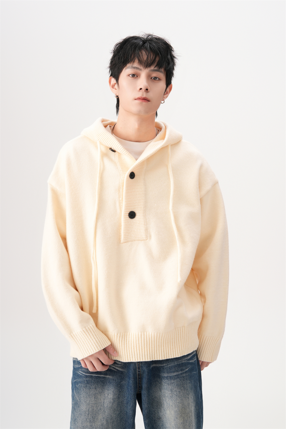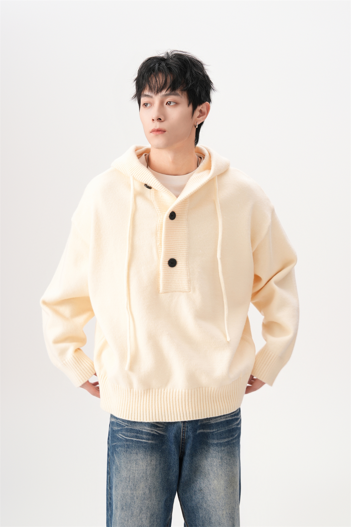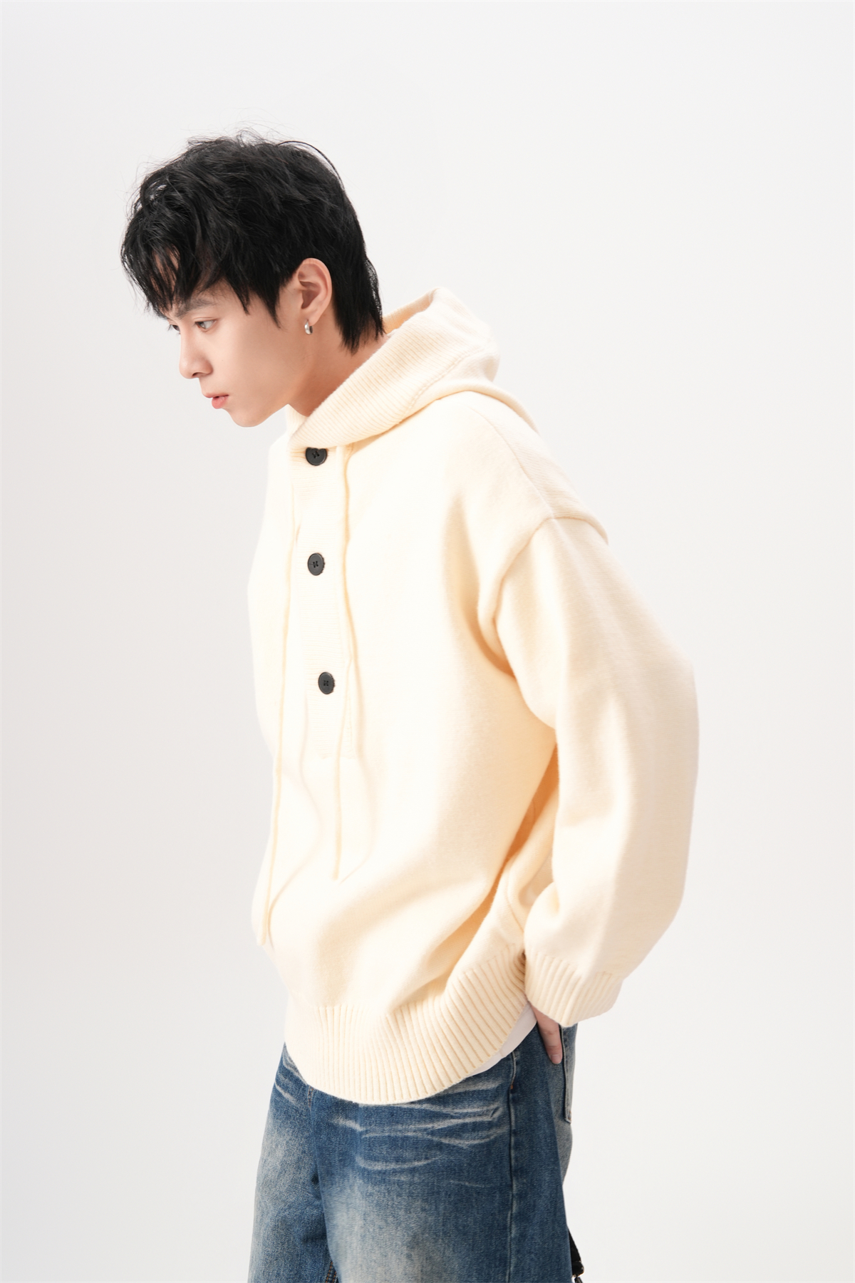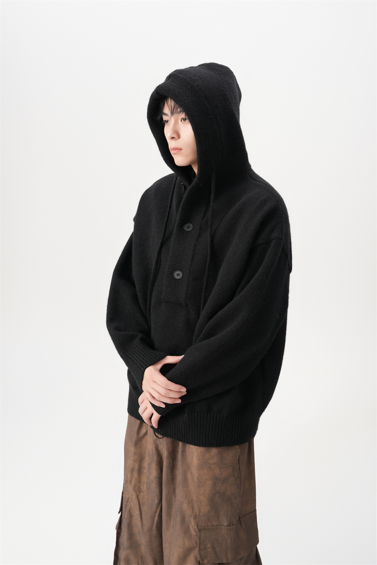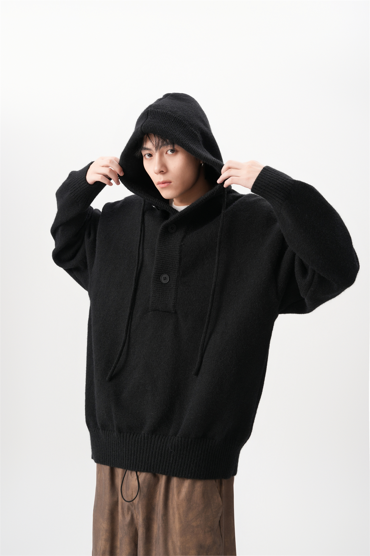 美式安可拉紅半開衫連帽毛衣男秋季潮牌慵懶風針織衫寬松情侶外套