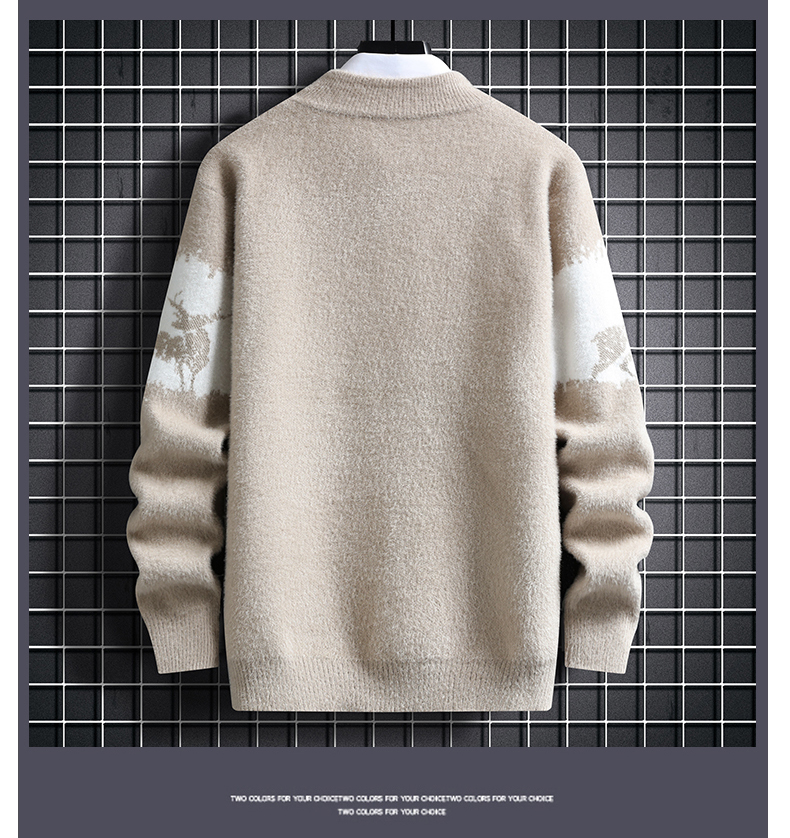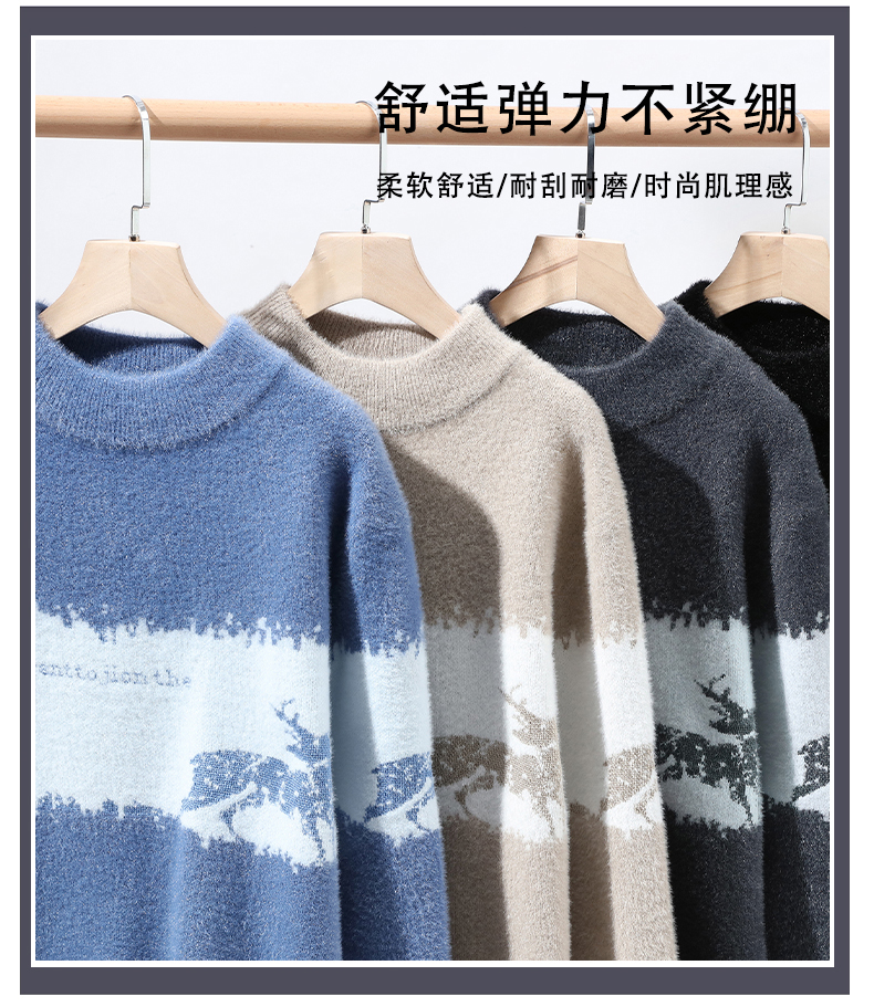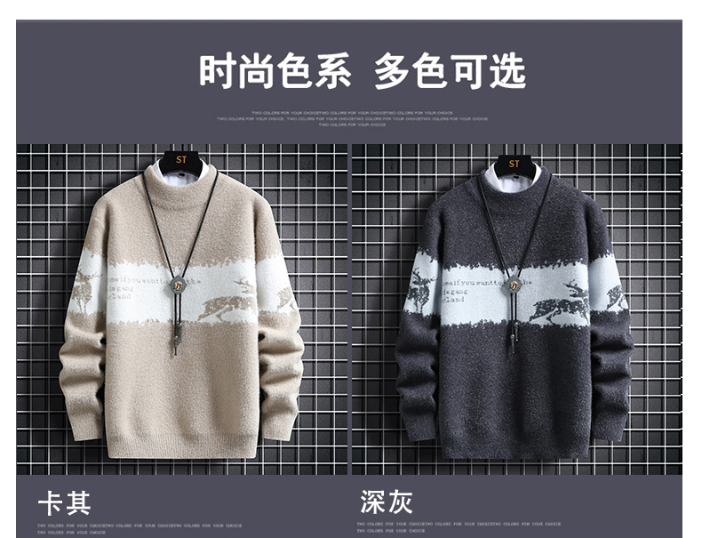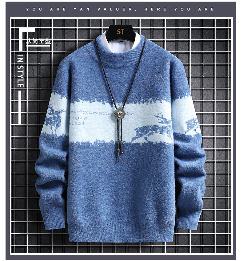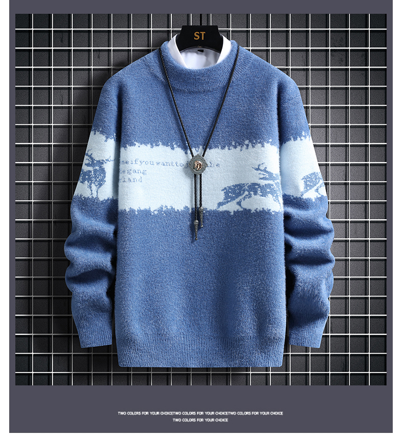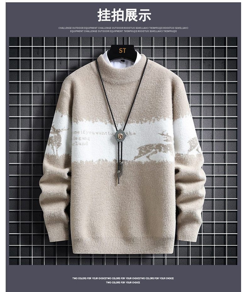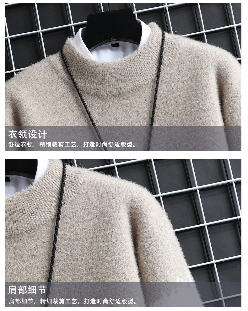啄木鳥男毛衣新款一體絨半高領青年針織衫水貂絨保暖毛線衣服冬