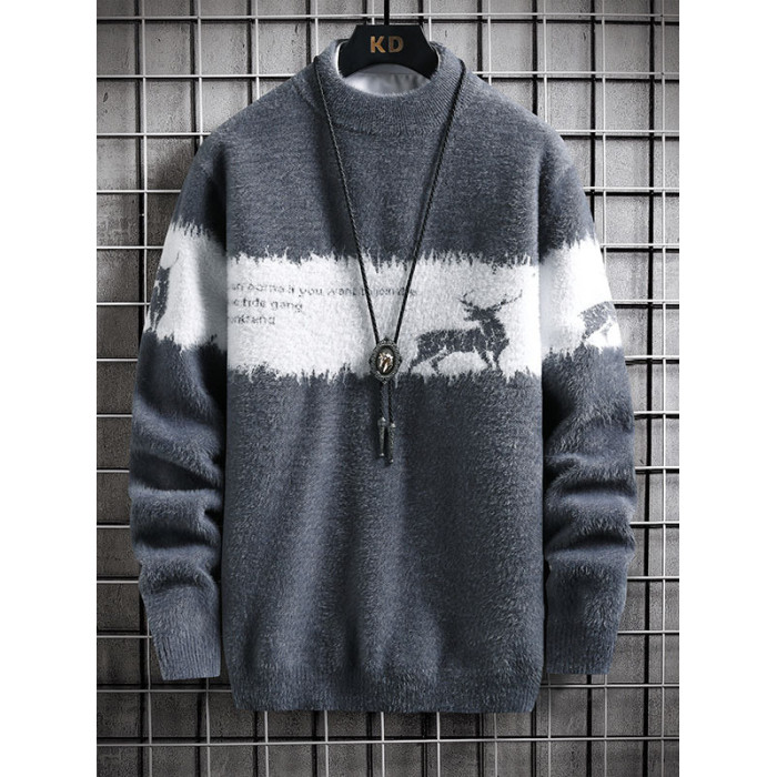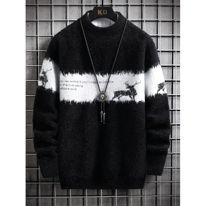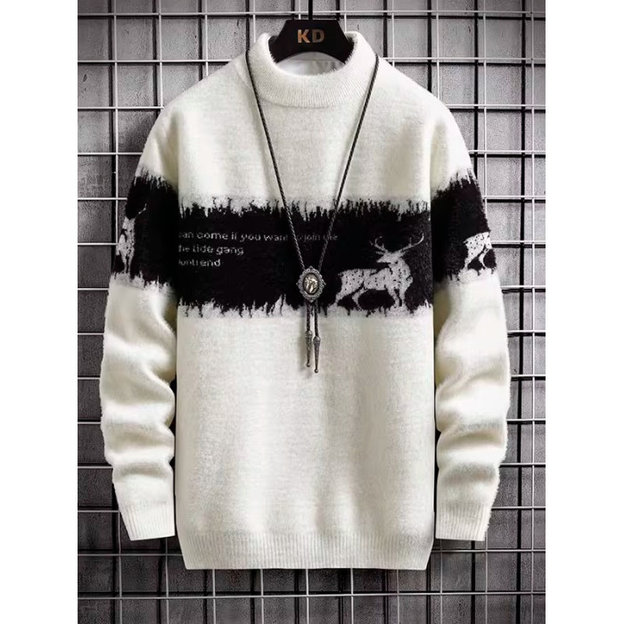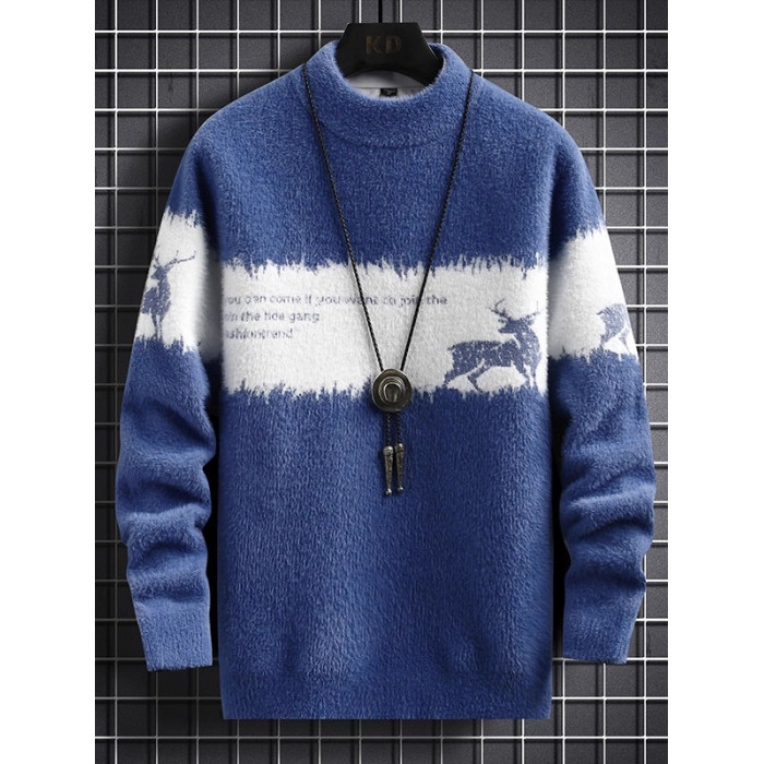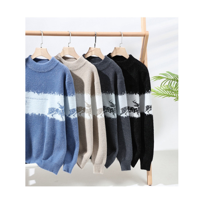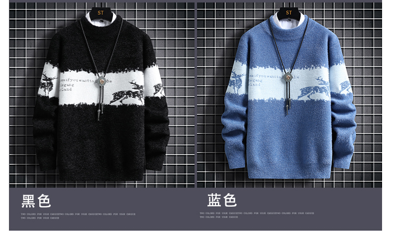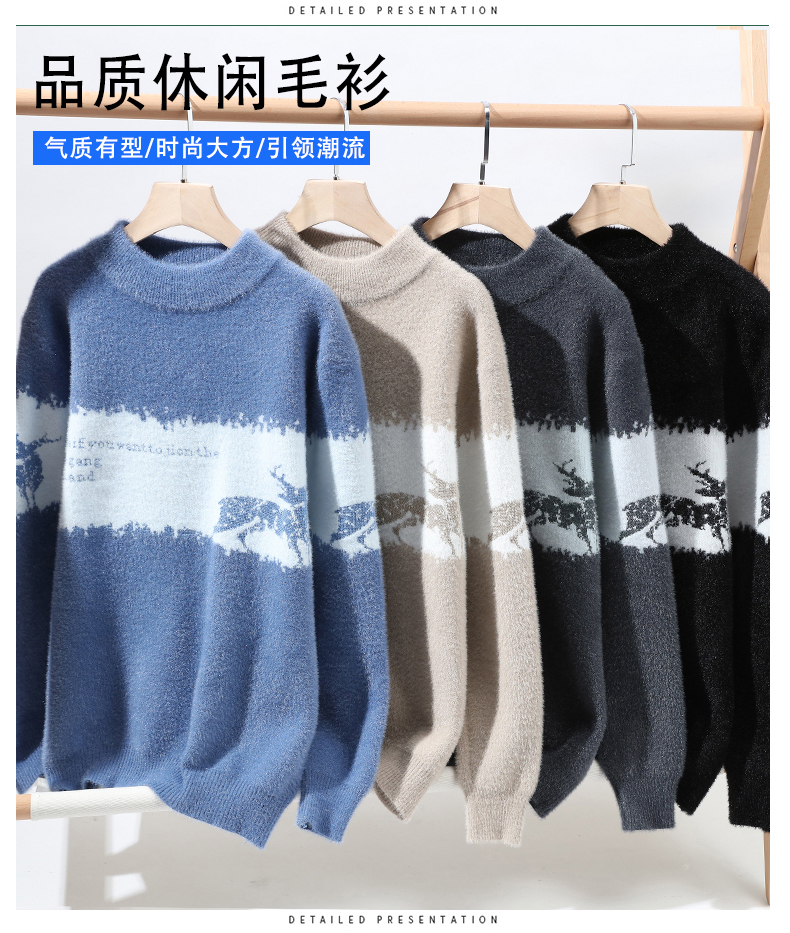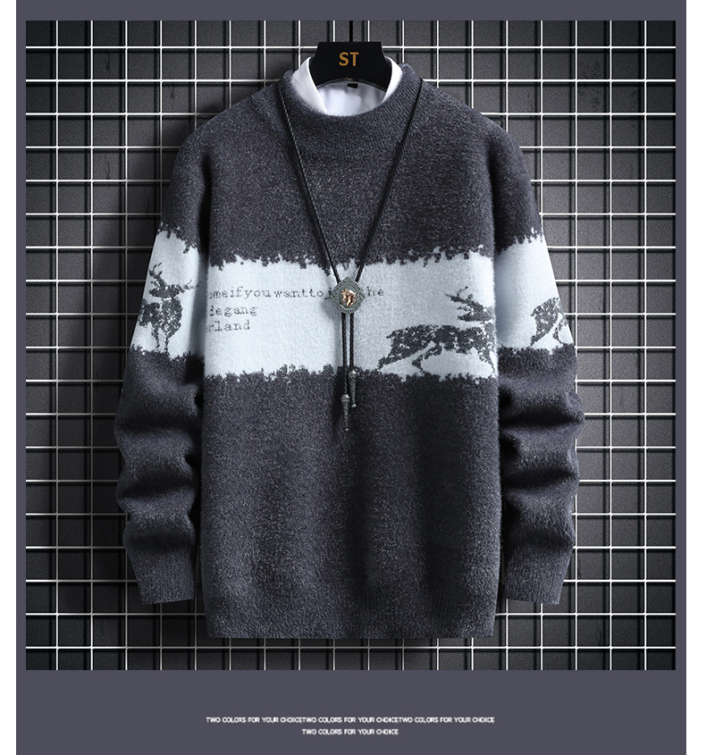 啄木鳥男毛衣新款一體絨半高領青年針織衫水貂絨保暖毛線衣服冬