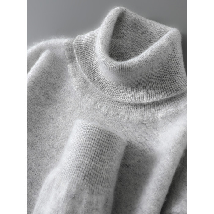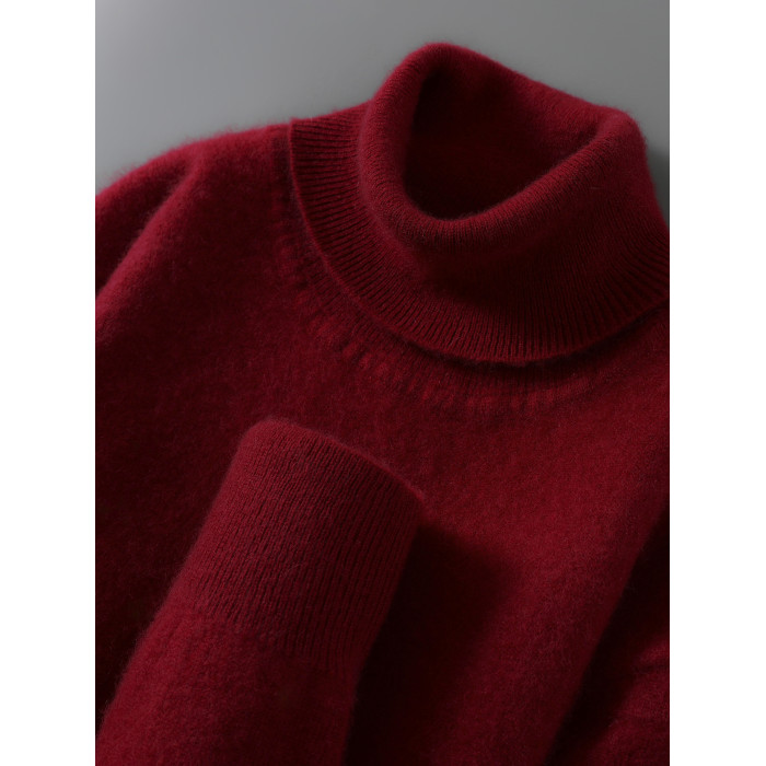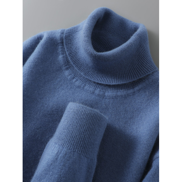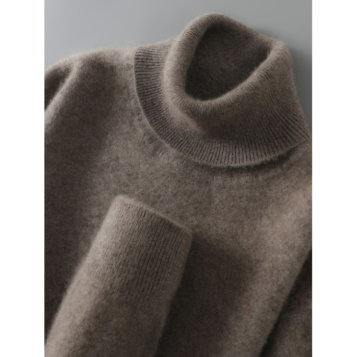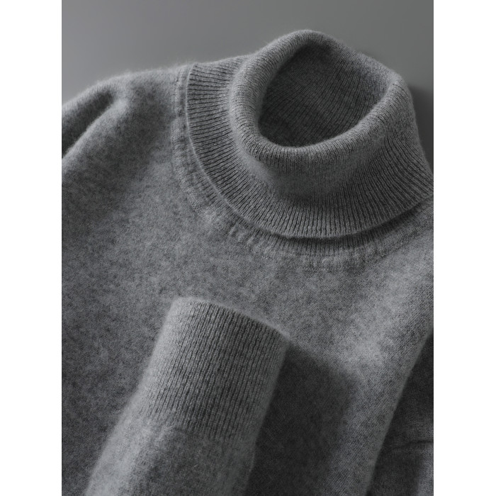100%純羊毛衫男士可翻高領毛衣大碼套頭羊絨衫寬松針織時尚打底衫