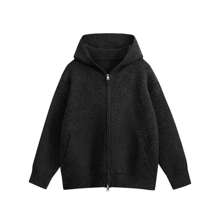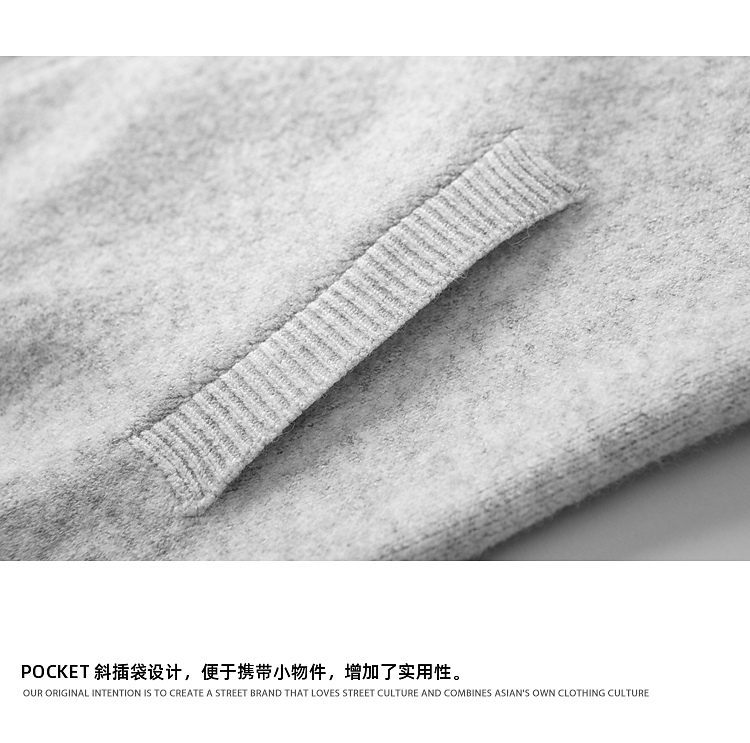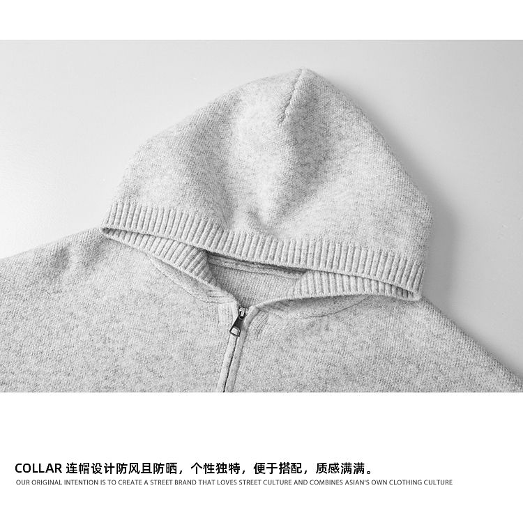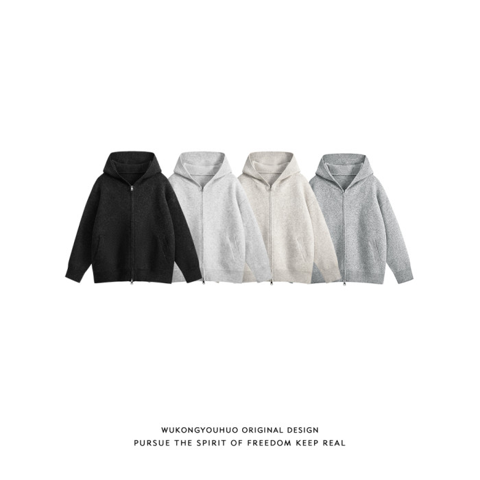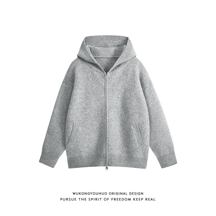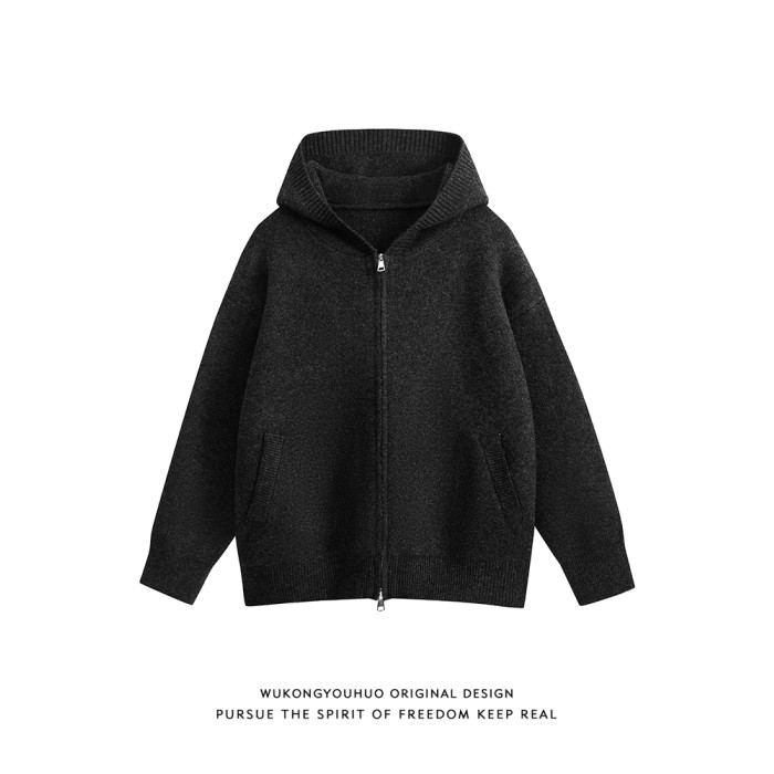悟空有貨美式復古純色拉鍊開衫連帽毛衣男女老錢風情侶休閒針織衫