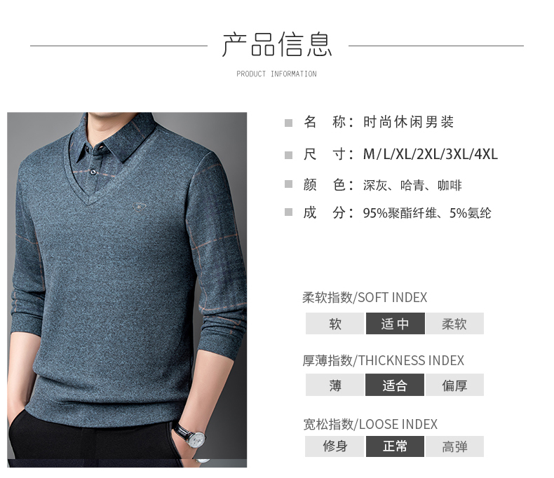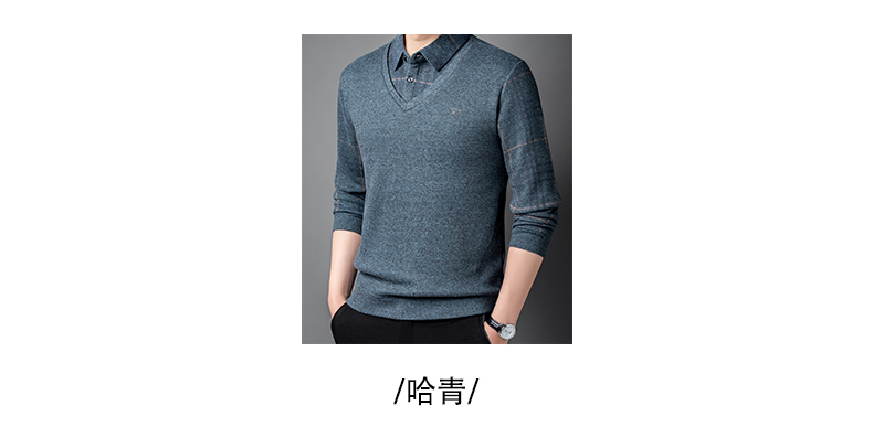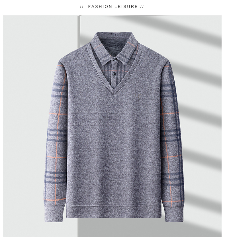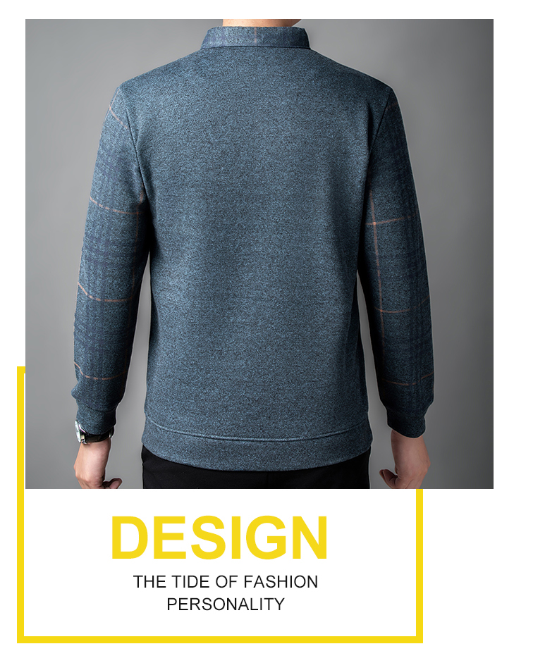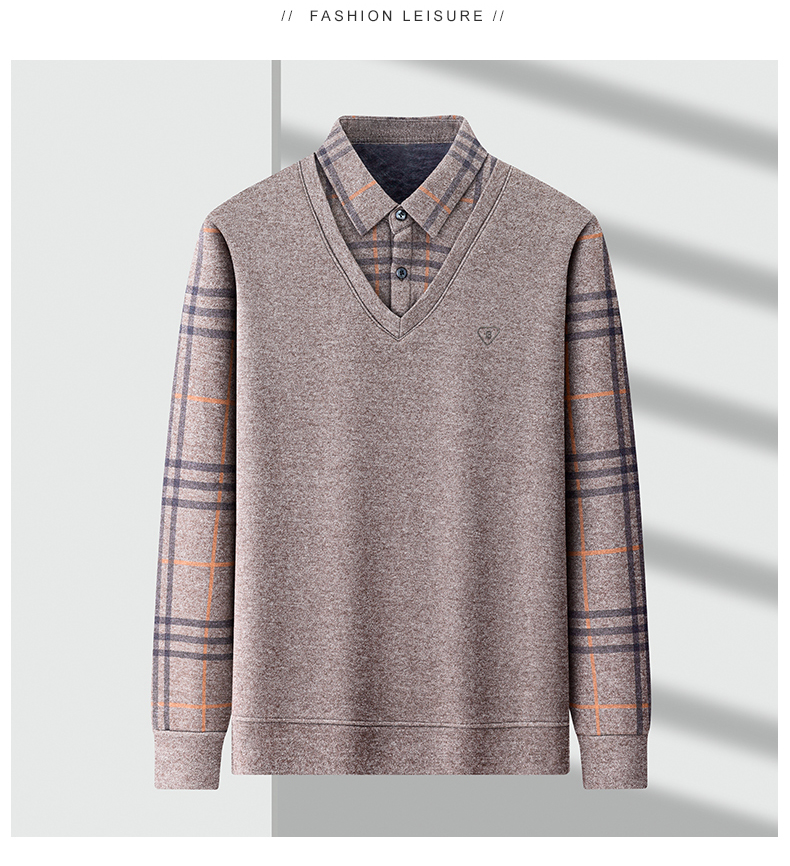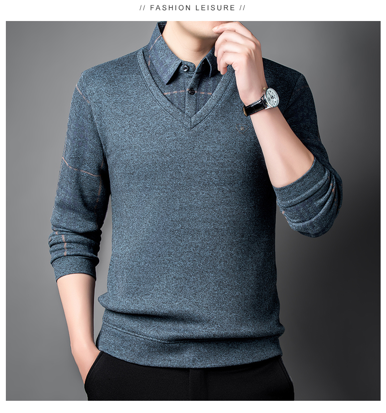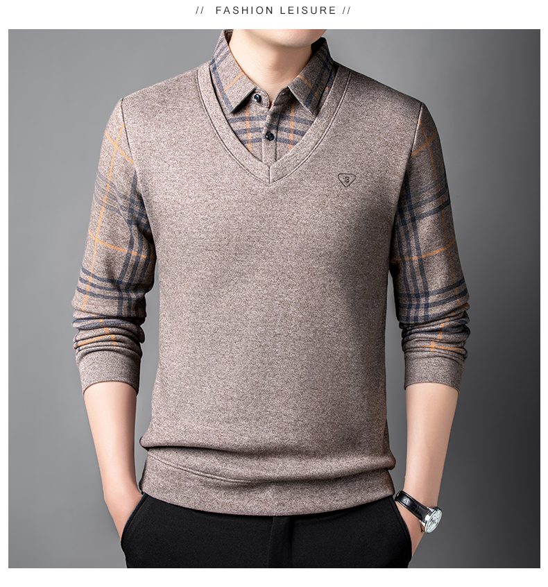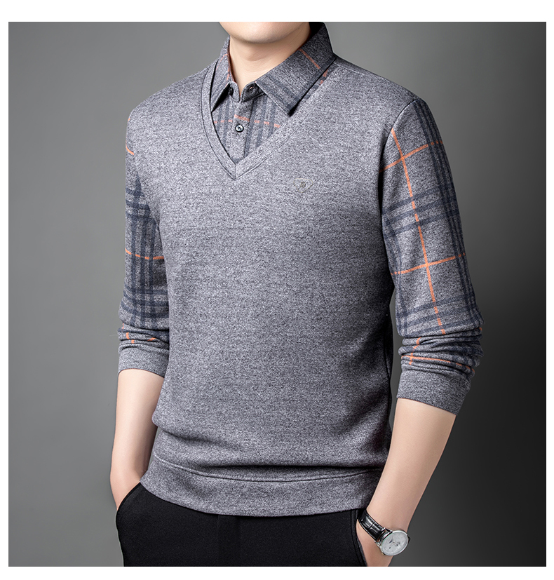 啄木鳥冬季假兩件加絨加厚毛衣男POLO衫t恤保暖打底中老年爸爸裝