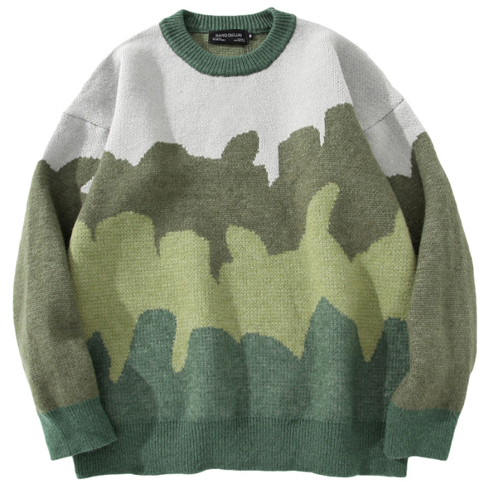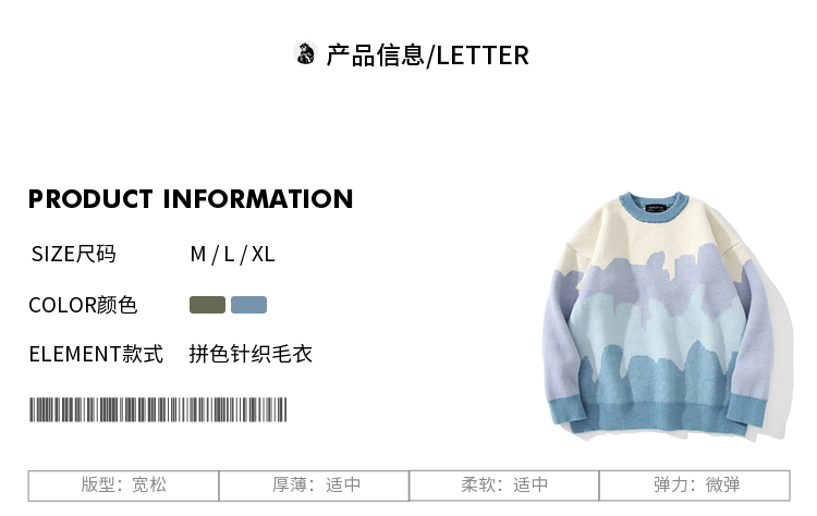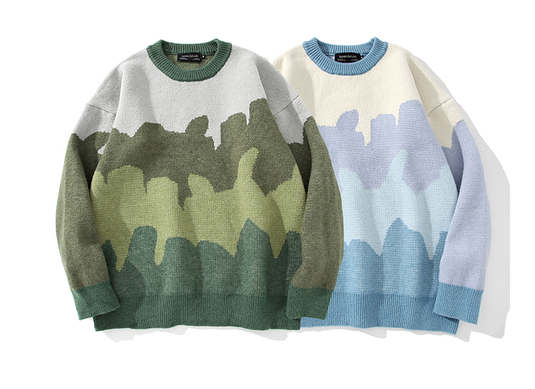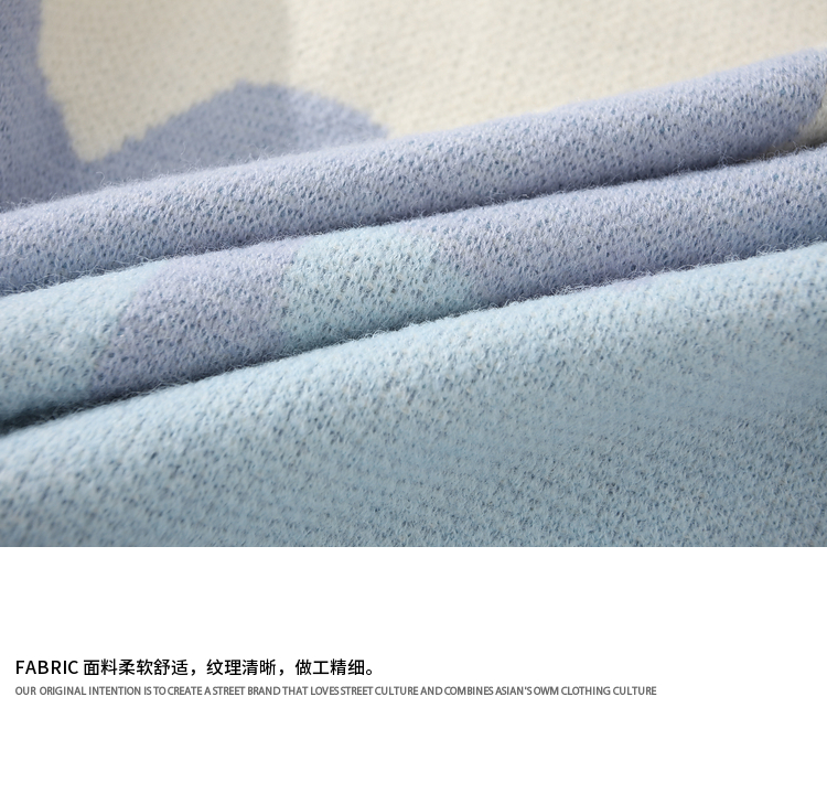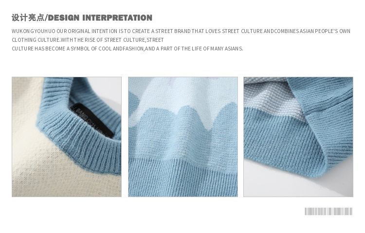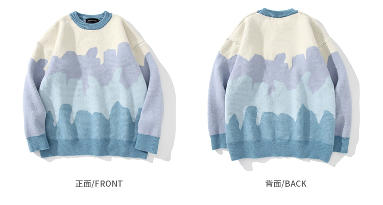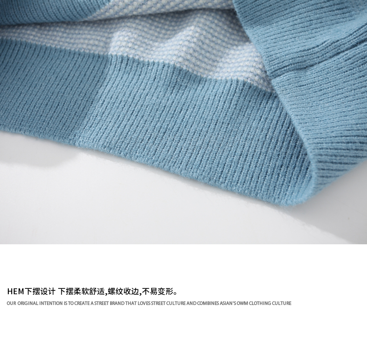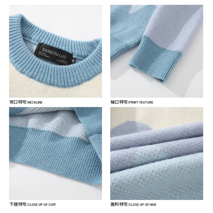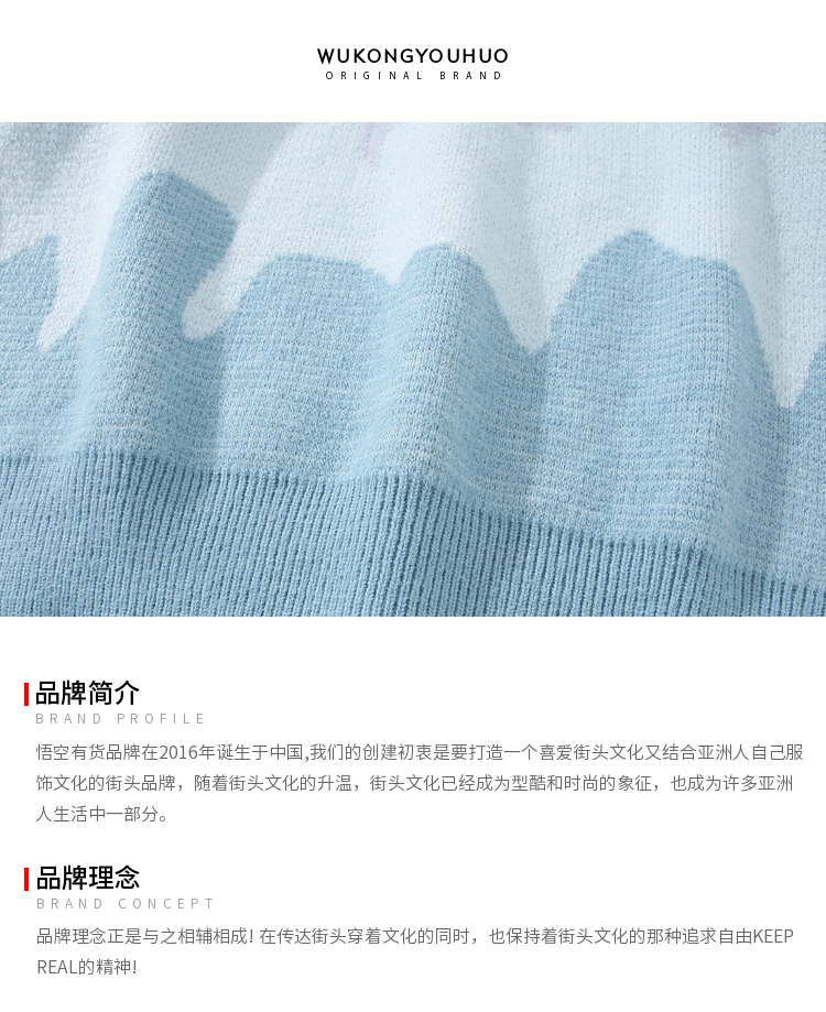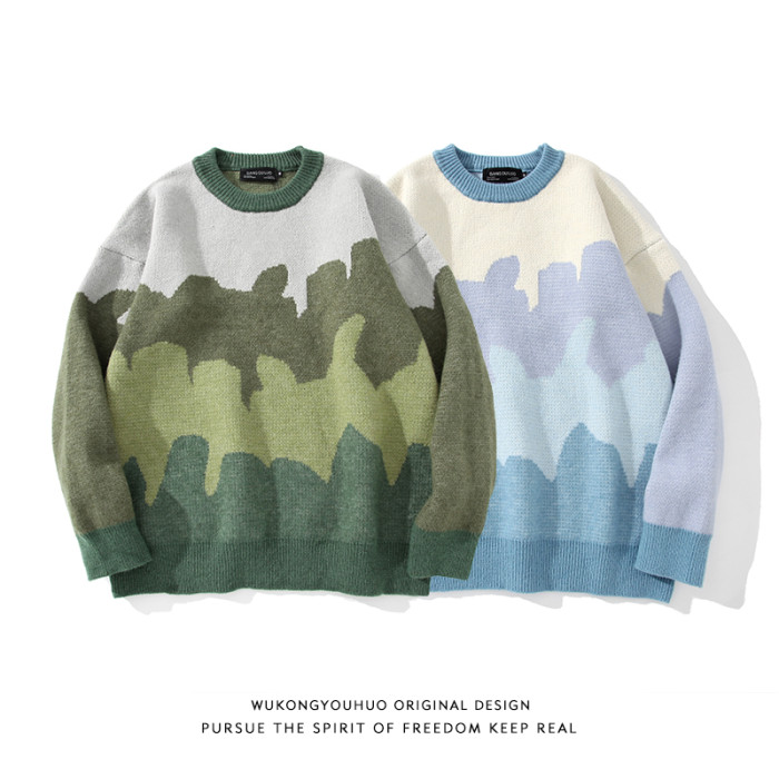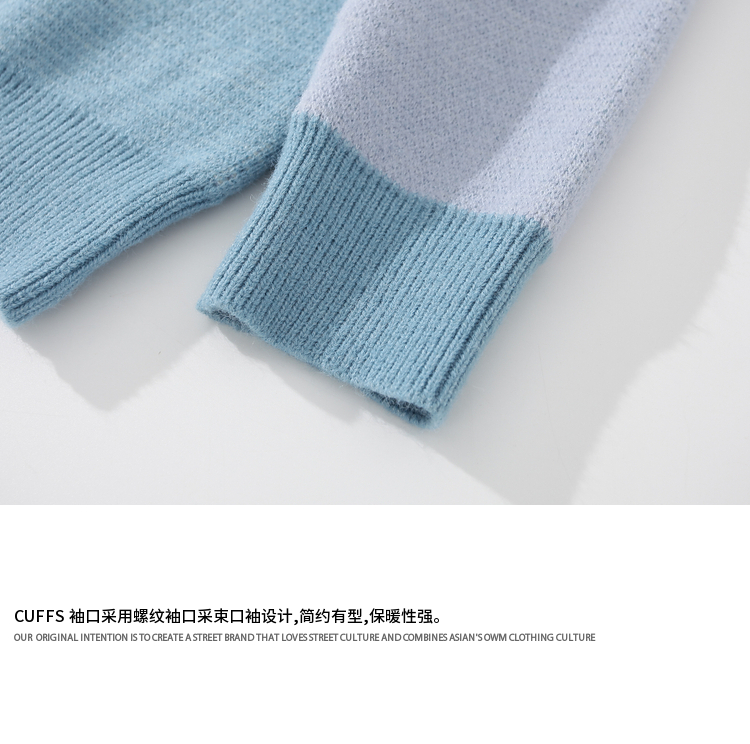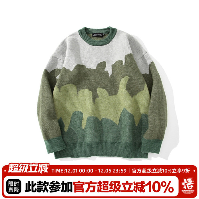 悟空有貨ins原宿風拼色圓領毛衣男潮牌街頭寬松情侶套頭針織衫