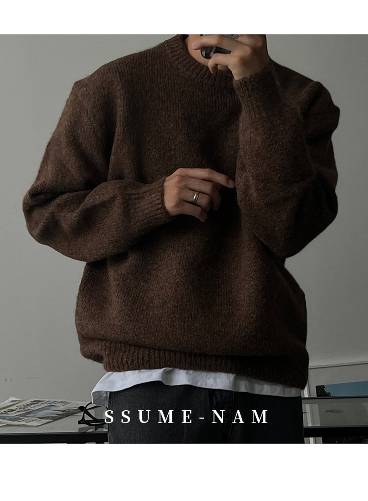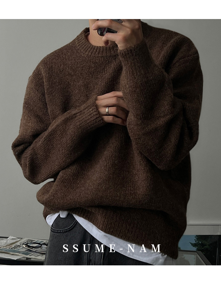 SSUMENAM「韓系 極簡 慵懶」秋冬季毛衣男保暖休閒百搭針織衫外套