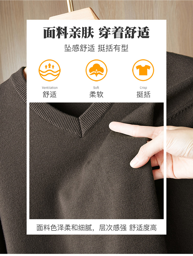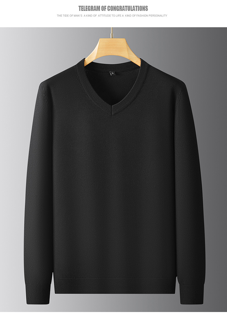 純色V領針織衫男秋冬季大碼毛衣胖子加肥加大打底衫寬松休閒內搭