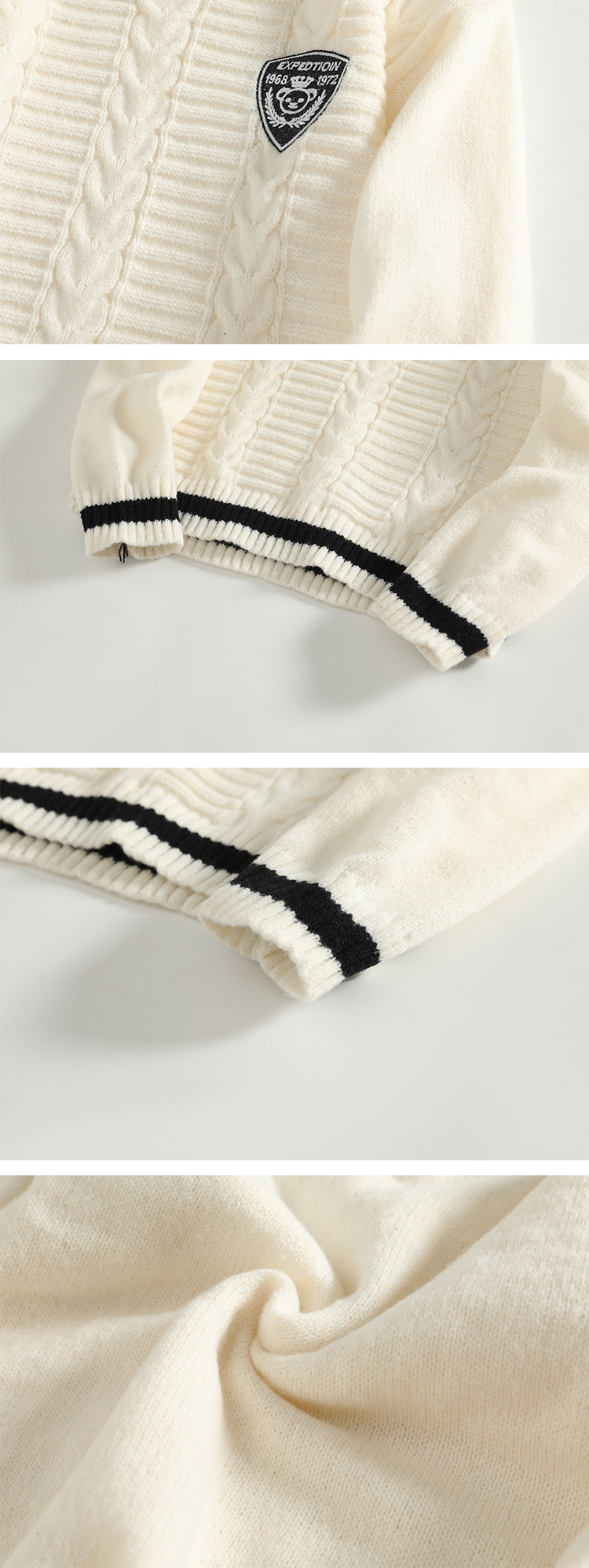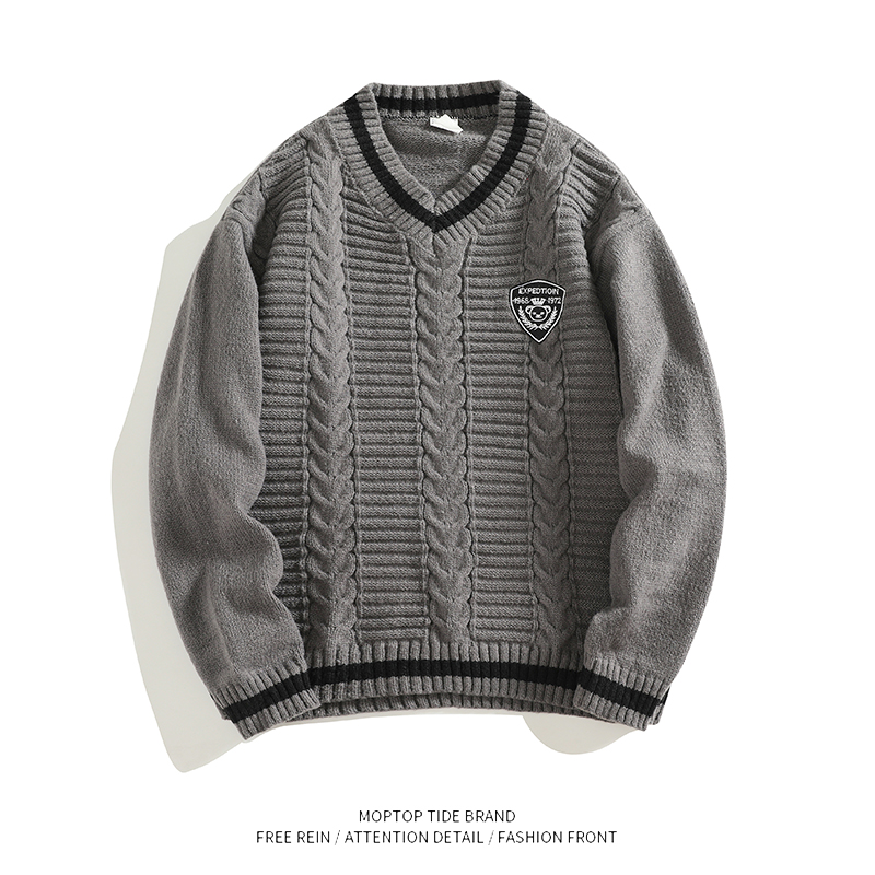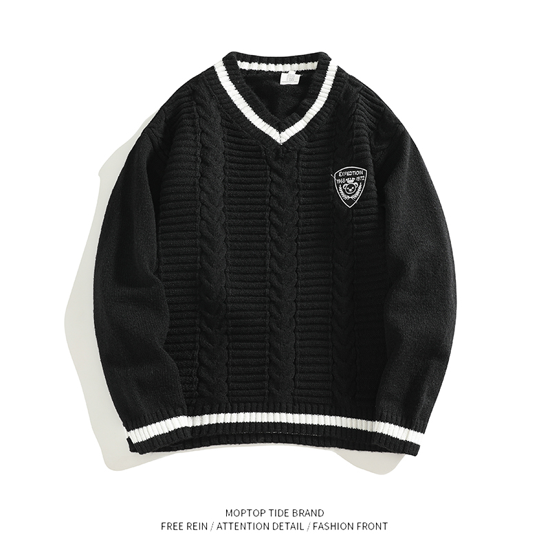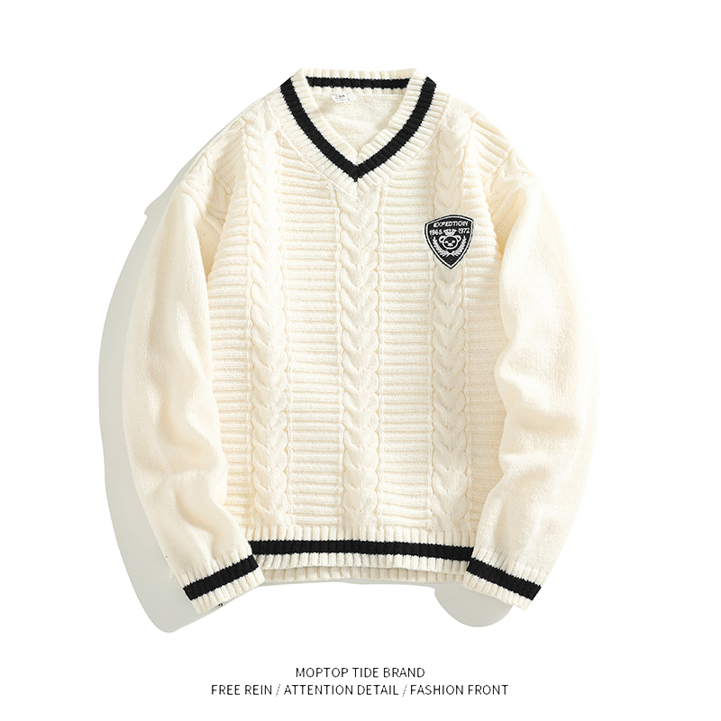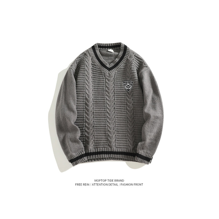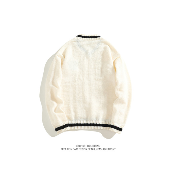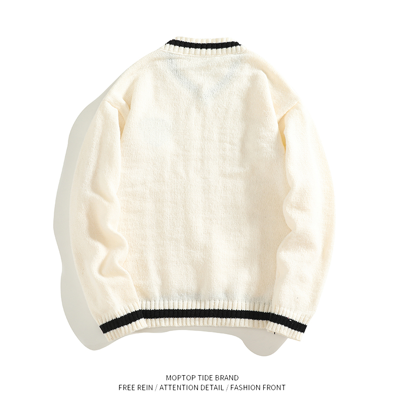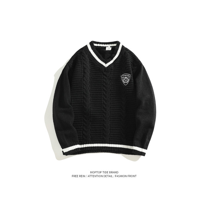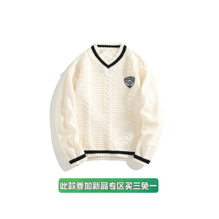 WHXS日系學院風V領針織衫男女秋冬復古寬松慵懶百搭情侶休閒毛衣