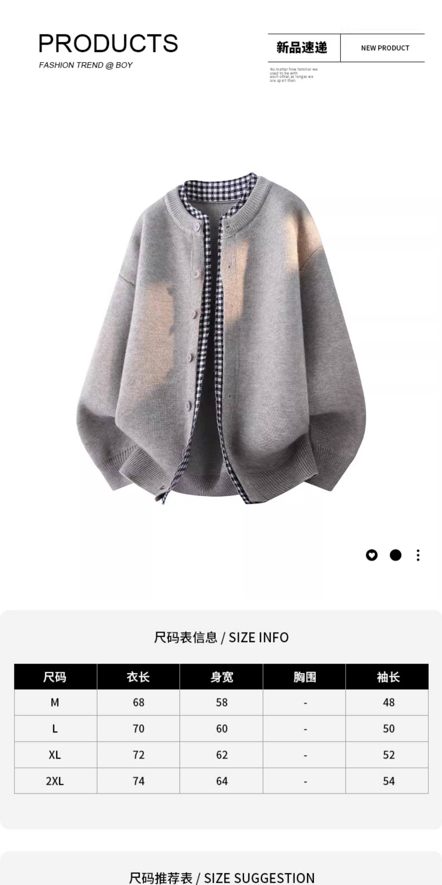 VUUG假兩件復古開衫毛衣男春秋冬季新款潮牌寬鬆慵嬾風針織衫外套